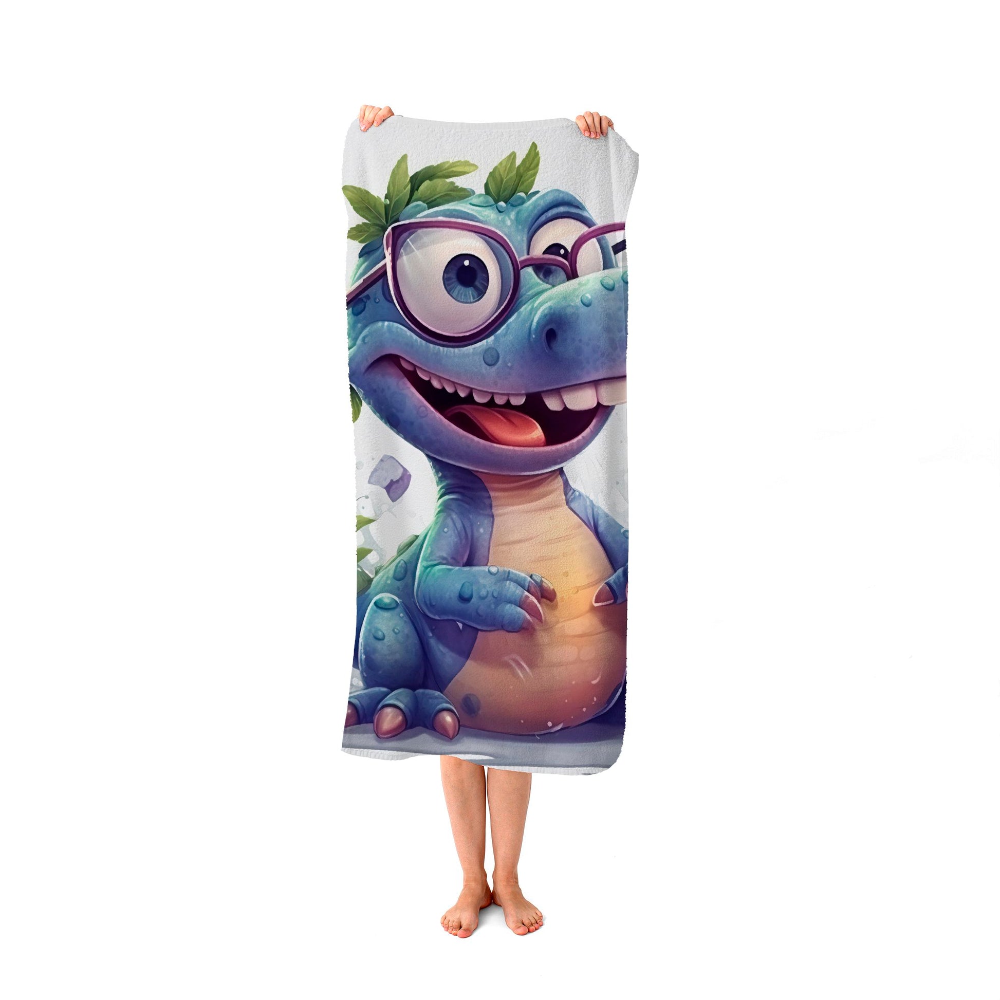 Happy Dinosaur With Glasses Beach Towel