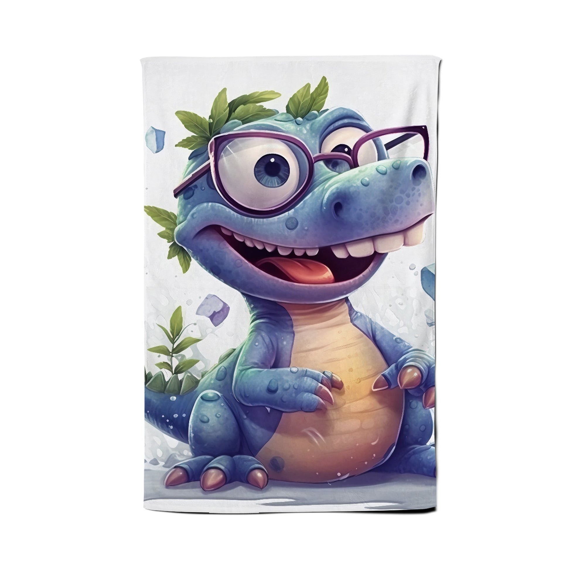 Happy Dinosaur With Glasses Tea Towel