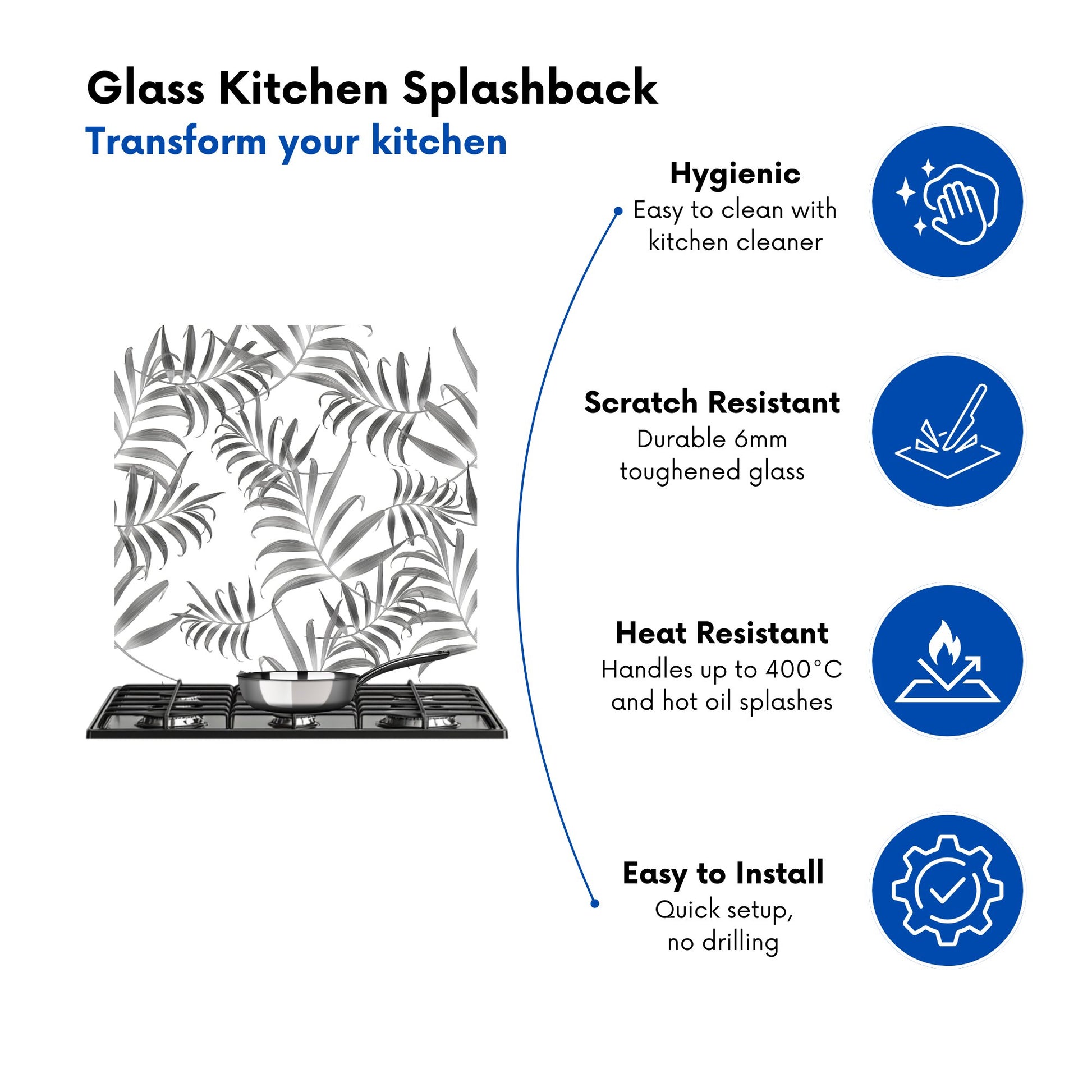 Durable and easy to clean, it's perfect for the kitchen. Whether renovating or updating your home’s look, our Premium 6mm Glass Kitchen Splashback is a stylish choice that makes a lasting impression. Upgrade your kitchen décor today for the perfect mix of beauty and practicality.