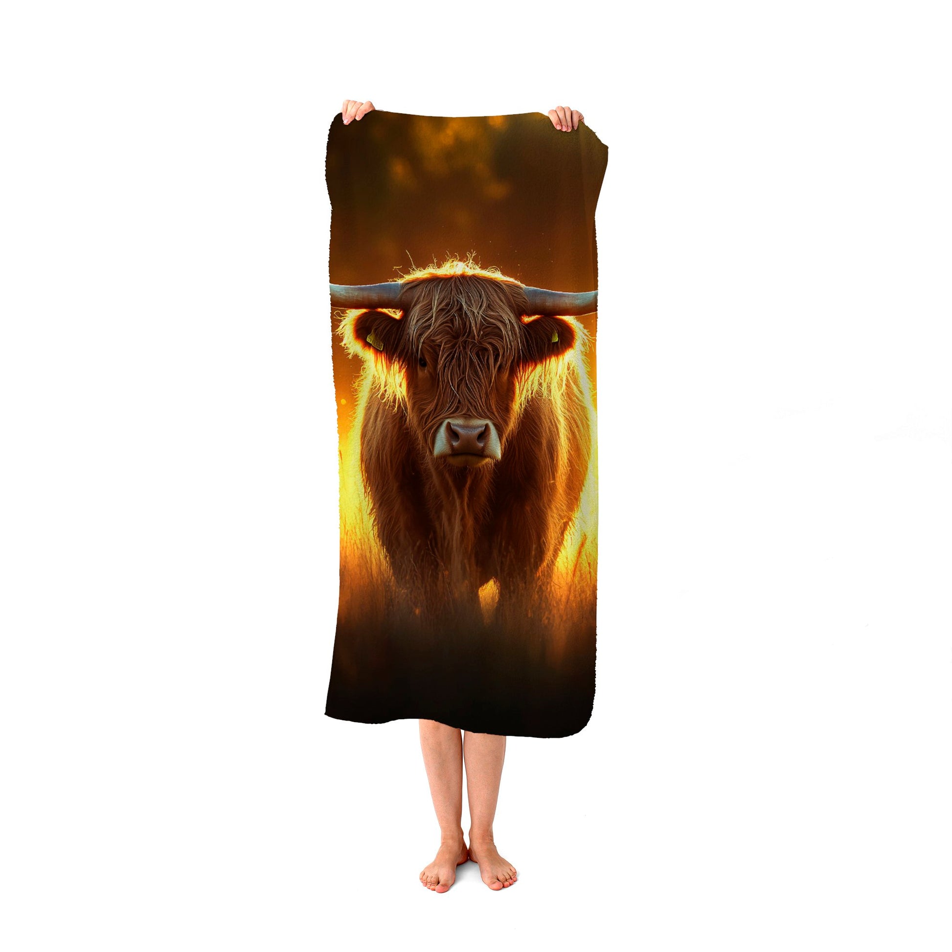 Highland Cow Sunset Beach Towel