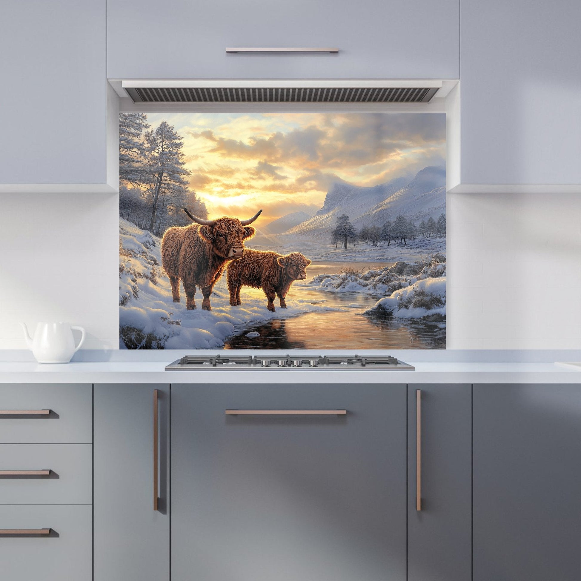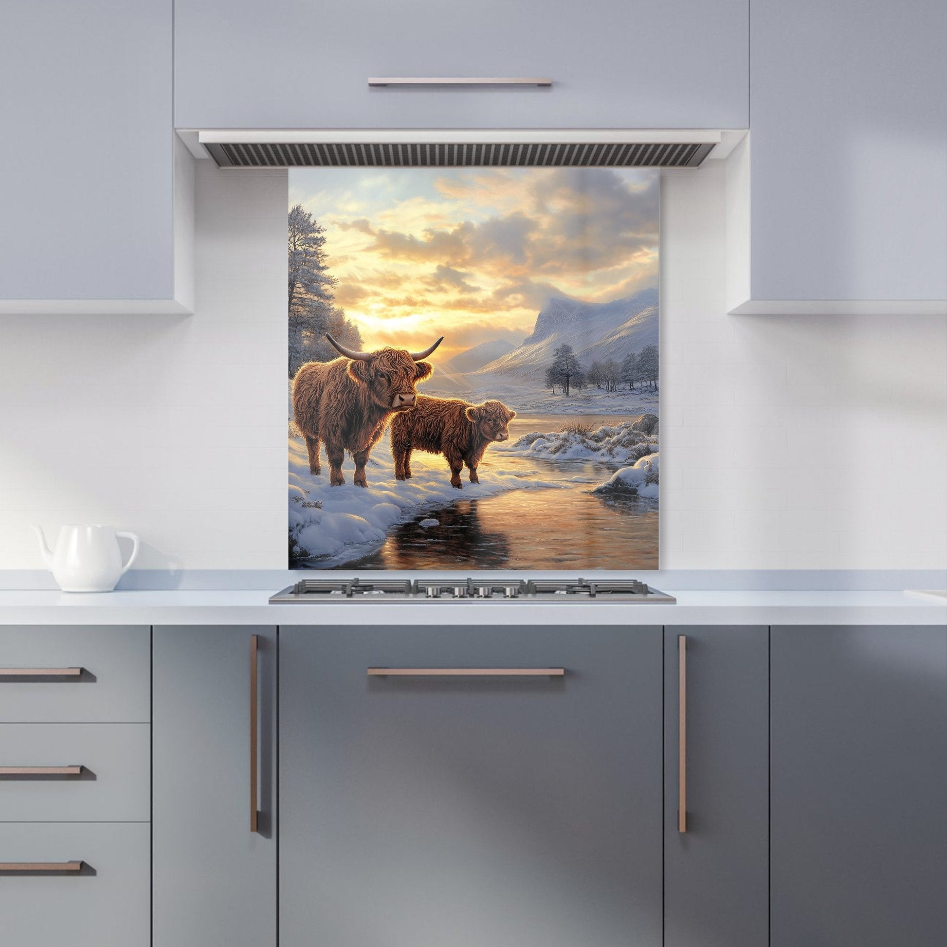 Highland Cows By The Lake Kitchen Splashback