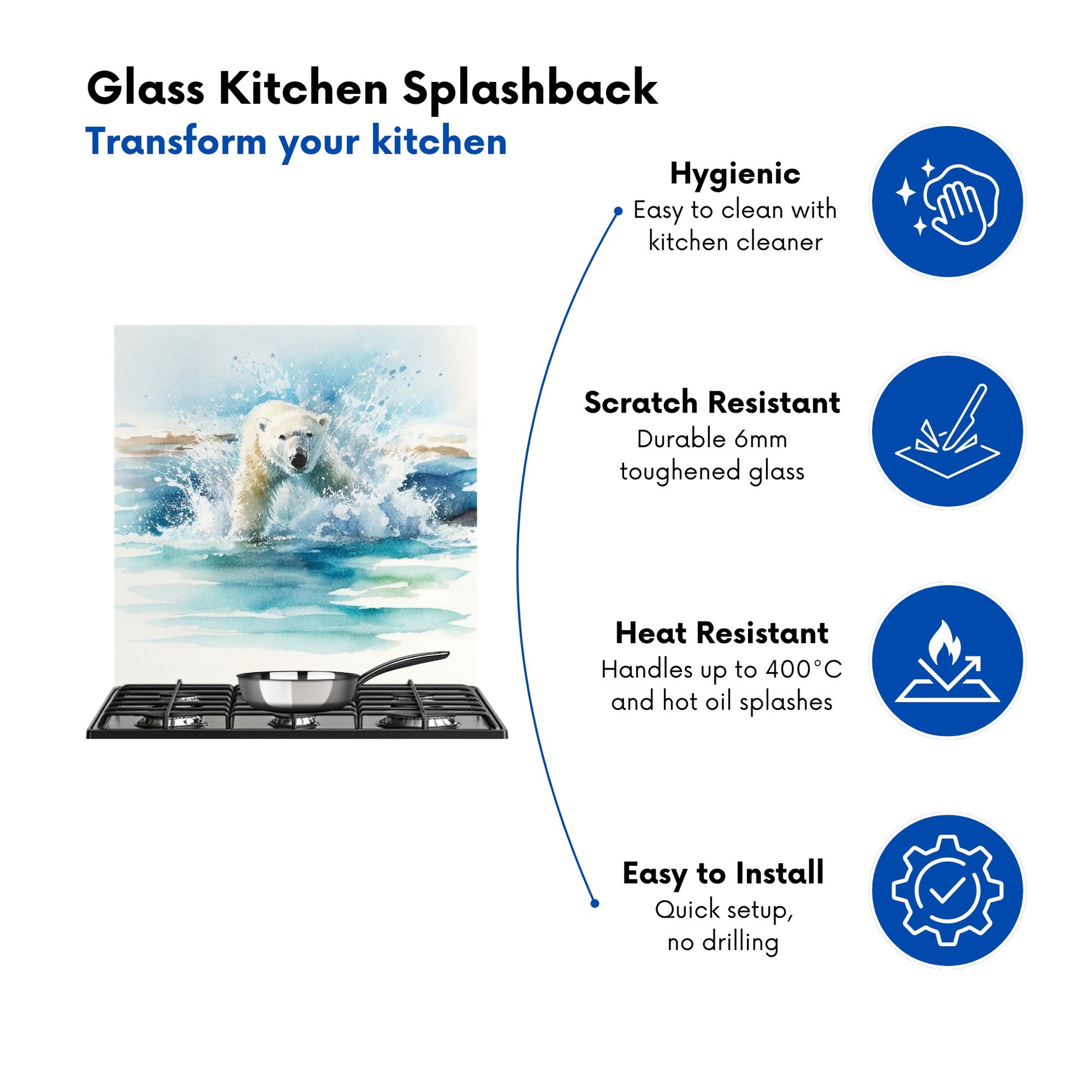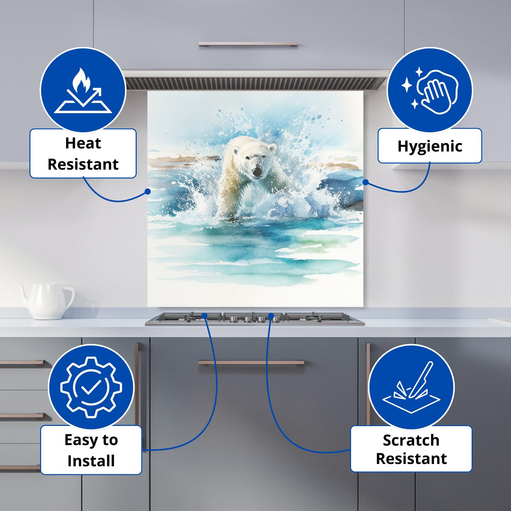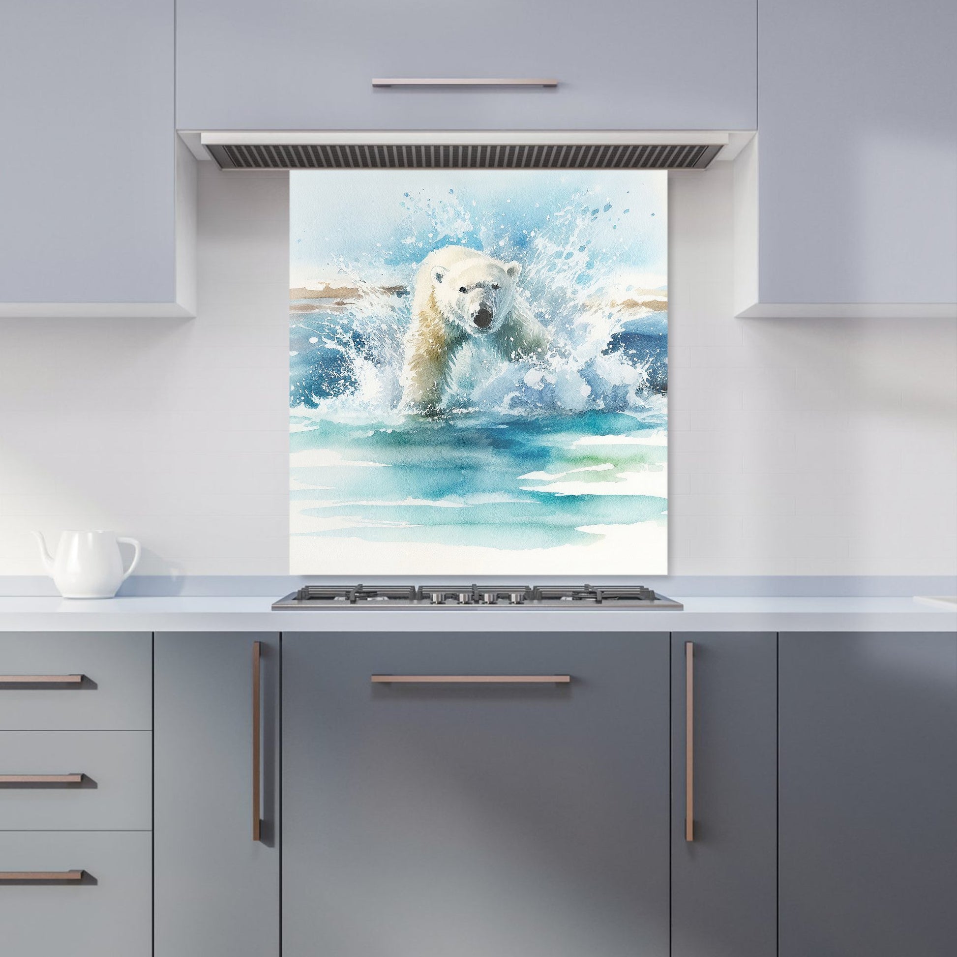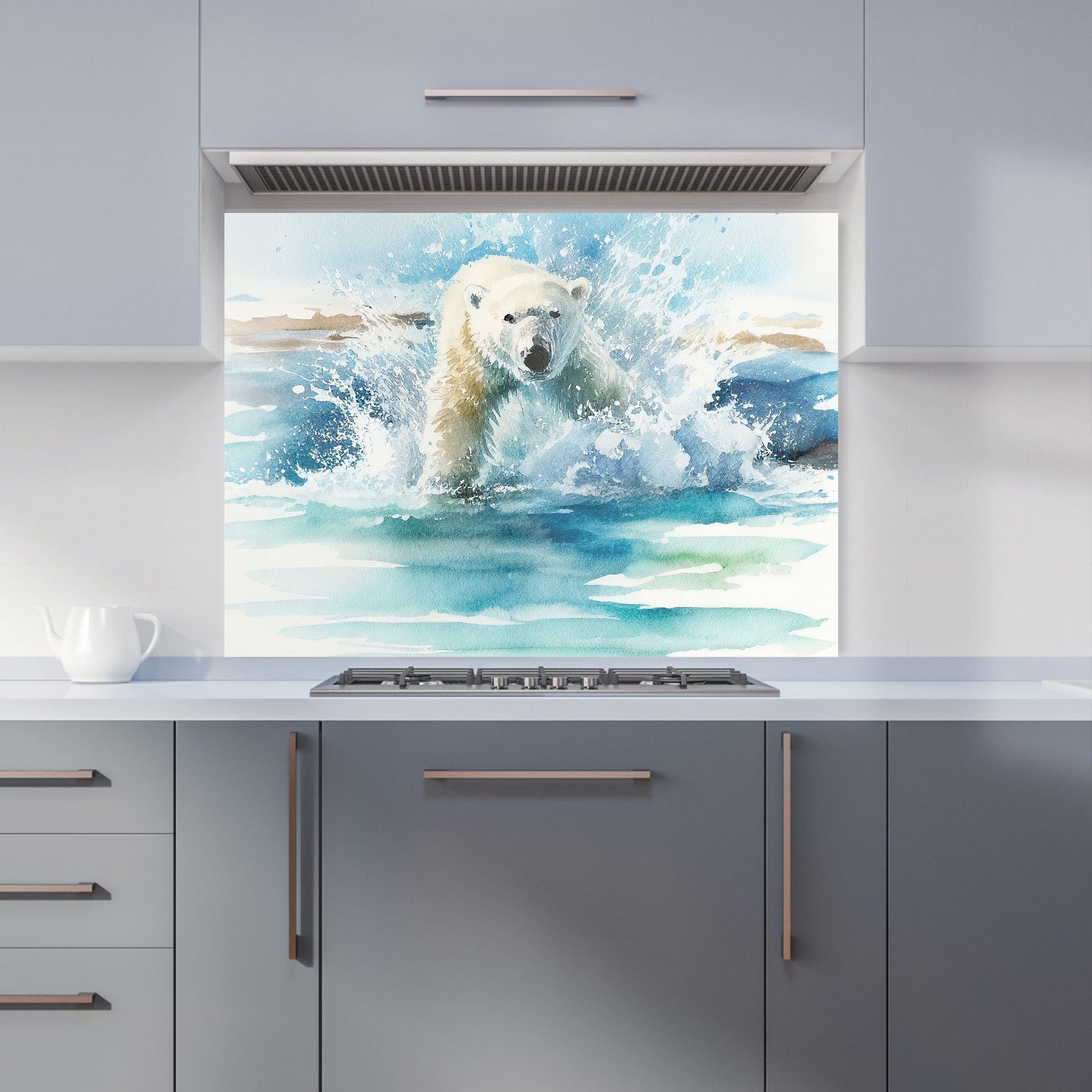 Hunting Polar Bear Watercolour Kitchen Splashback