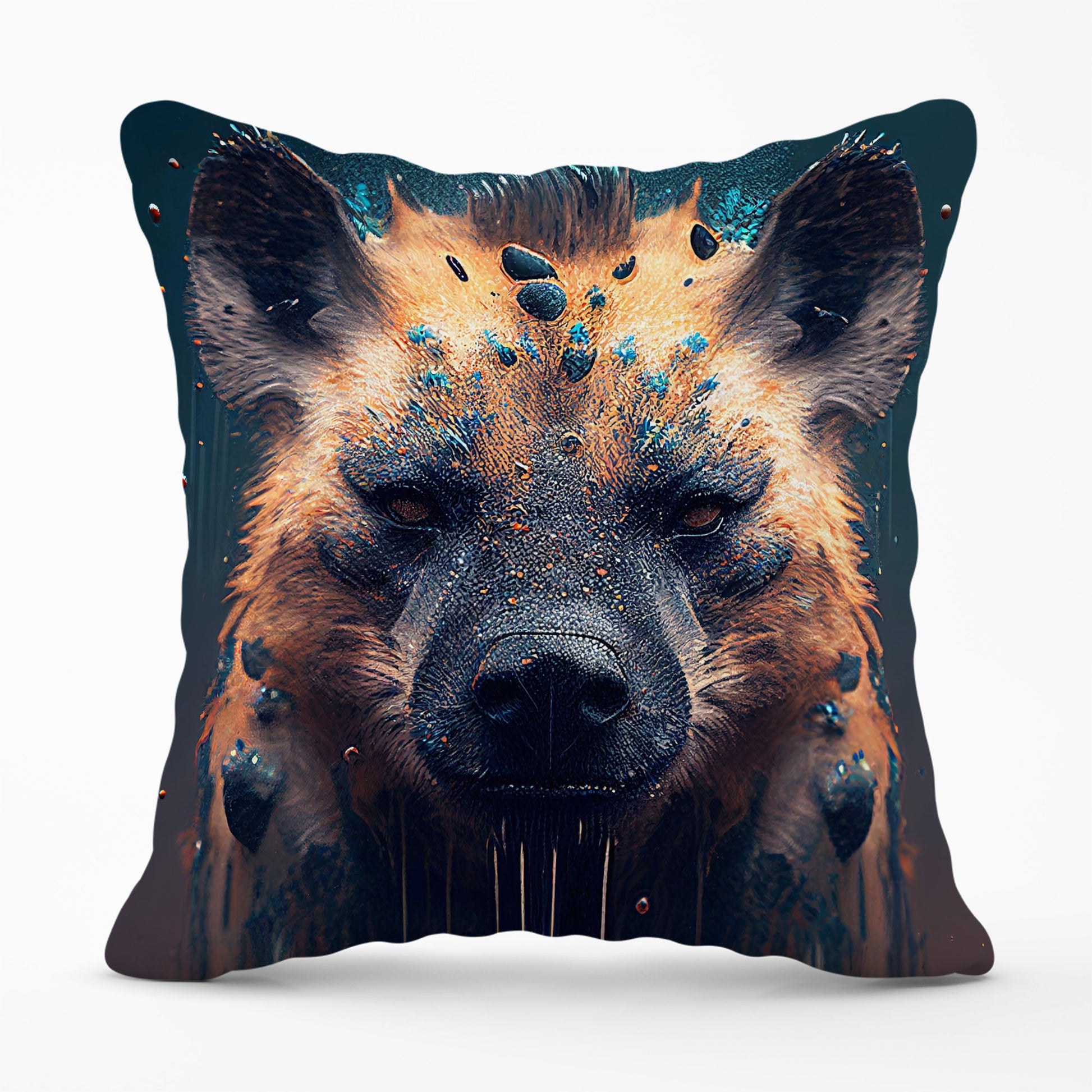 Hyena Face Splashart Dark Background Cushions