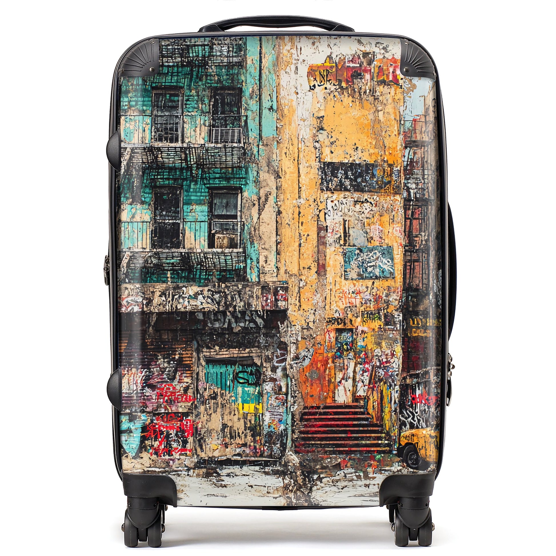 Elevate your travels with the bold design of a Jasper Reed suitcase. Each piece features Jasper's mixed media artwork, capturing the raw beauty of urban decay with textured layers and graffiti. His portrayal of weathered cityscapes, with muted earth tones accented by splashes of neon, embodies the gritty charm of urban life. Crafted from premium, lightweight materials, this suitcase is not only visually striking but also highly durable, built to withstand the wear and tear of travel while being easy to maneuver. Whether you're traveling for business or pleasure, the Jasper Reed Suitcase combines artistic edge with practicality, adding a touch of gritty, urban-inspired flair to your journey.