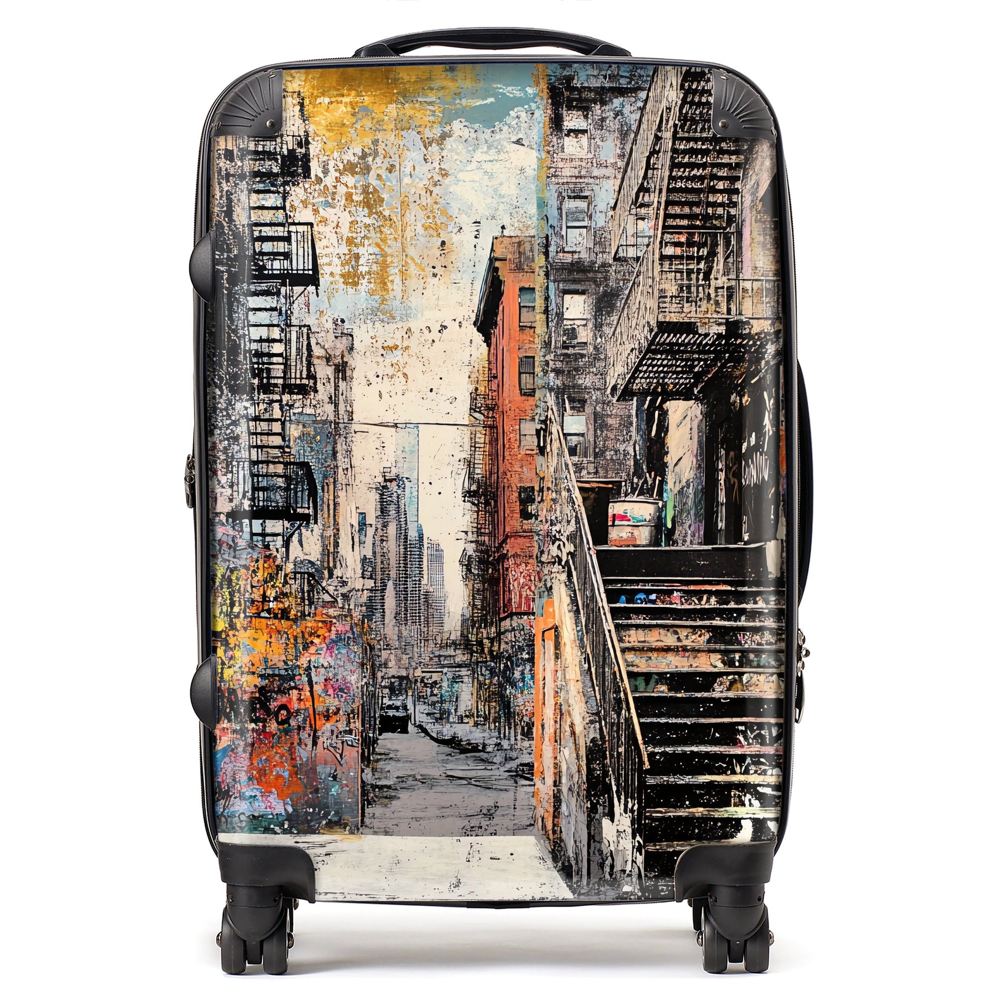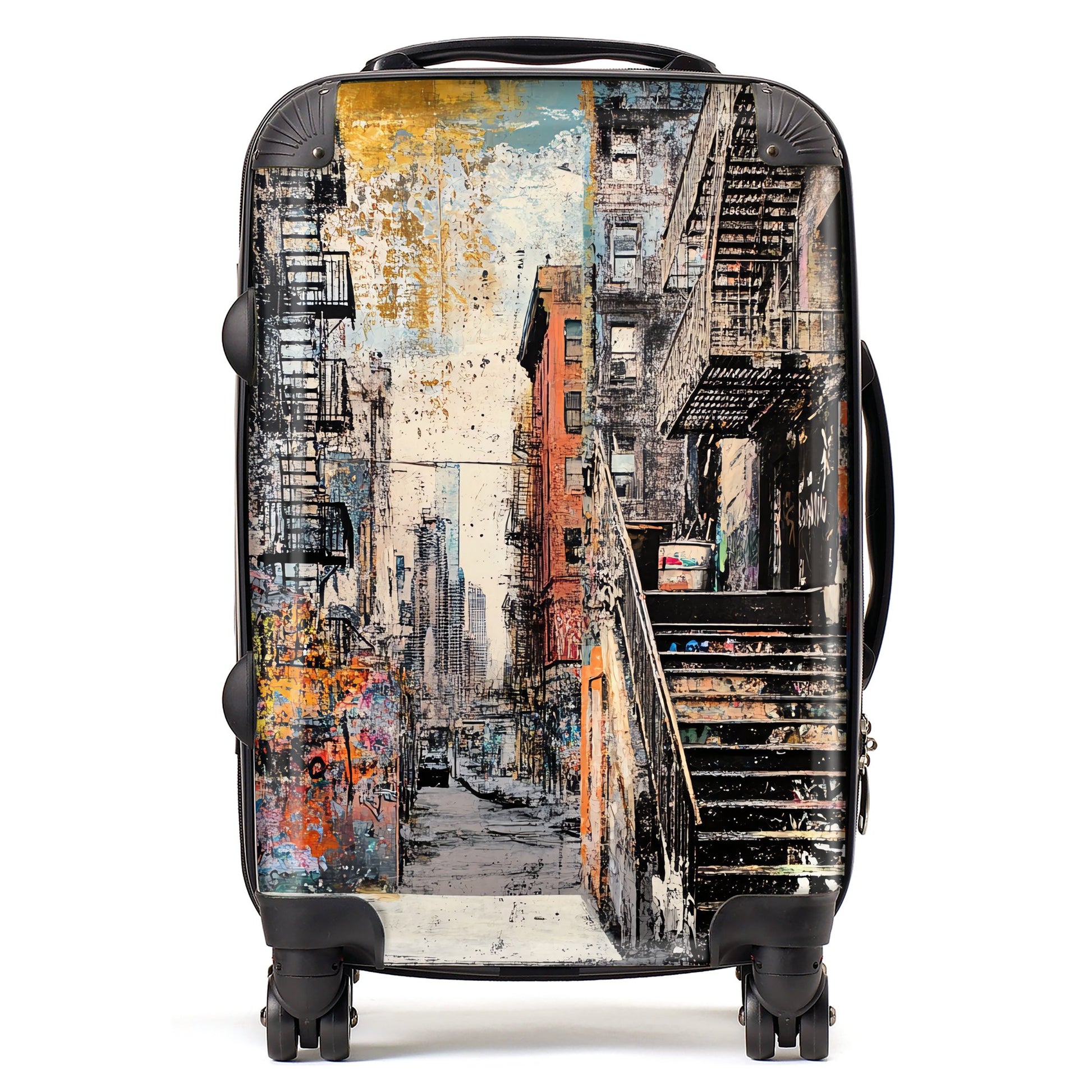 Elevate your travels with the bold design of a Jasper Reed suitcase. Each piece features Jasper's mixed media artwork, capturing the raw beauty of urban decay with textured layers and graffiti. His portrayal of weathered cityscapes, with muted earth tones accented by splashes of neon, embodies the gritty charm of urban life. Crafted from premium, lightweight materials, this suitcase is not only visually striking but also highly durable, built to withstand the wear and tear of travel while being easy to maneuver. Whether you're traveling for business or pleasure, the Jasper Reed Suitcase combines artistic edge with practicality, adding a touch of gritty, urban-inspired flair to your journey.