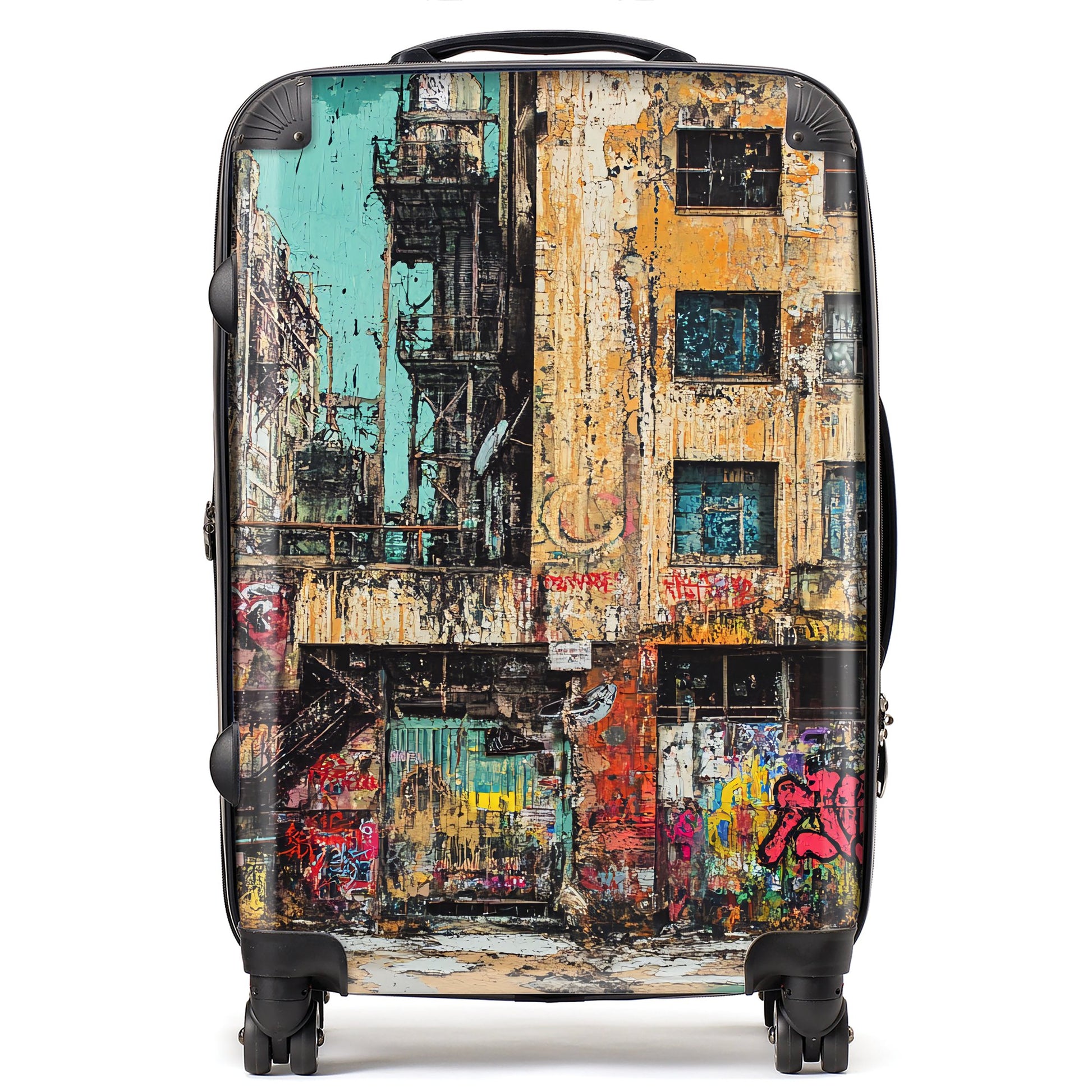 Elevate your travels with the bold design of a Jasper Reed suitcase. Each piece features Jasper's mixed media artwork, capturing the raw beauty of urban decay with textured layers and graffiti. His portrayal of weathered cityscapes, with muted earth tones accented by splashes of neon, embodies the gritty charm of urban life. Crafted from premium, lightweight materials, this suitcase is not only visually striking but also highly durable, built to withstand the wear and tear of travel while being easy to maneuver. Whether you're traveling for business or pleasure, the Jasper Reed Suitcase combines artistic edge with practicality, adding a touch of gritty, urban-inspired flair to your journey.