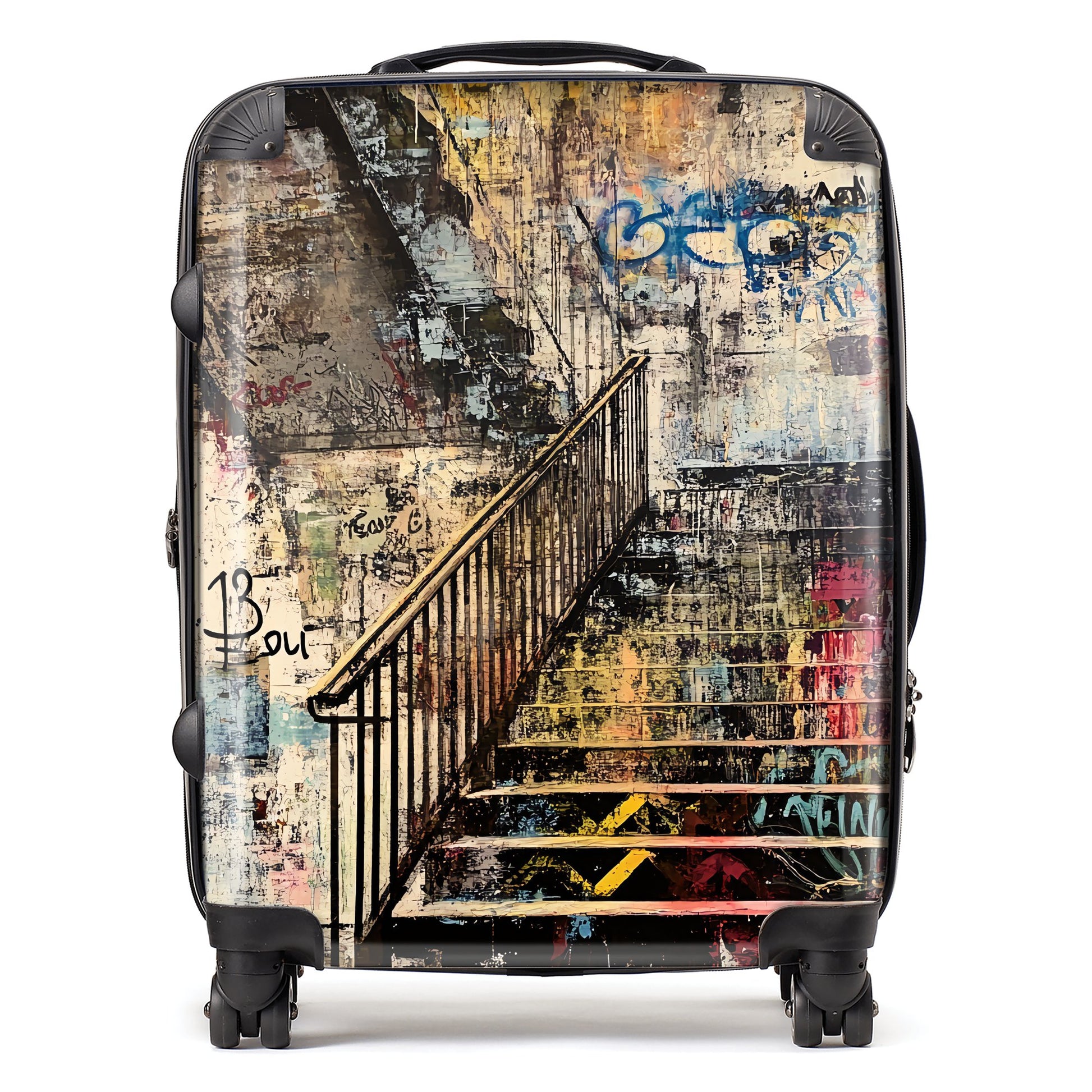Elevate your travels with the bold design of a Jasper Reed suitcase. Each piece features Jasper's mixed media artwork, capturing the raw beauty of urban decay with textured layers and graffiti. His portrayal of weathered cityscapes, with muted earth tones accented by splashes of neon, embodies the gritty charm of urban life. Crafted from premium, lightweight materials, this suitcase is not only visually striking but also highly durable, built to withstand the wear and tear of travel while being easy to maneuver. Whether you're traveling for business or pleasure, the Jasper Reed Suitcase combines artistic edge with practicality, adding a touch of gritty, urban-inspired flair to your journey.