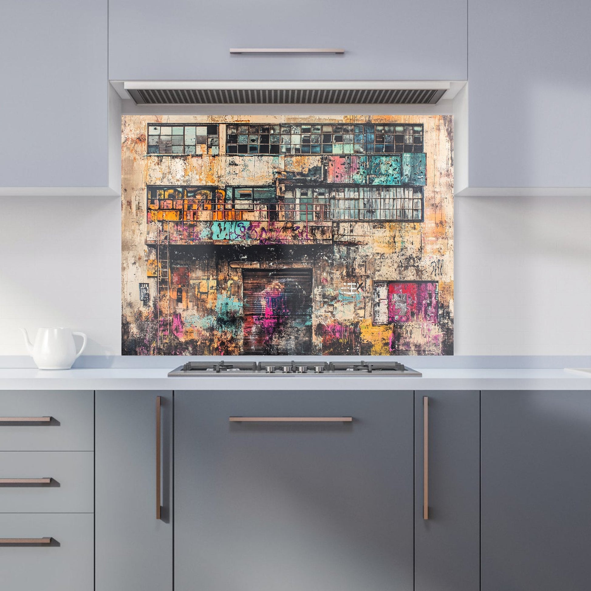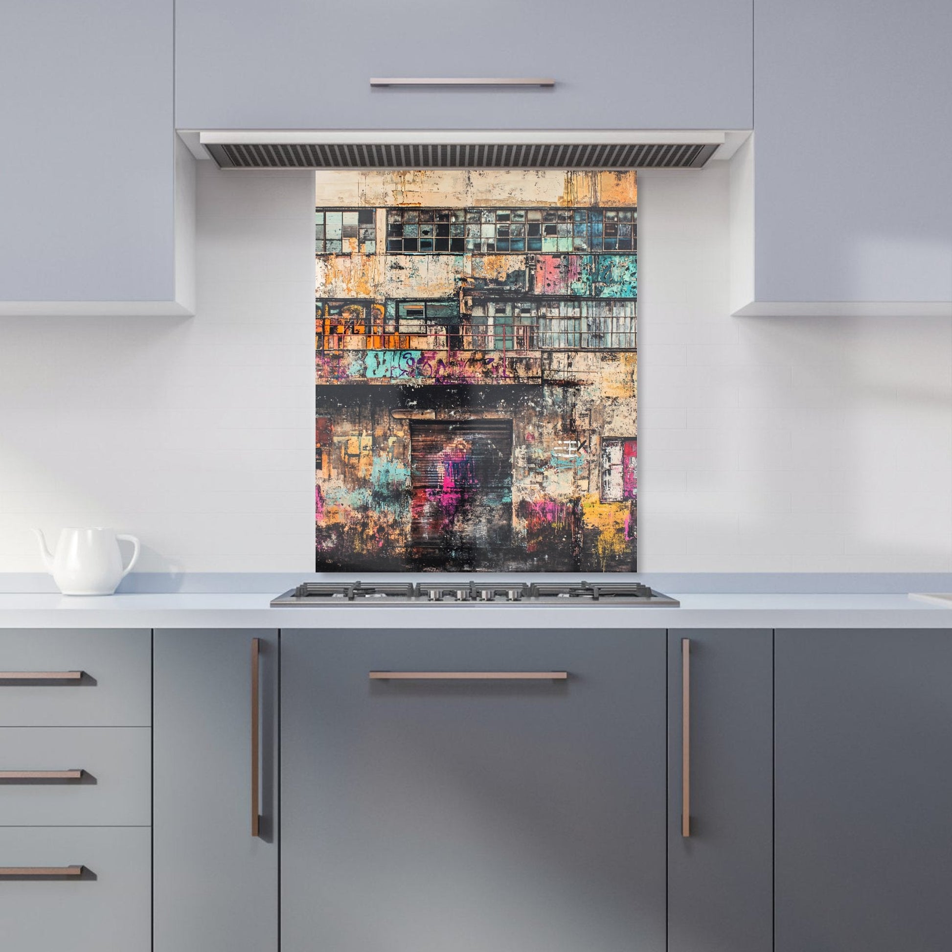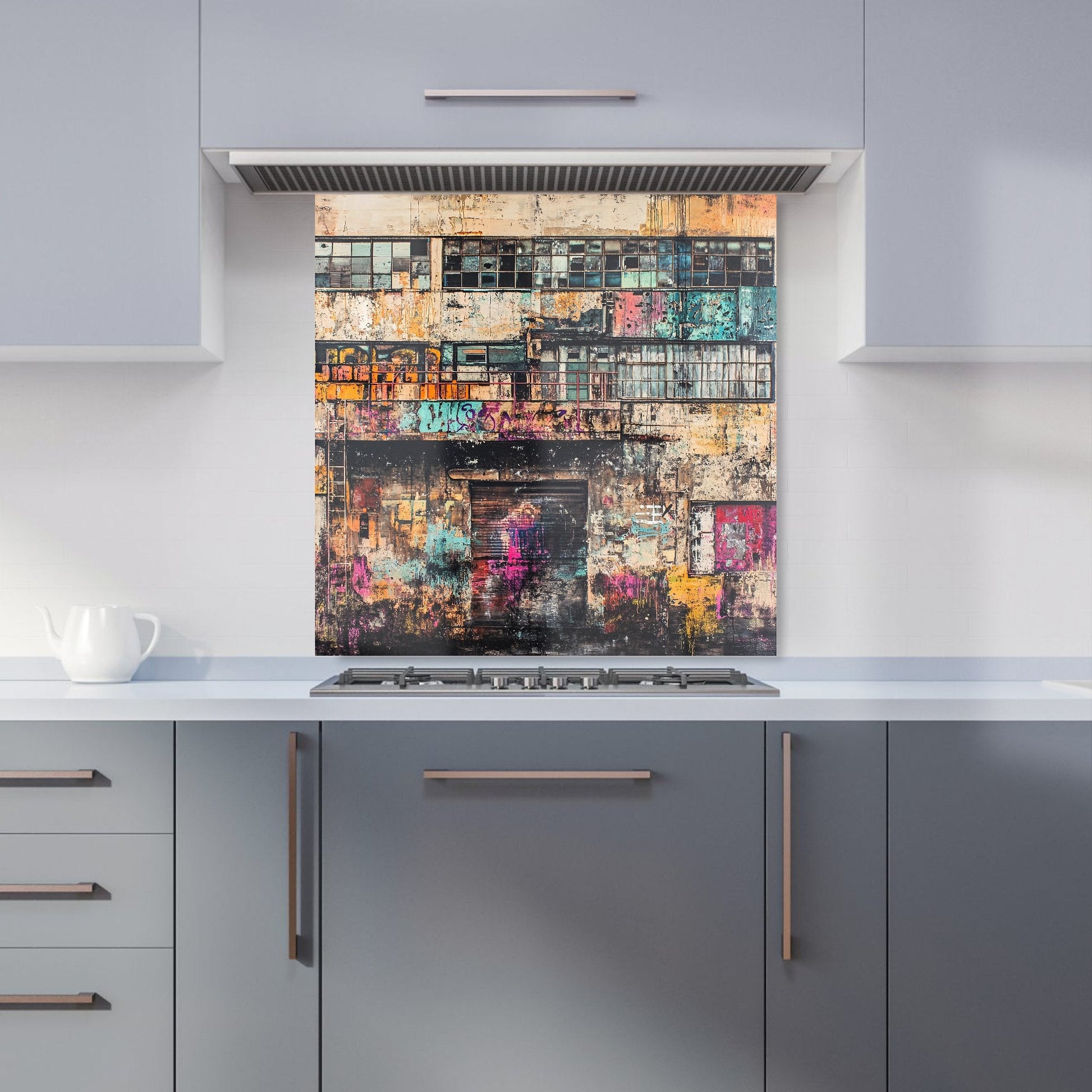 Elevate your kitchen with the bold design of a Jasper Reed glass splashback. Each piece features Jasper's mixed media artwork, capturing the raw beauty of urban decay with layered textures and graffiti. His portrayal of worn cityscapes highlights the gritty charm of weathered buildings, with muted earth tones accented by vibrant splashes of neon.