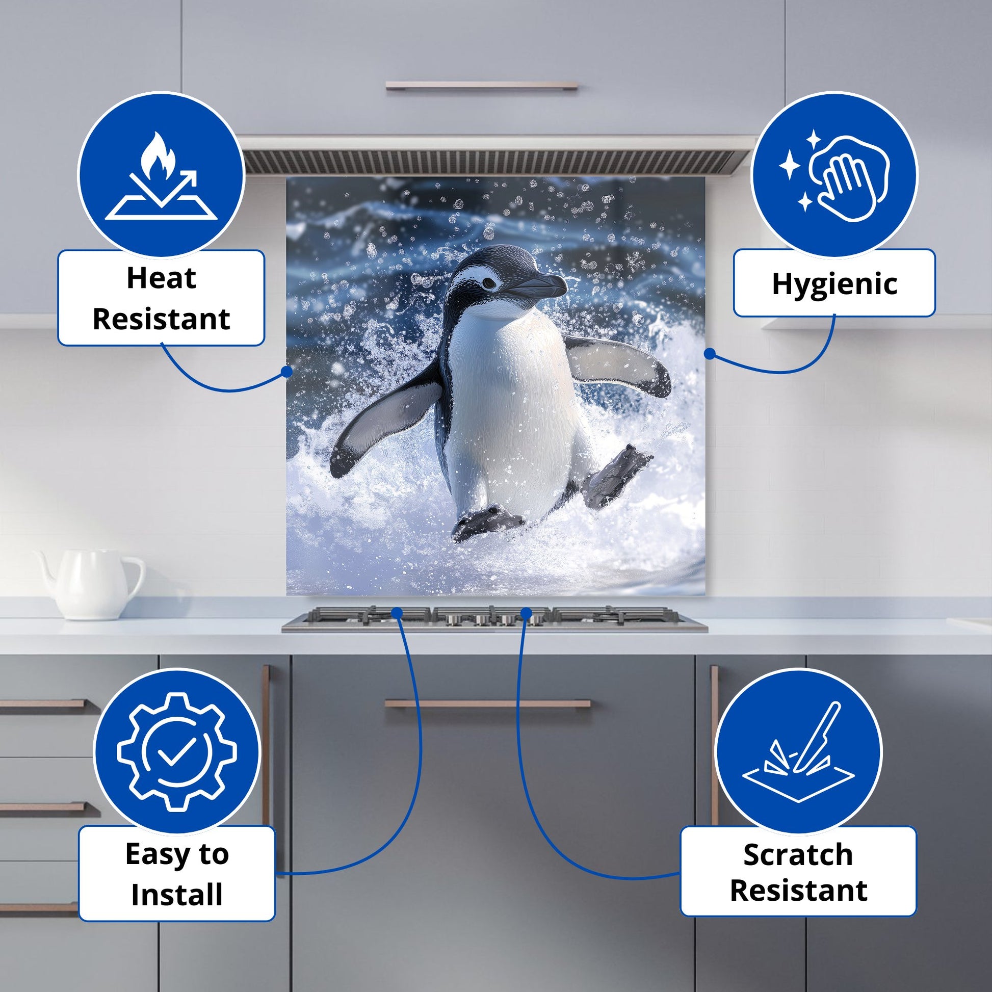 Joyful Penguin Splashes Kitchen Splashback