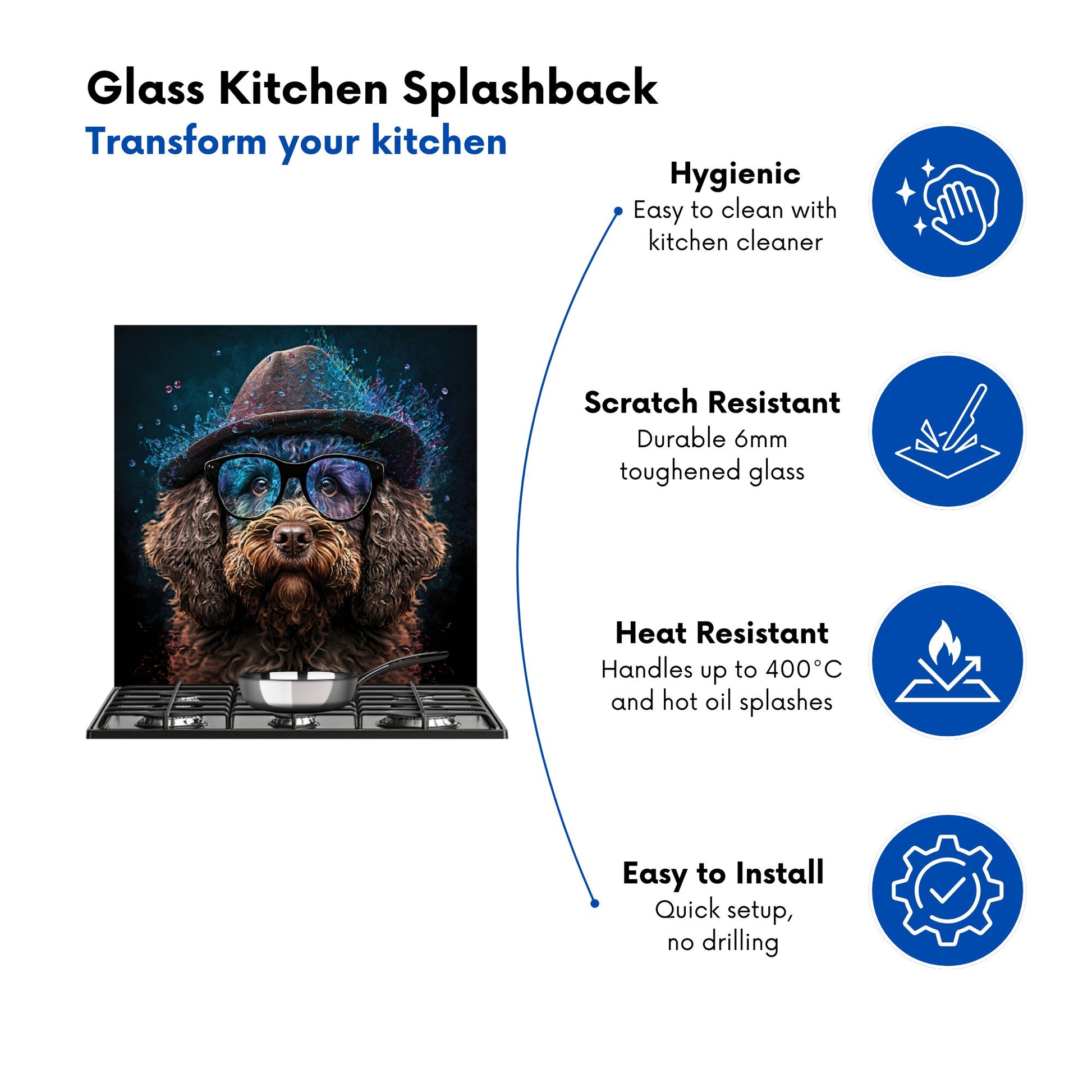 Labradoodle Dog With Glasses Splashart Kitchen Splashback
