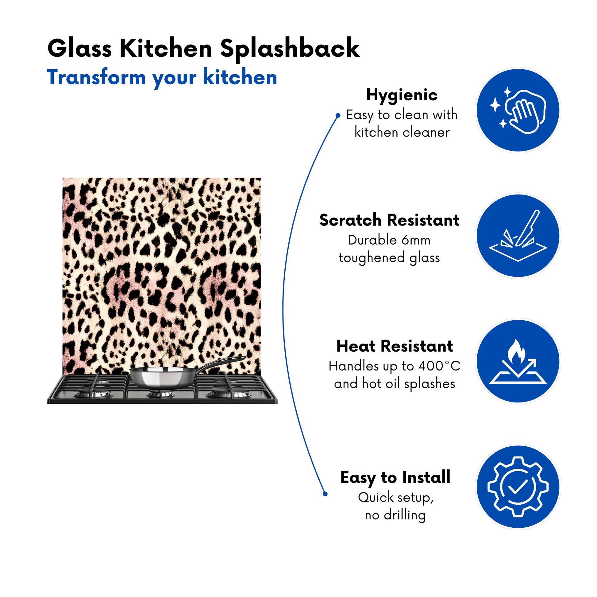 Durable and easy to clean, it's perfect for the kitchen. Whether renovating or updating your home’s look, our Premium 6mm Glass Kitchen Splashback is a stylish choice that makes a lasting impression. Upgrade your kitchen décor today for the perfect mix of beauty and practicality.