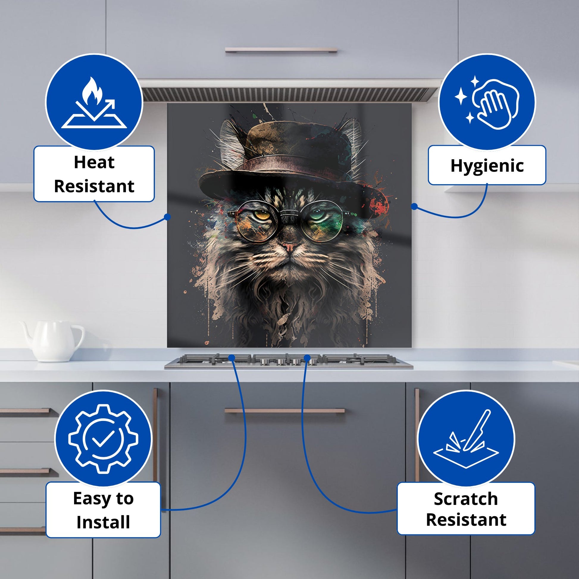 Maine Coon Cat With GlassesSplashart Kitchen Splashback