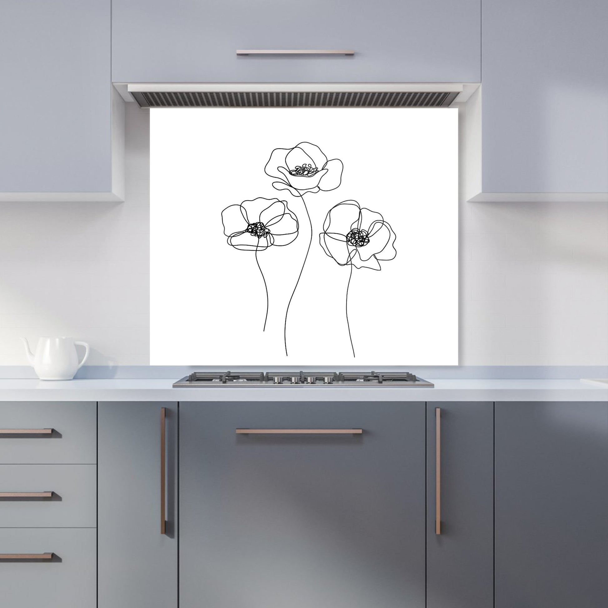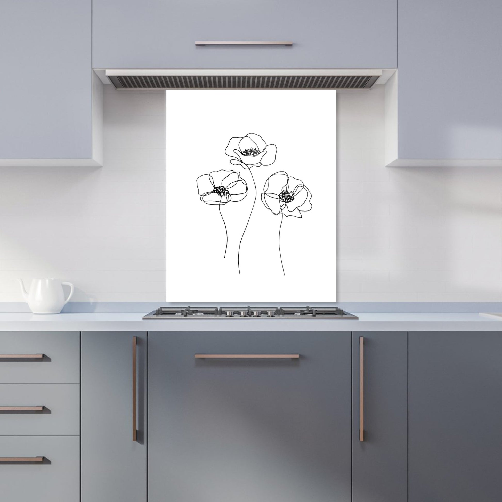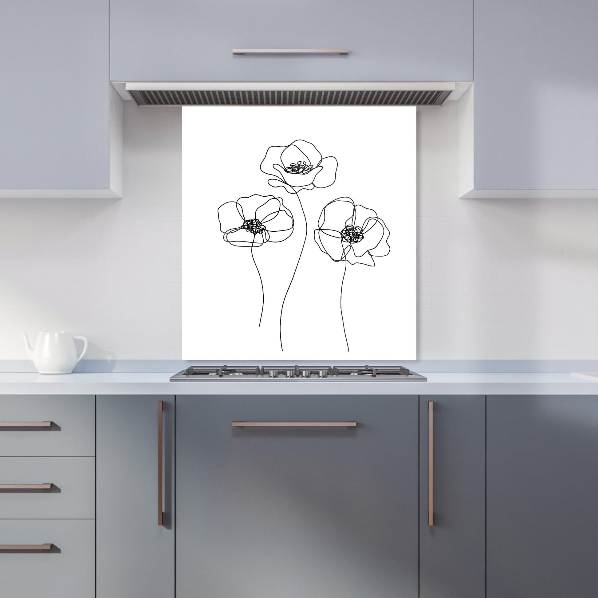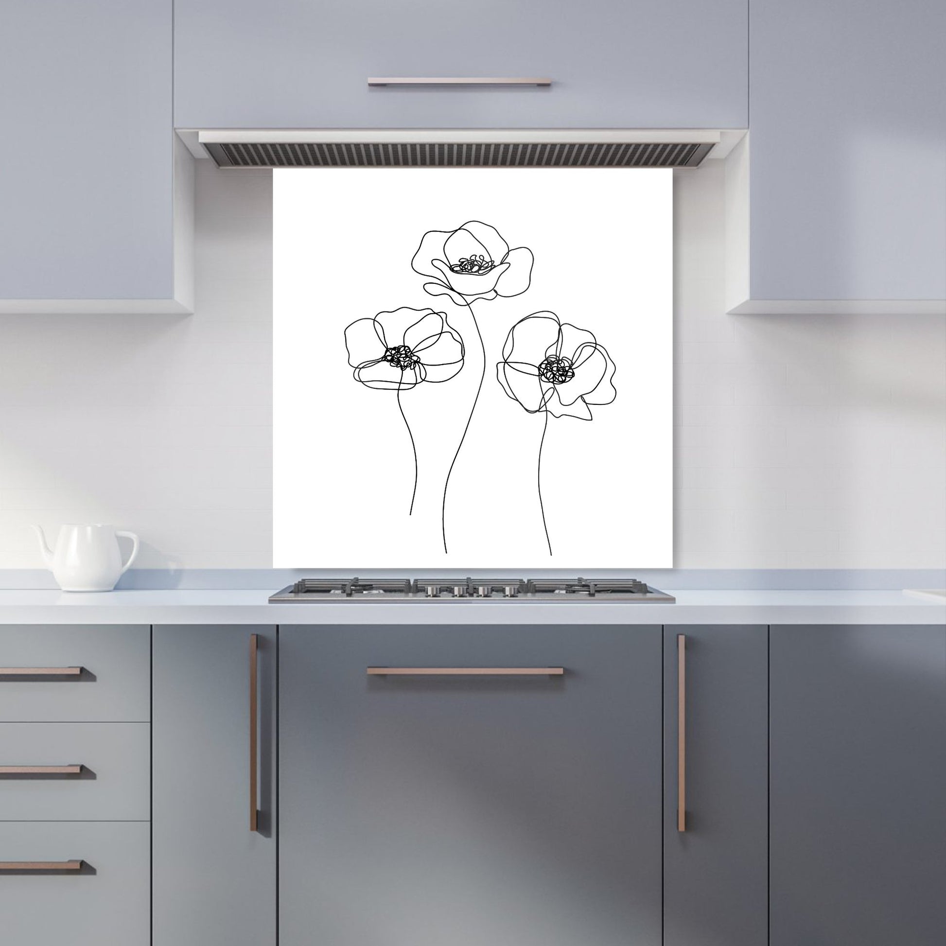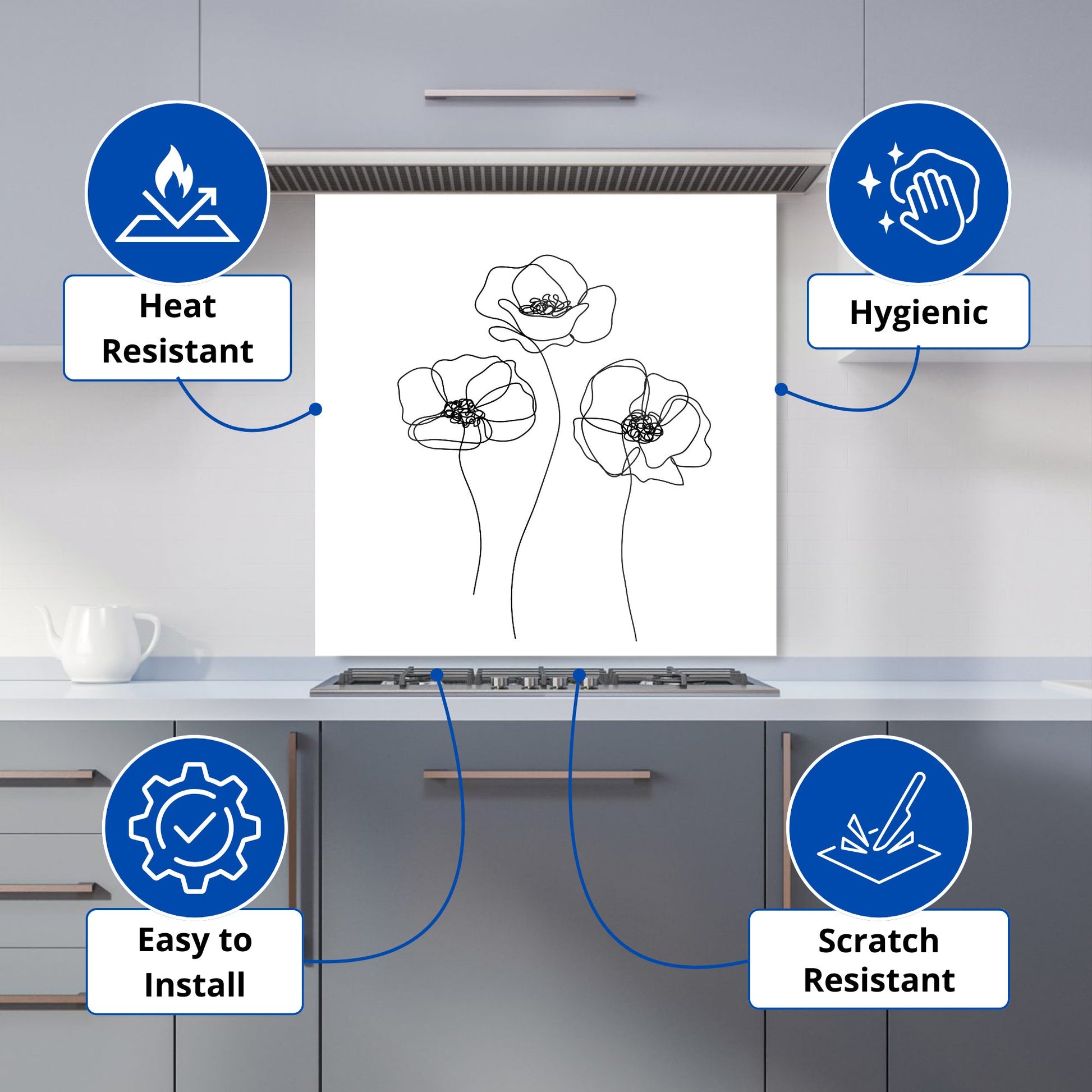 Monochrome Line Drawn Poppies Kitchen Splashback