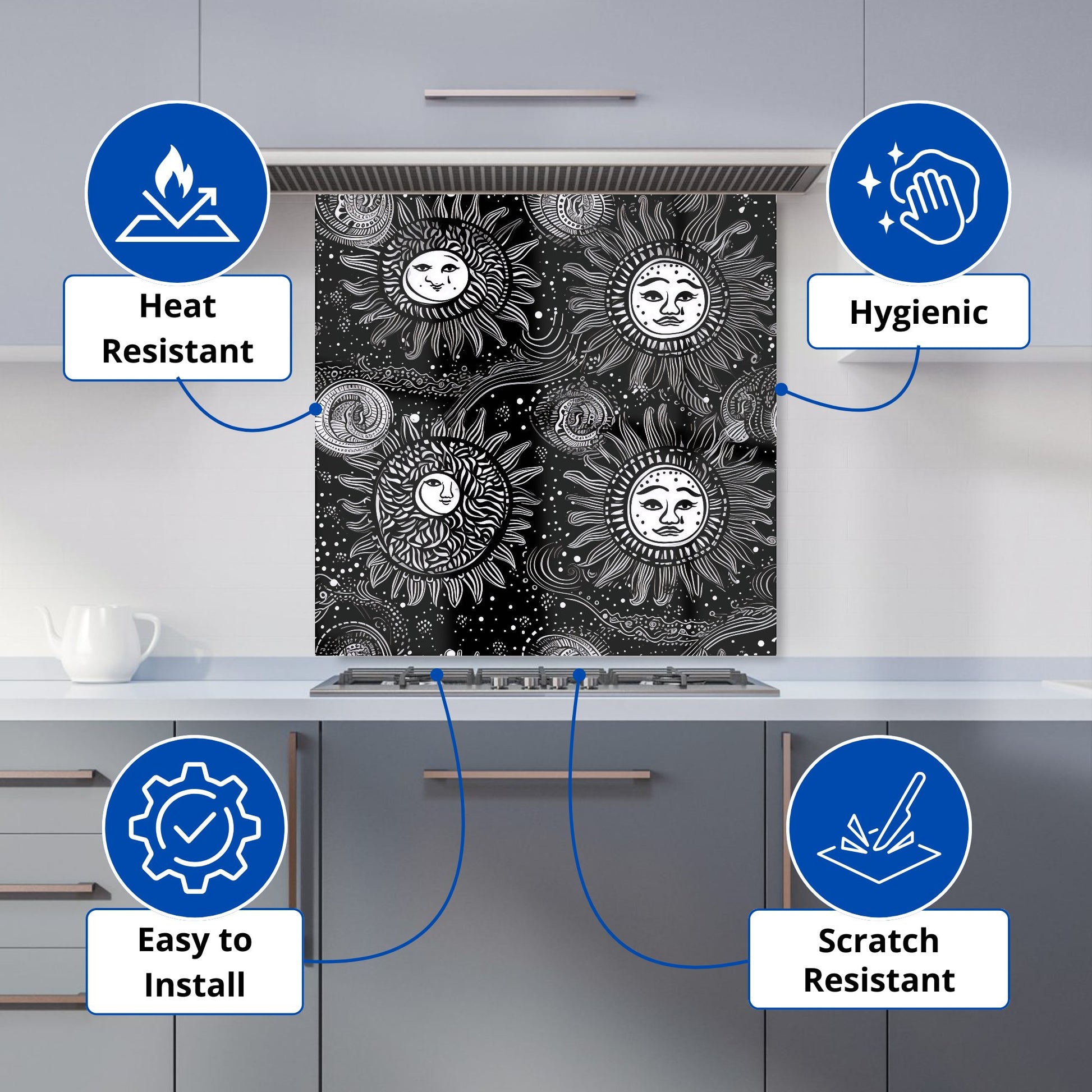 Moon and Sun White Black Kitchen Splashback