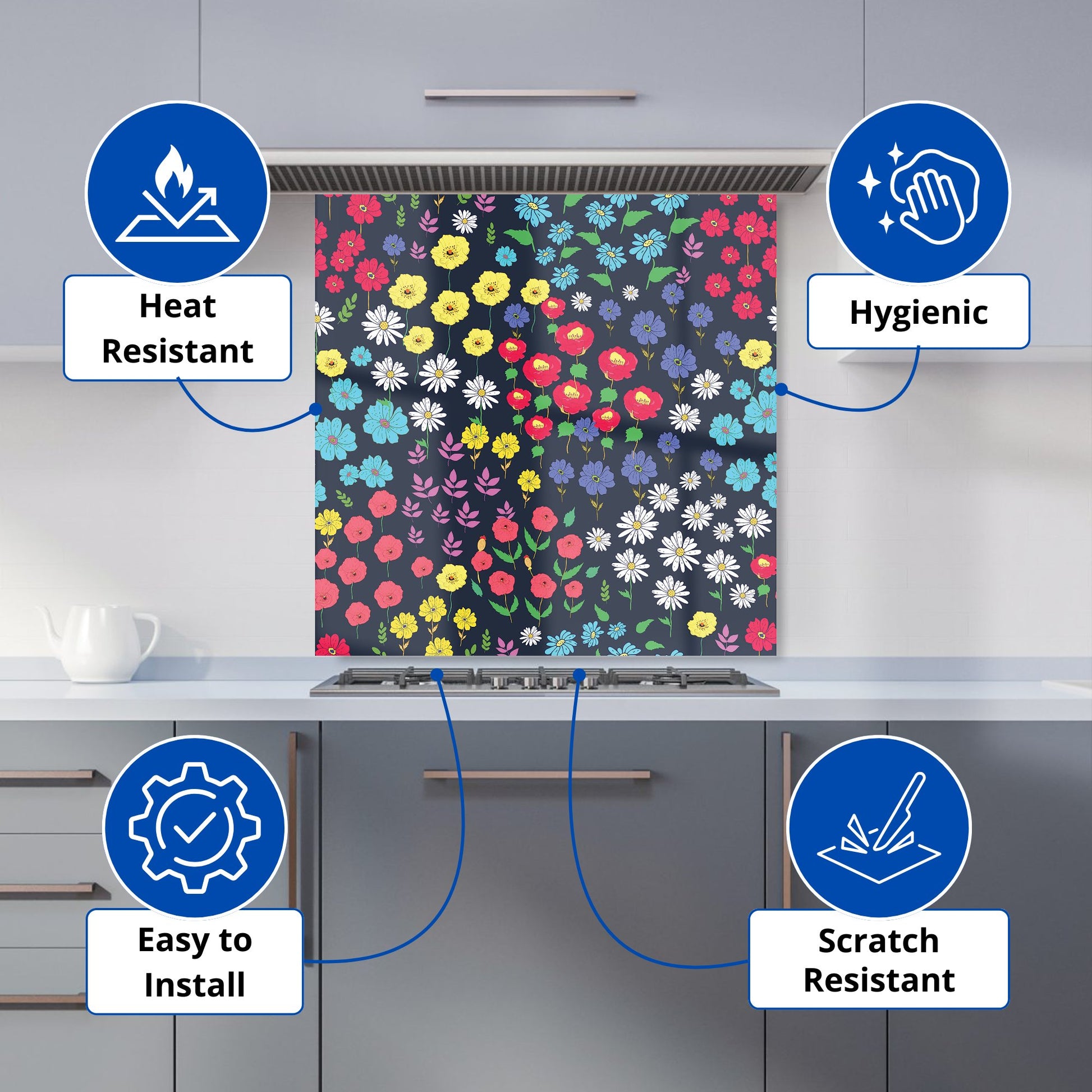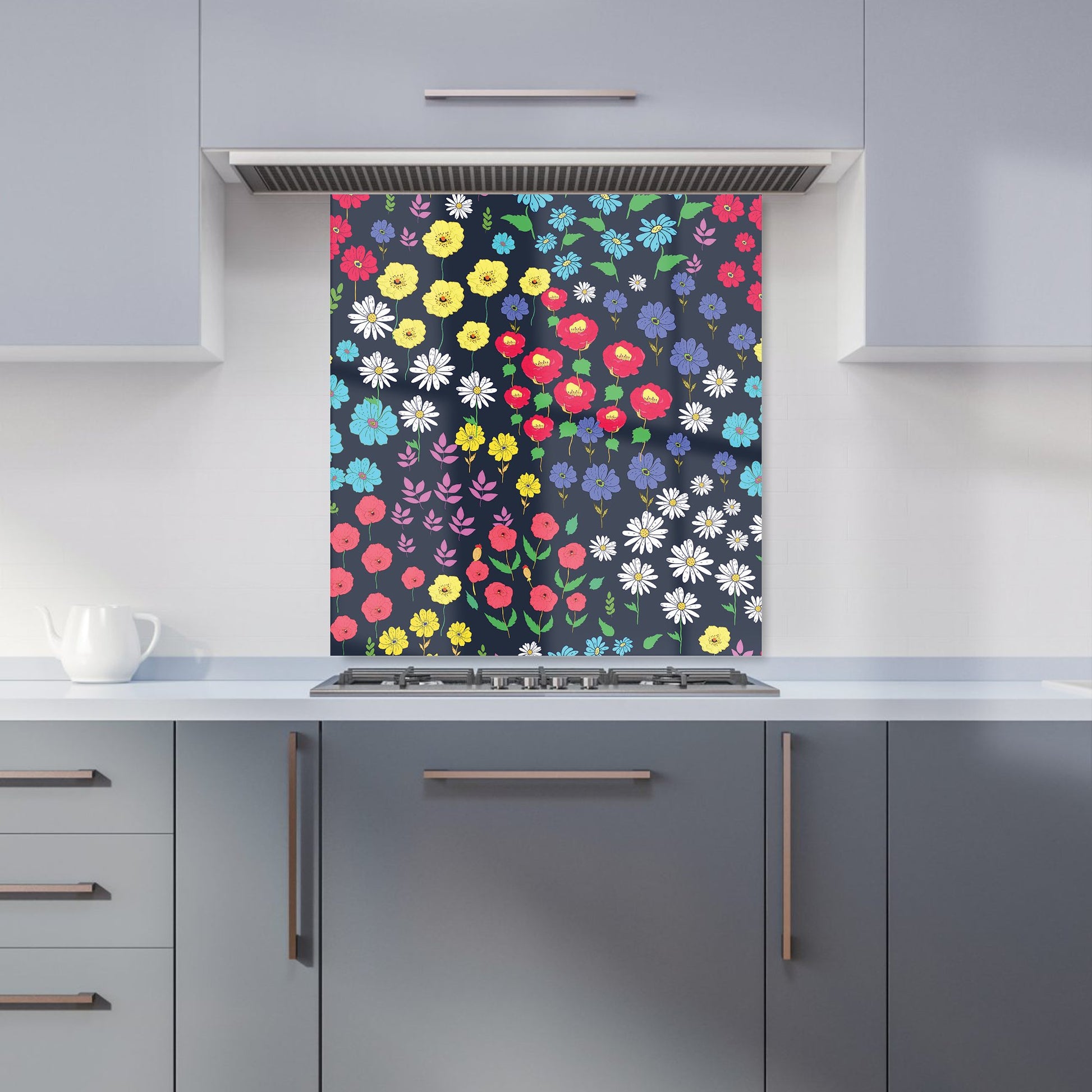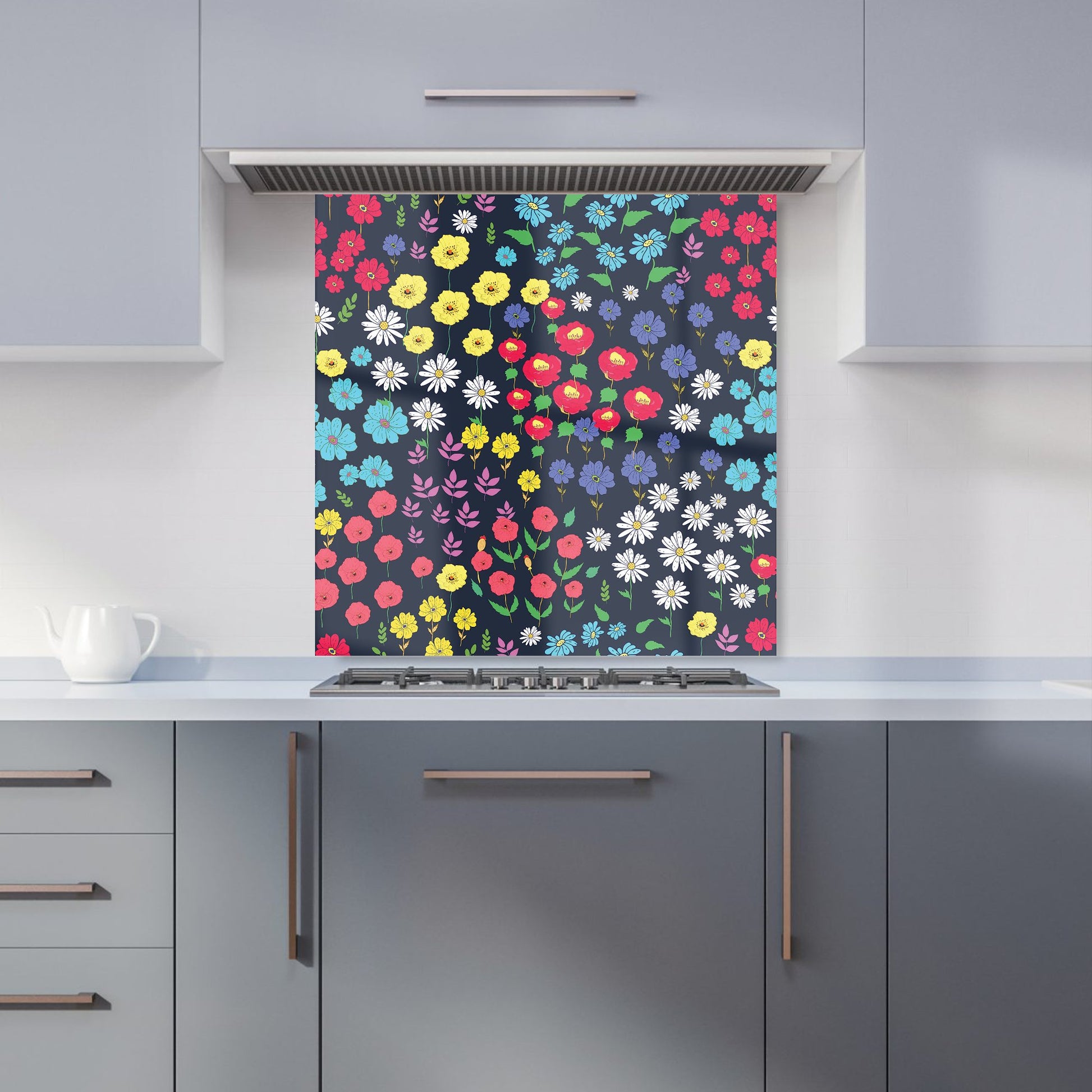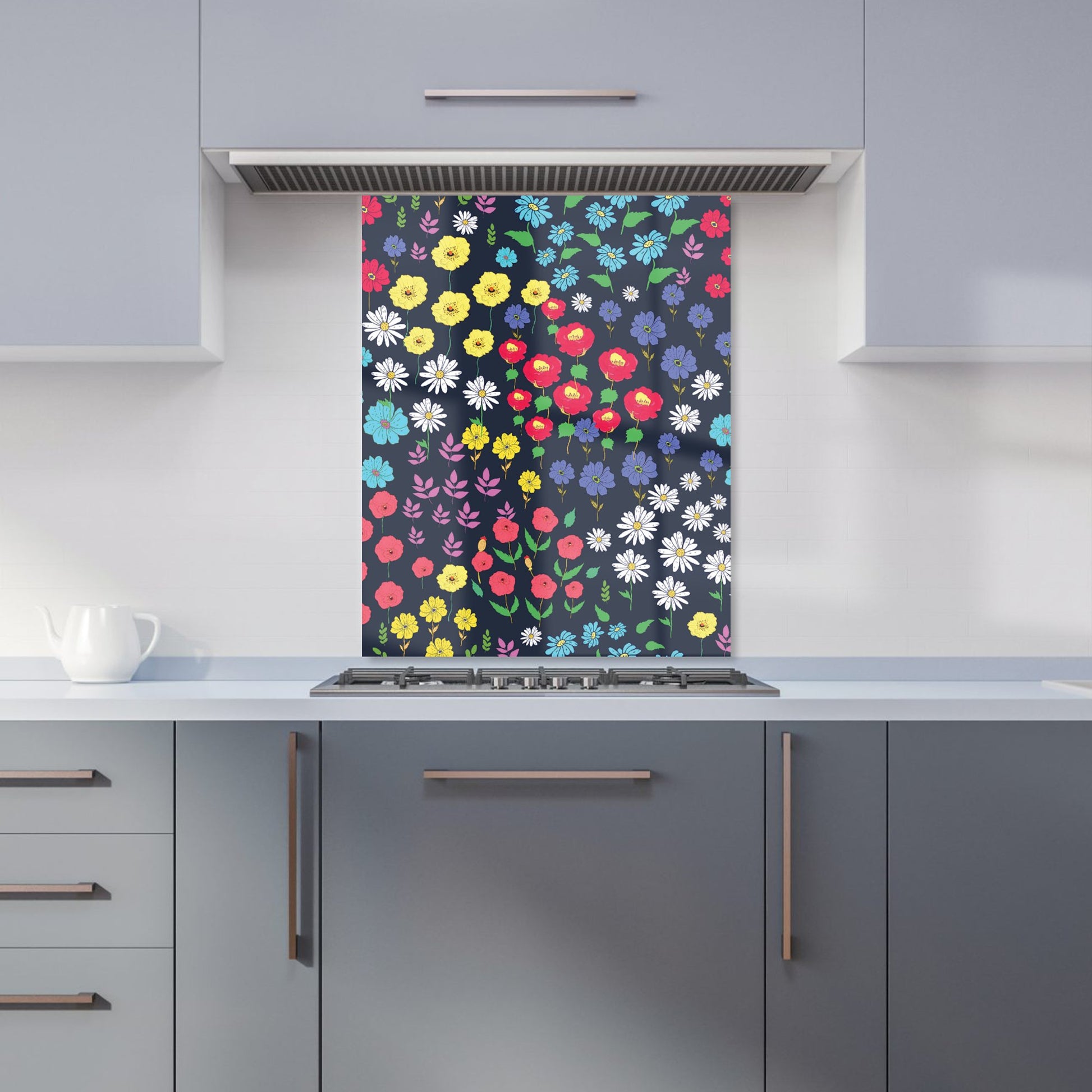 Multicoloured Flower Pattern Kitchen Splashback