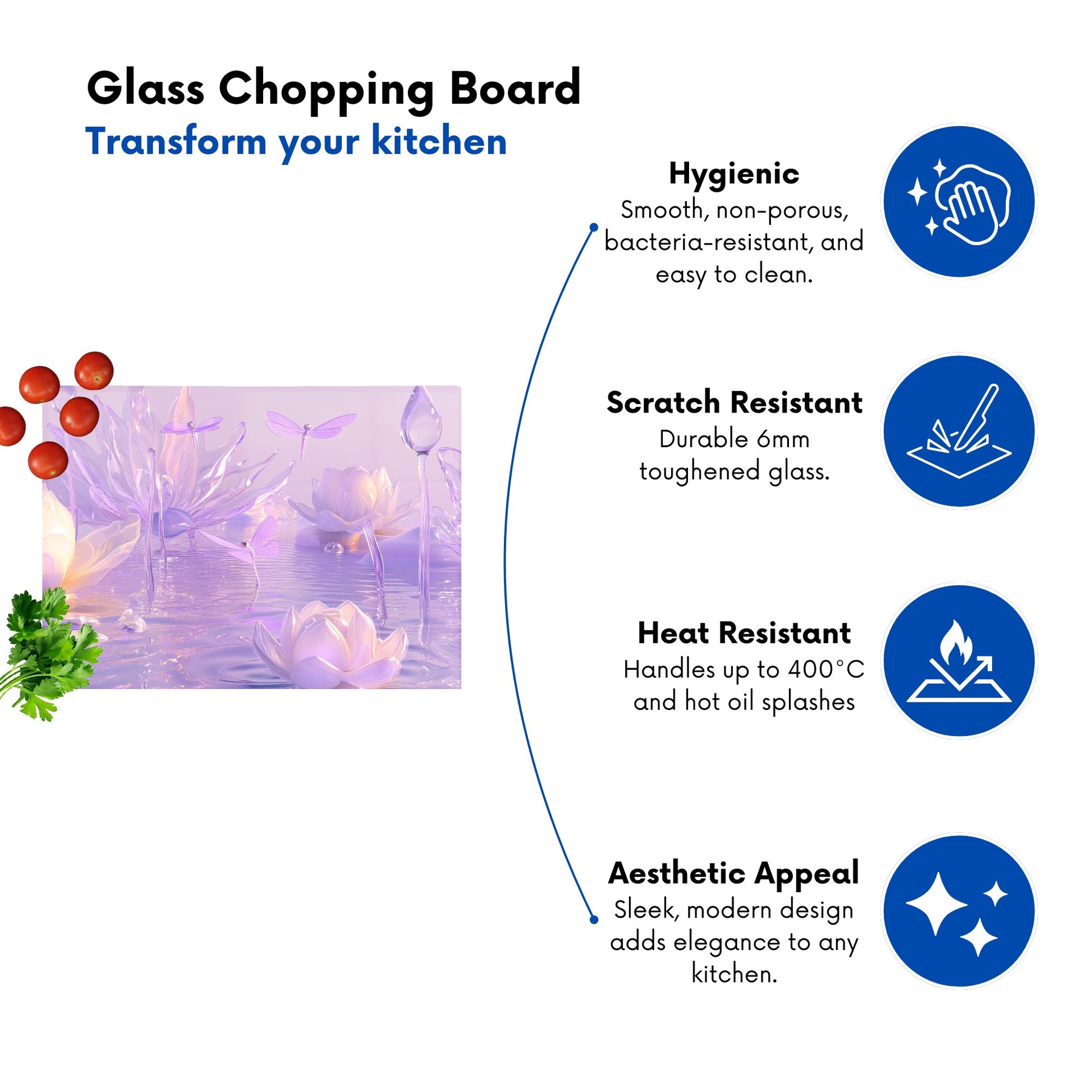 Add a touch of elegance and practicality to your kitchen with this premium glass chopping board from Warren Reed. Made from toughened glass, it’s designed to handle daily use while showcasing stunning artistic designs. Whether you use it as a cutting board, serving platter, or decorative piece, it’s the perfect blend of style and function.