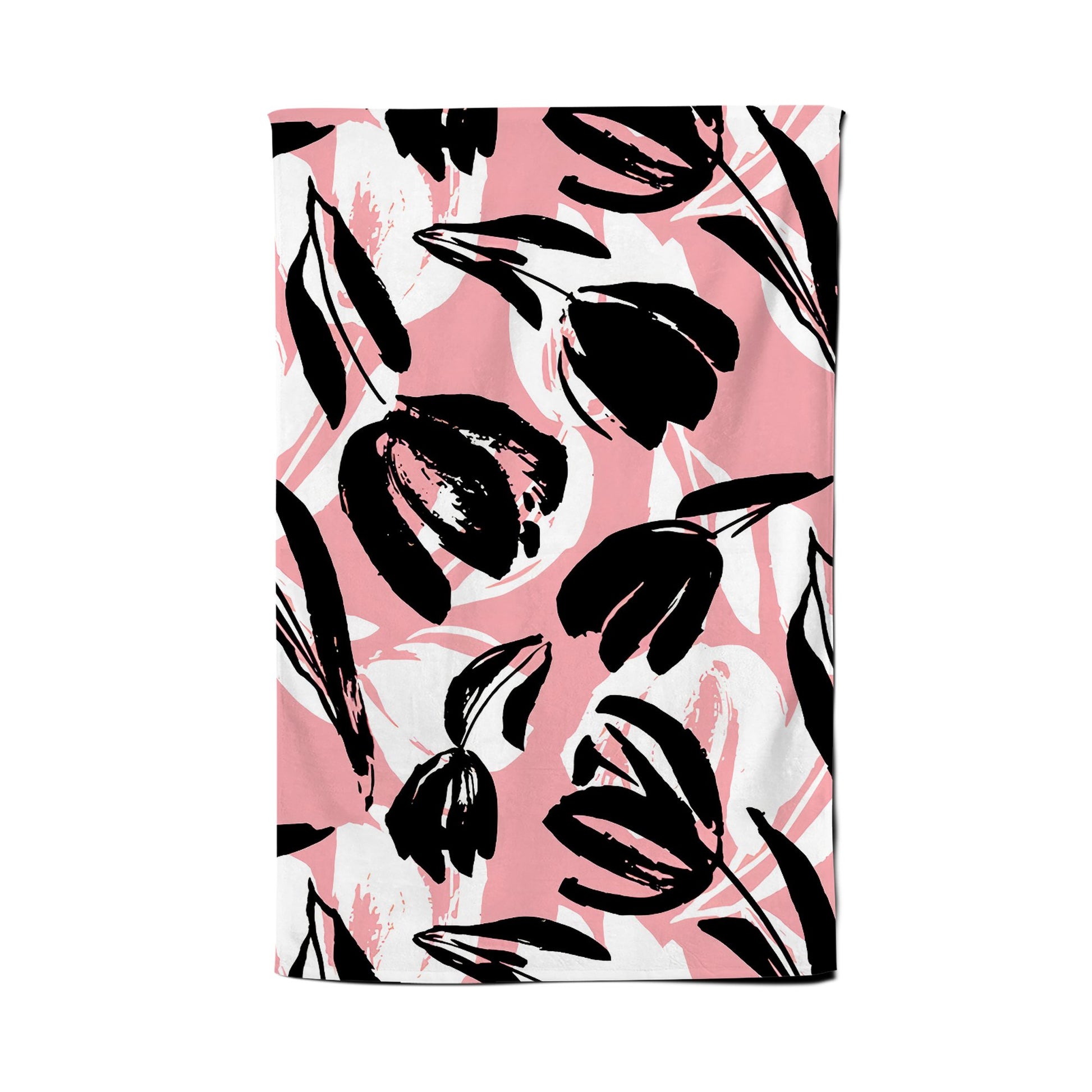 Nature Flat Spring Flower Motif In Pink And Black Color Tea Towel
