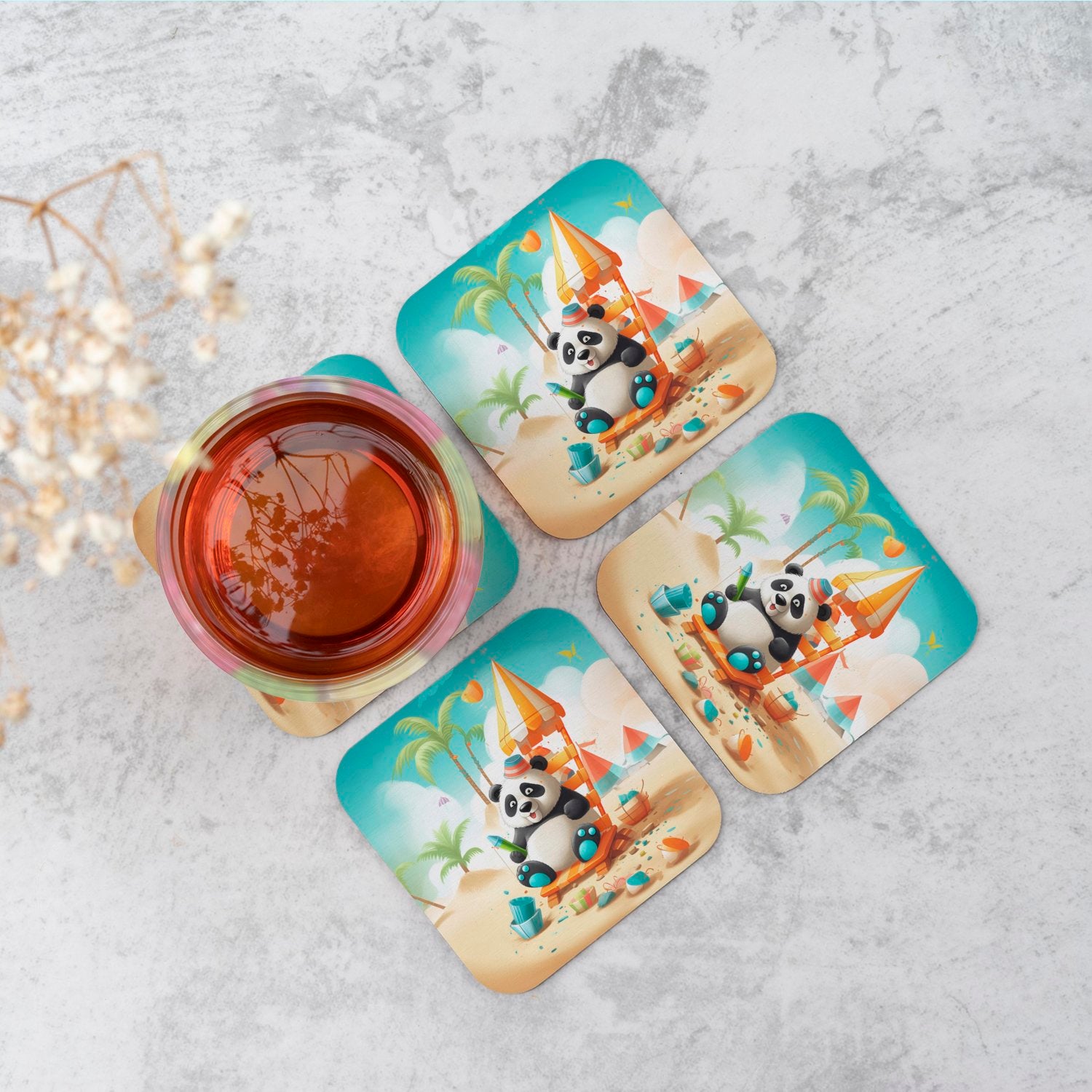 Panda On A Beach Holiday Coasters