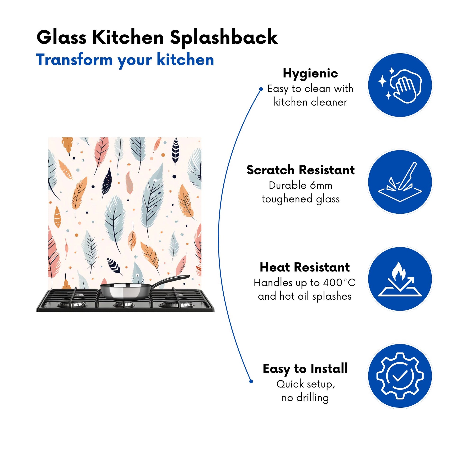 Durable and easy to clean, it's perfect for the kitchen. Whether renovating or updating your home’s look, our Premium 6mm Glass Kitchen Splashback is a stylish choice that makes a lasting impression. Upgrade your kitchen décor today for the perfect mix of beauty and practicality.