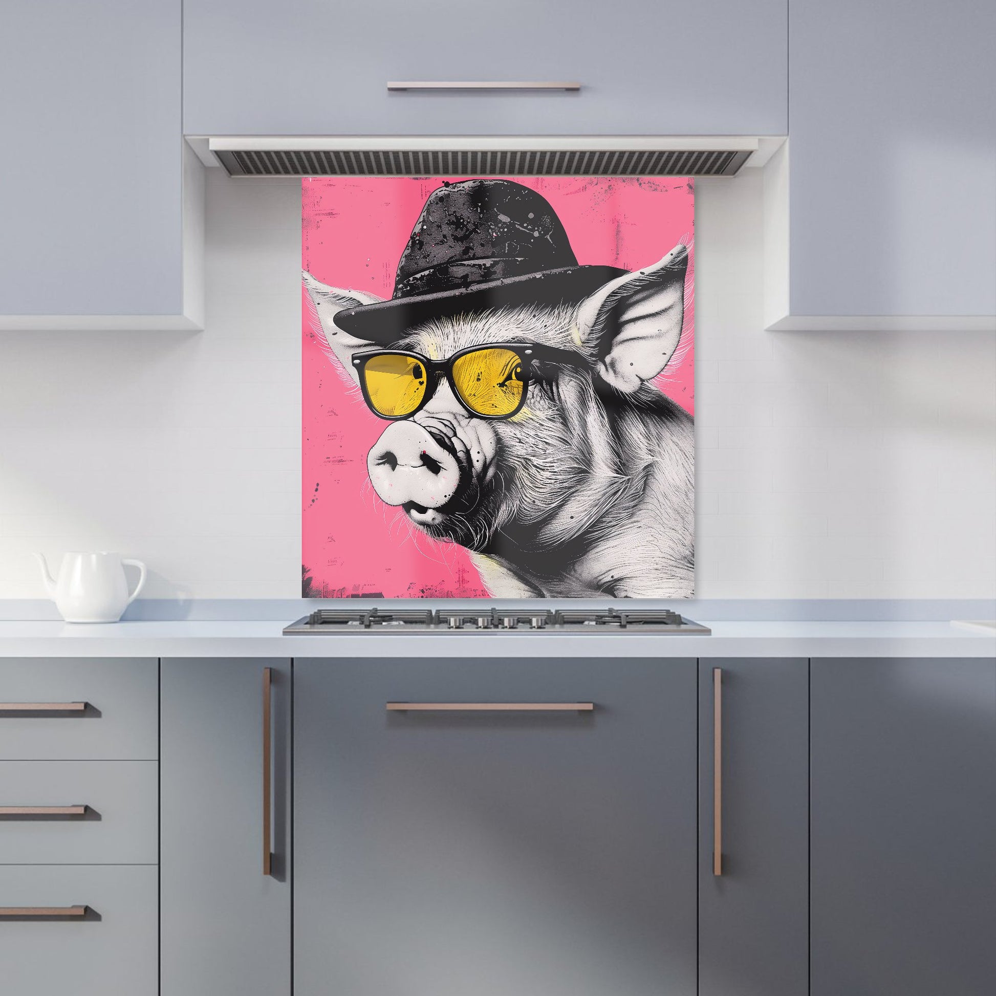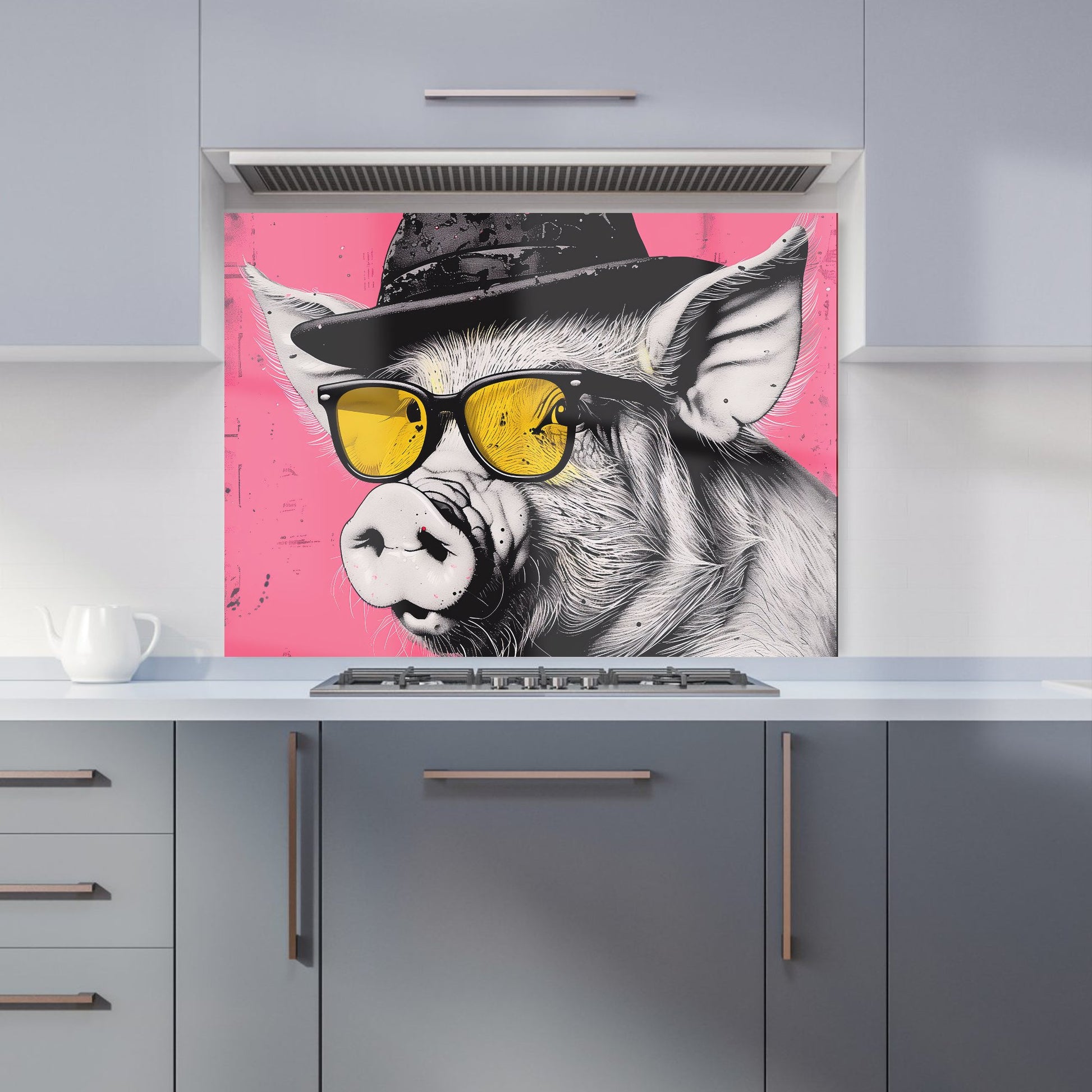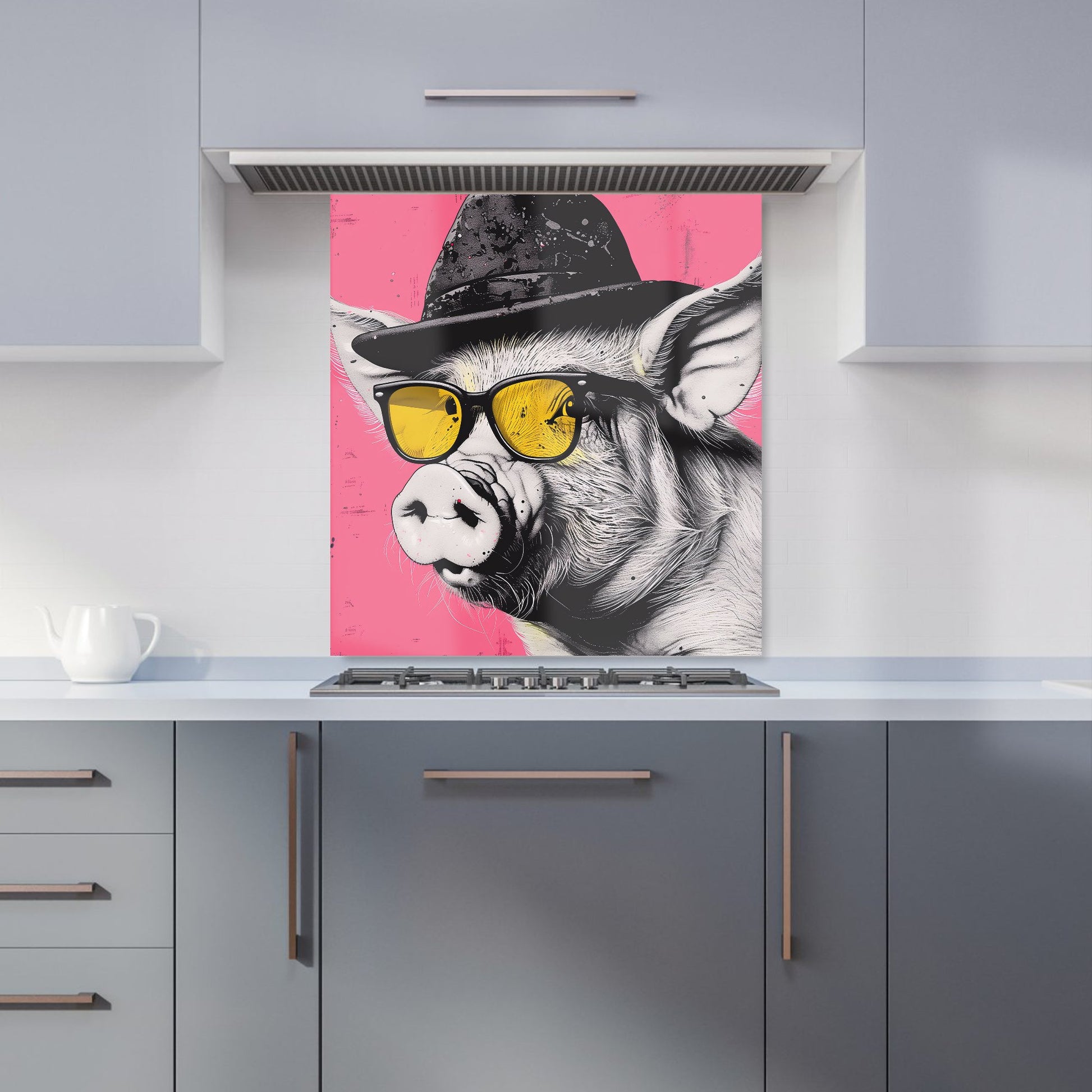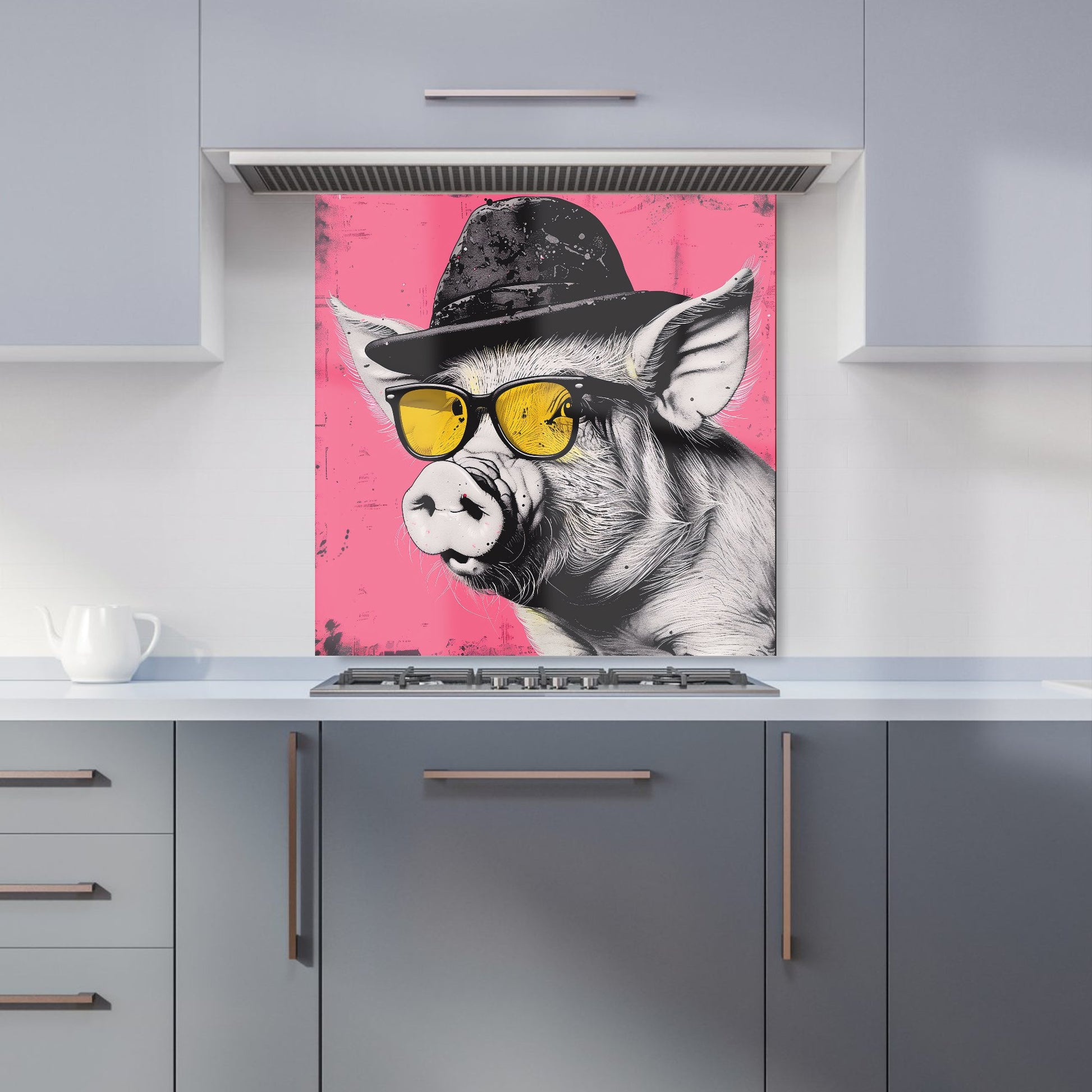 Pig In A Hat And Glasses Kitchen Splashback