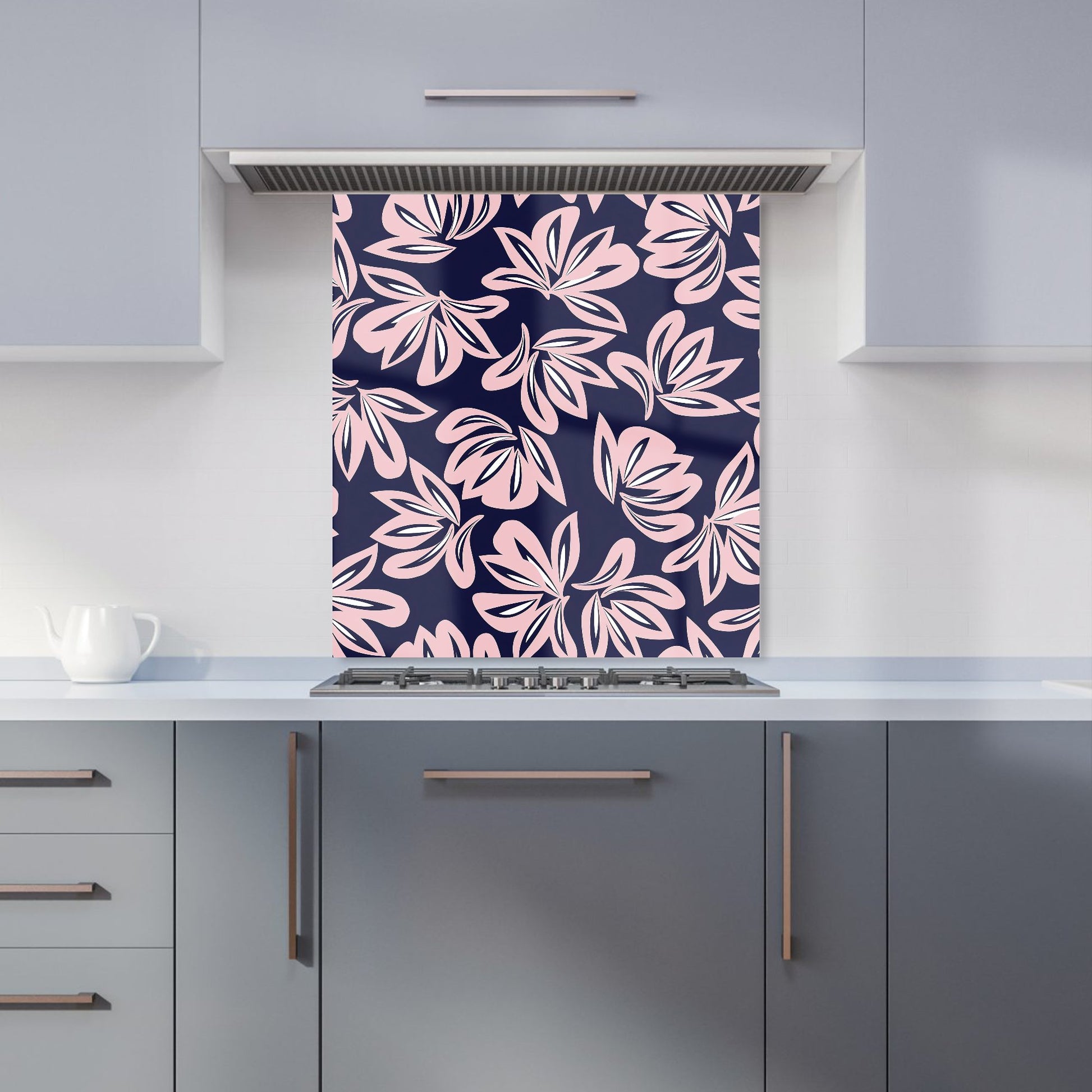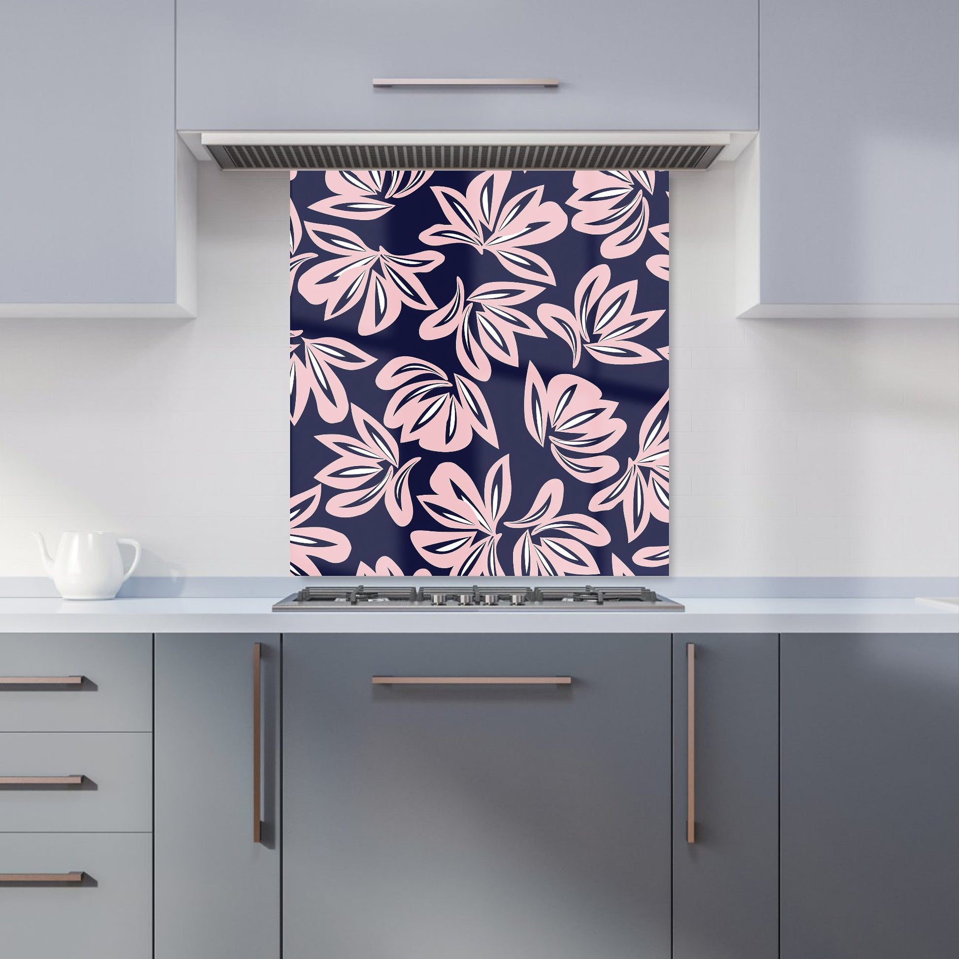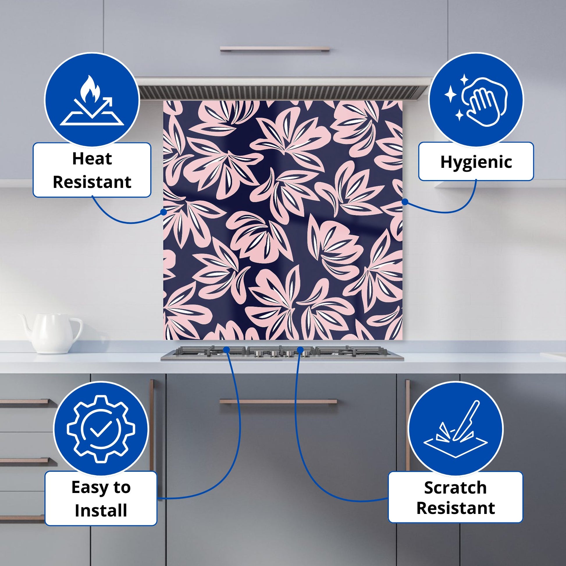 Pink Navy Floral Botanical Pattern Kitchen Splashback