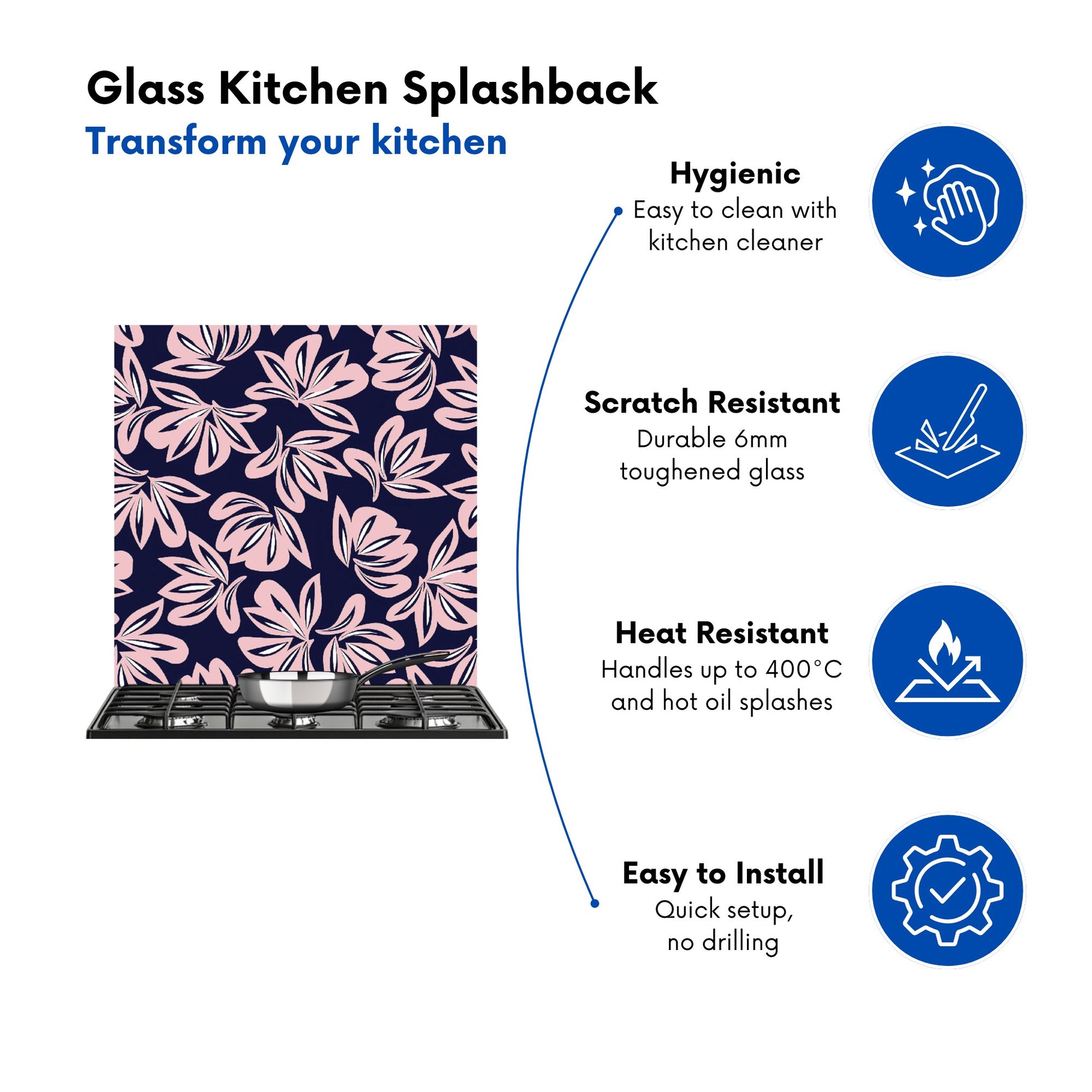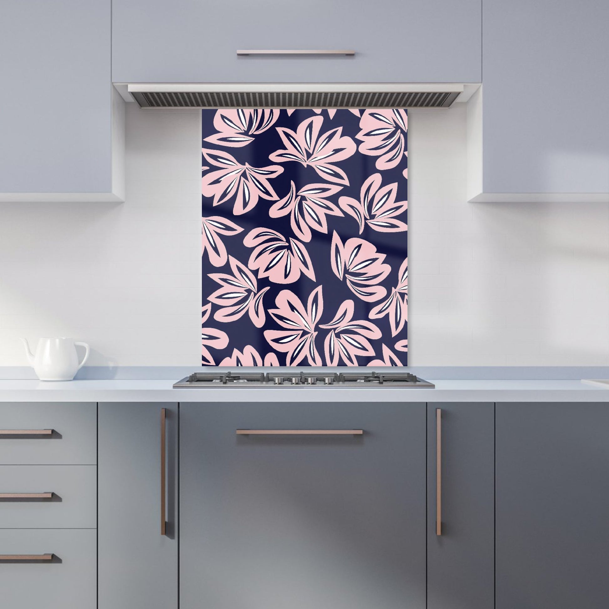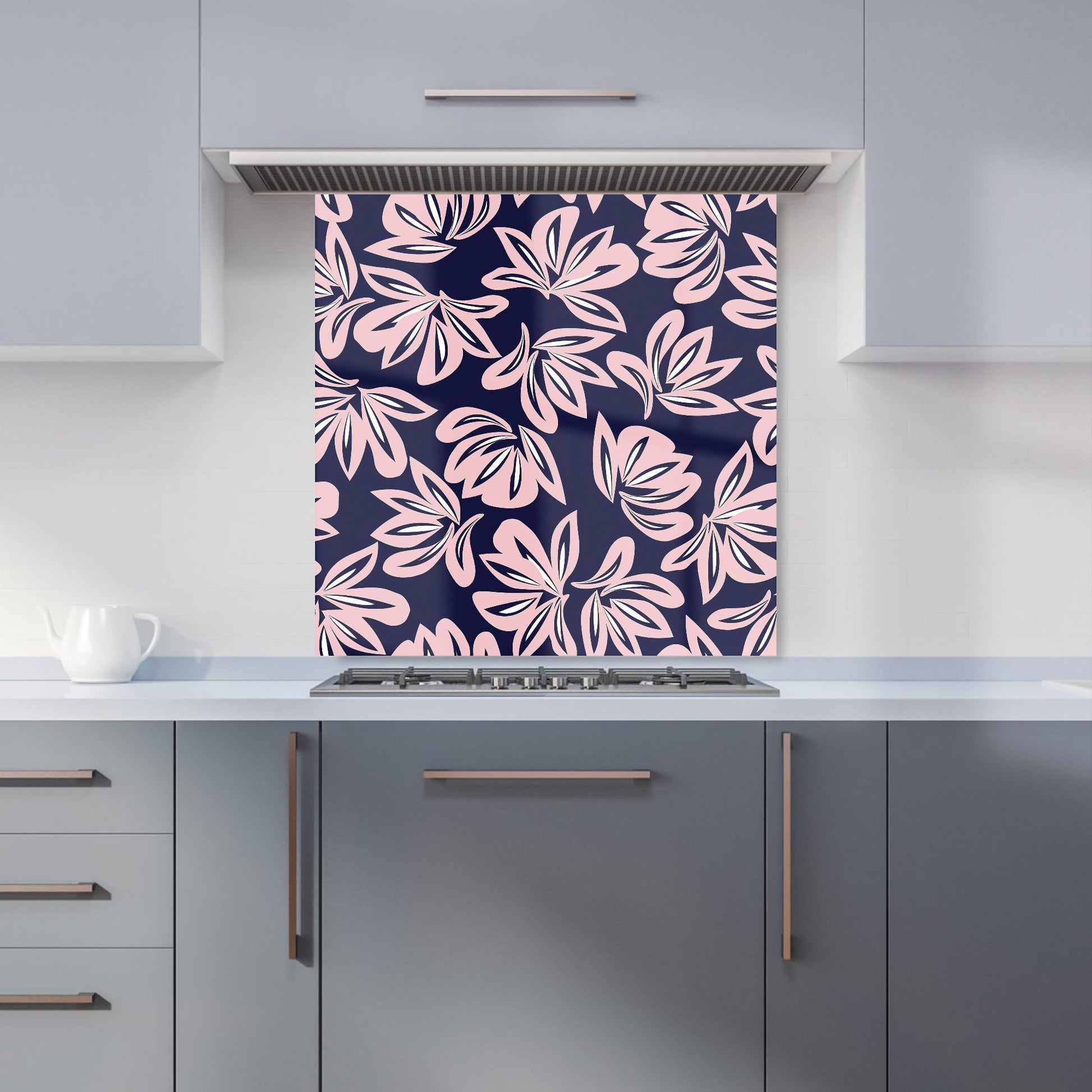 Pink Navy Floral Botanical Pattern Kitchen Splashback