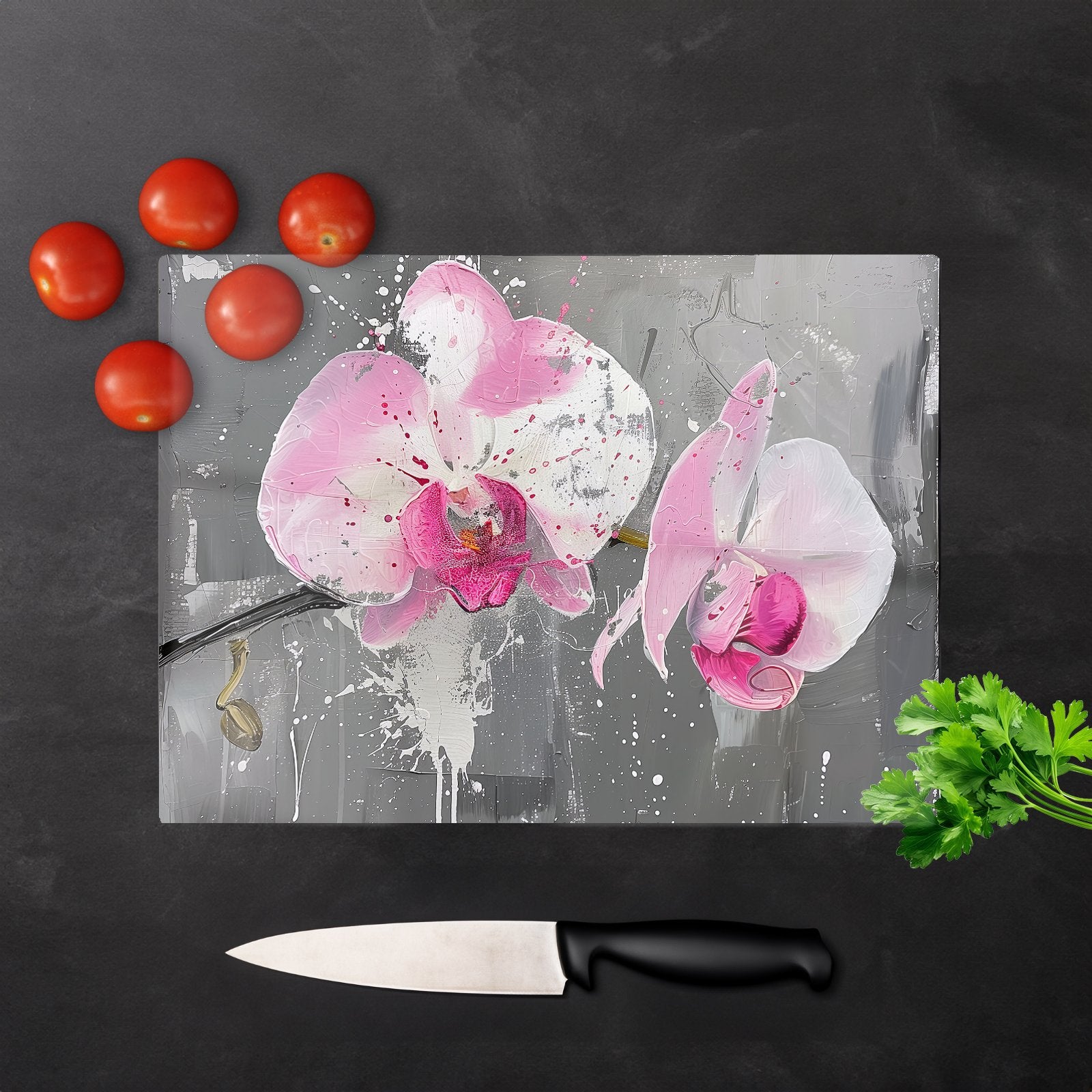 Pink Orchids Splashart Chopping Board