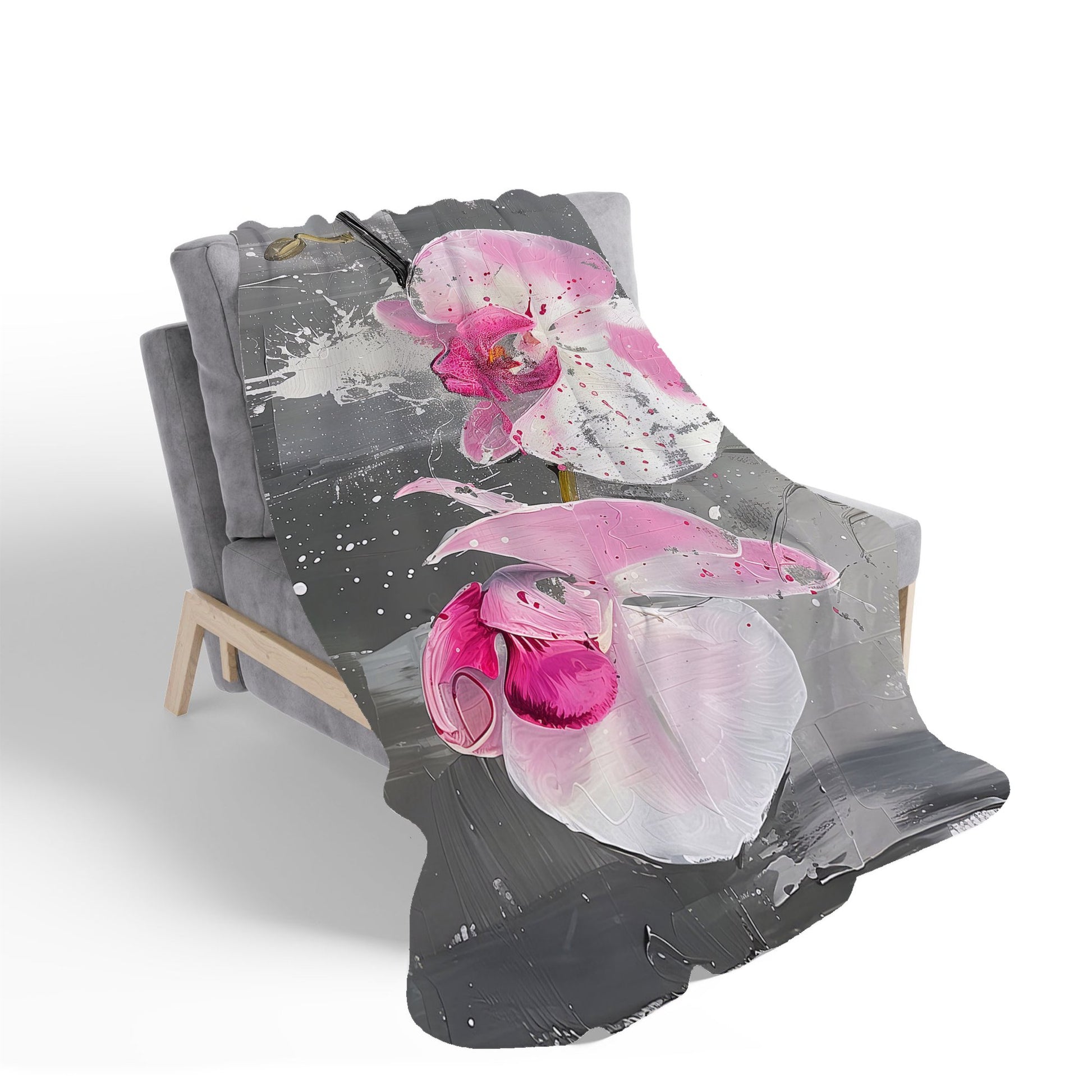 Pink Orchids Splashart Sherpa Blanket