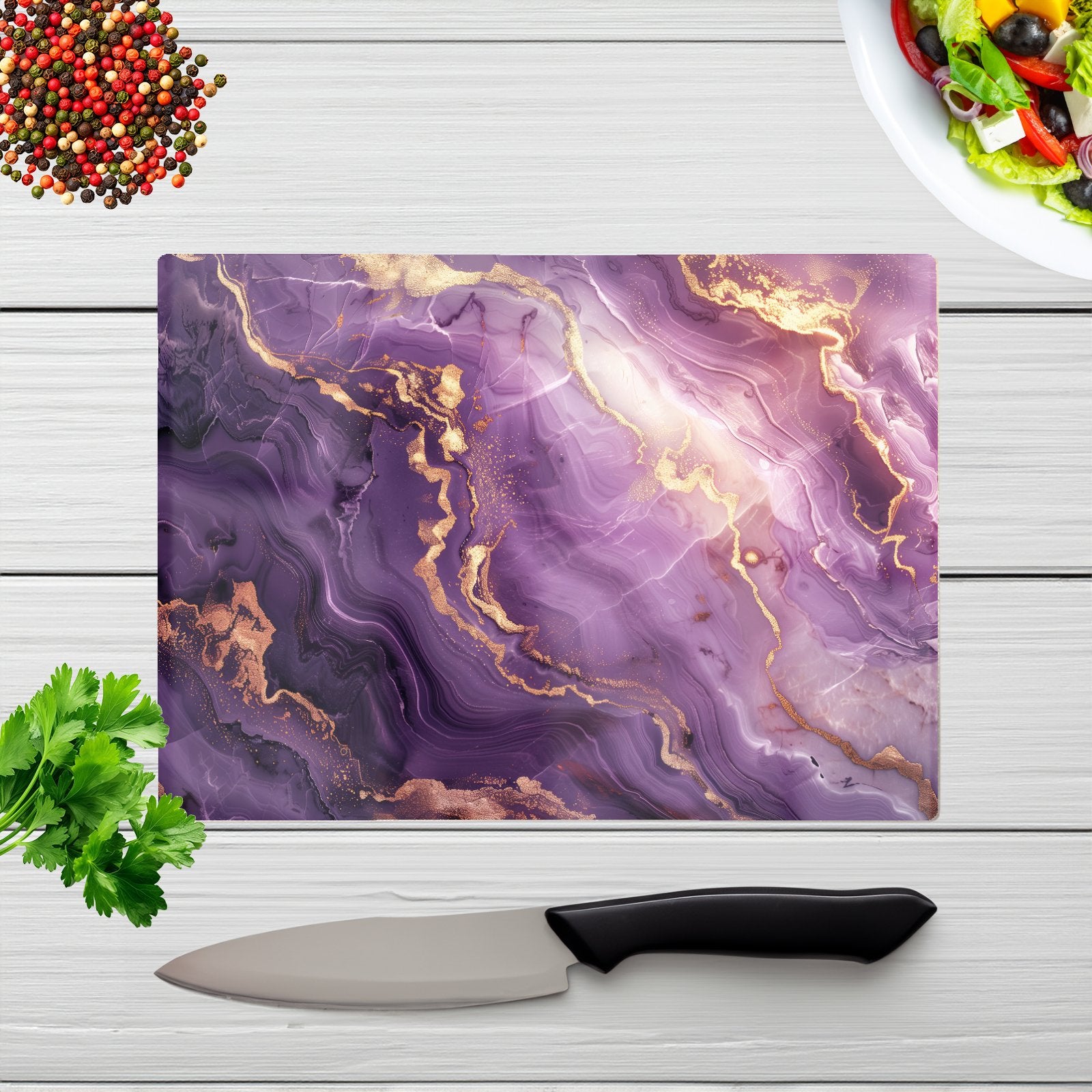 Purple And Gold Marble Effect Chopping Board