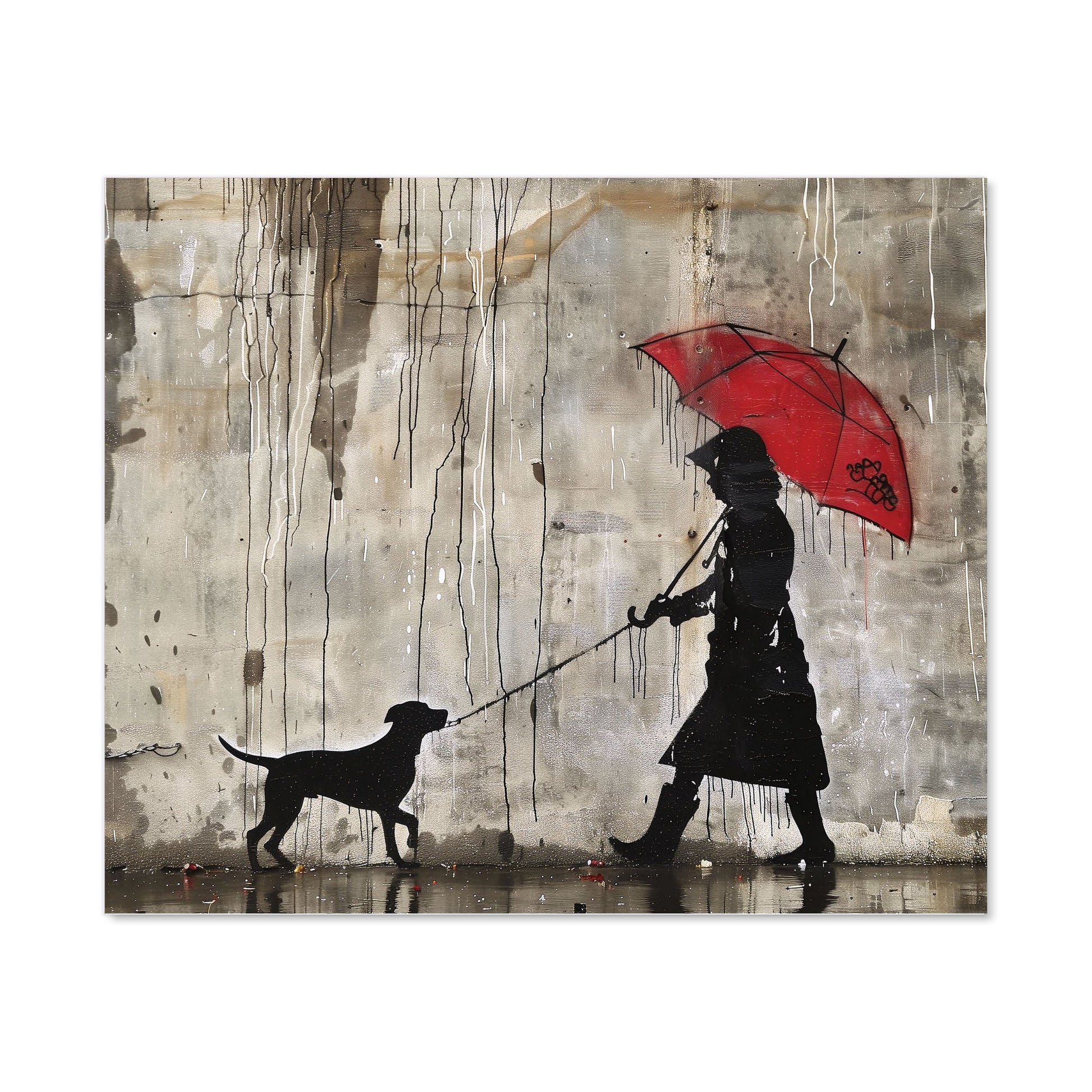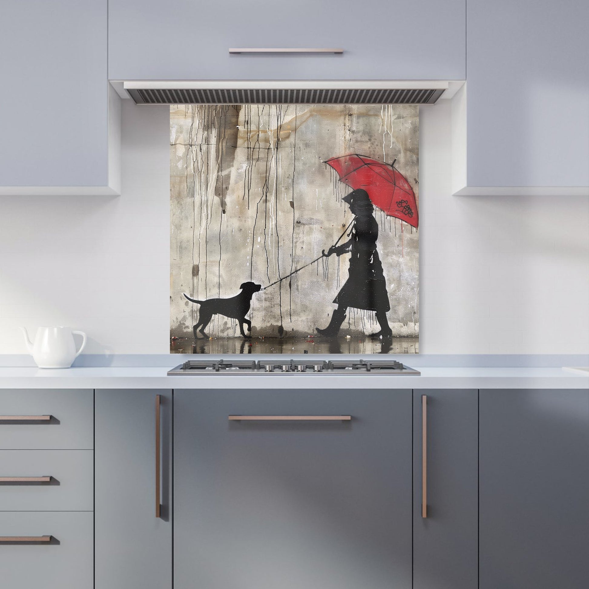 Rainy Day Walk with Red Umbrella Kitchen Splashback
