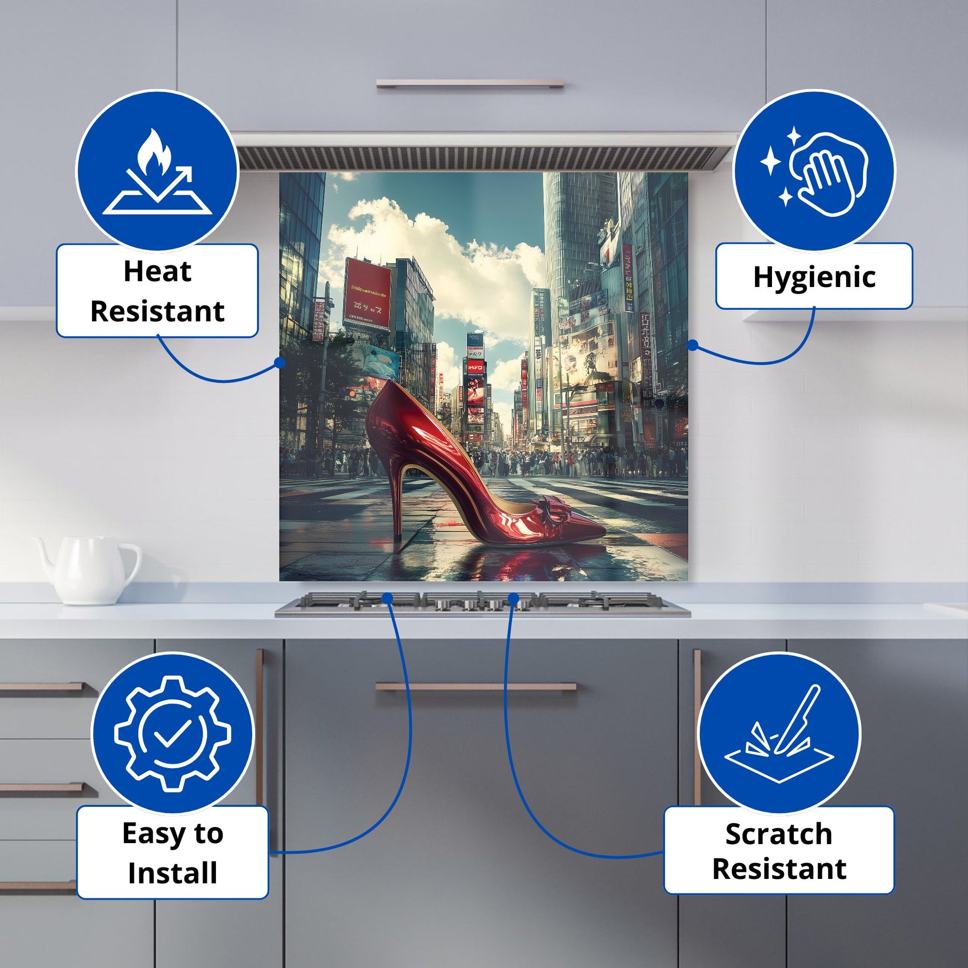 Red Stiletto in Urban Crosswalk Kitchen Splashback
