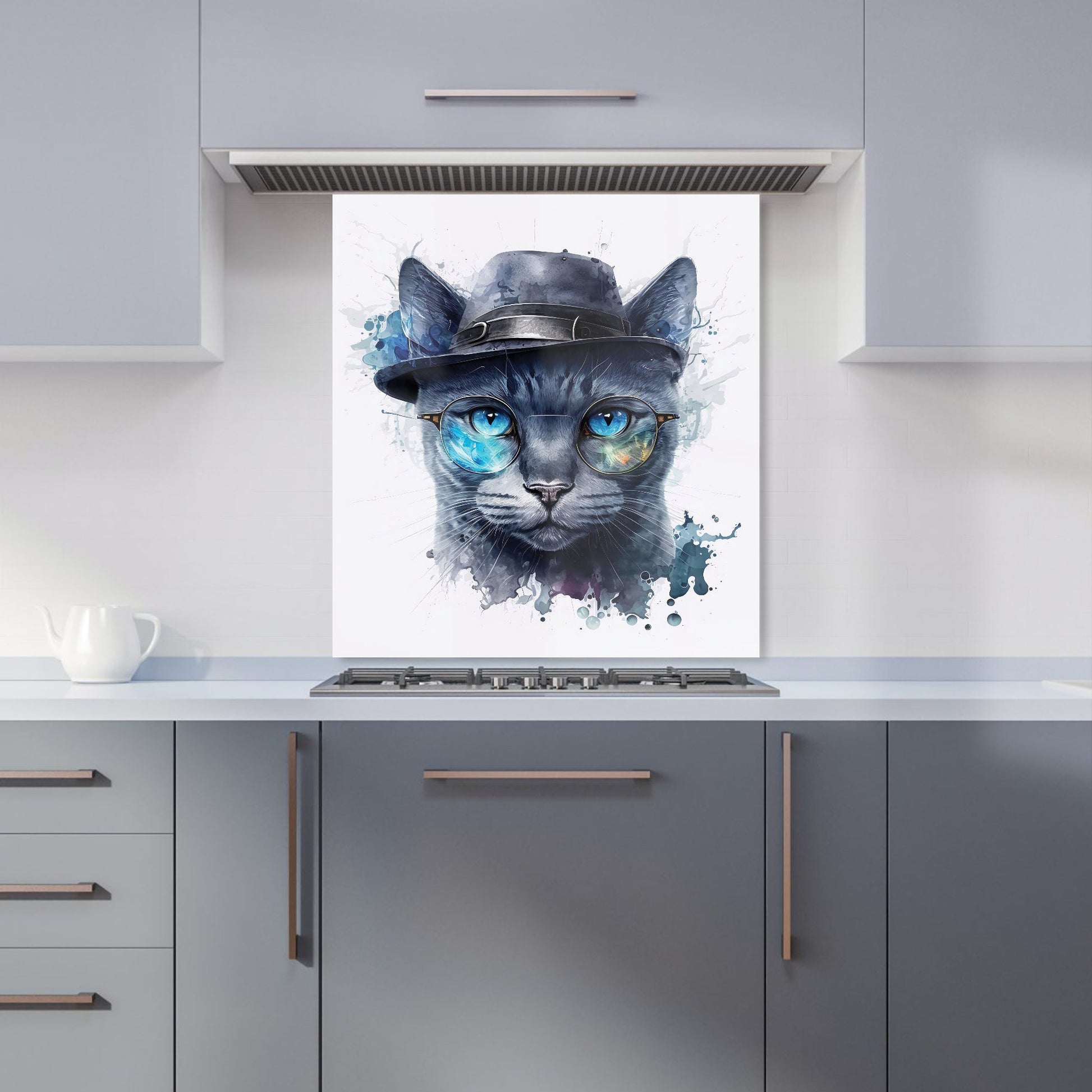 Russian Blue Cat With Glasses Splashart Kitchen Splashback