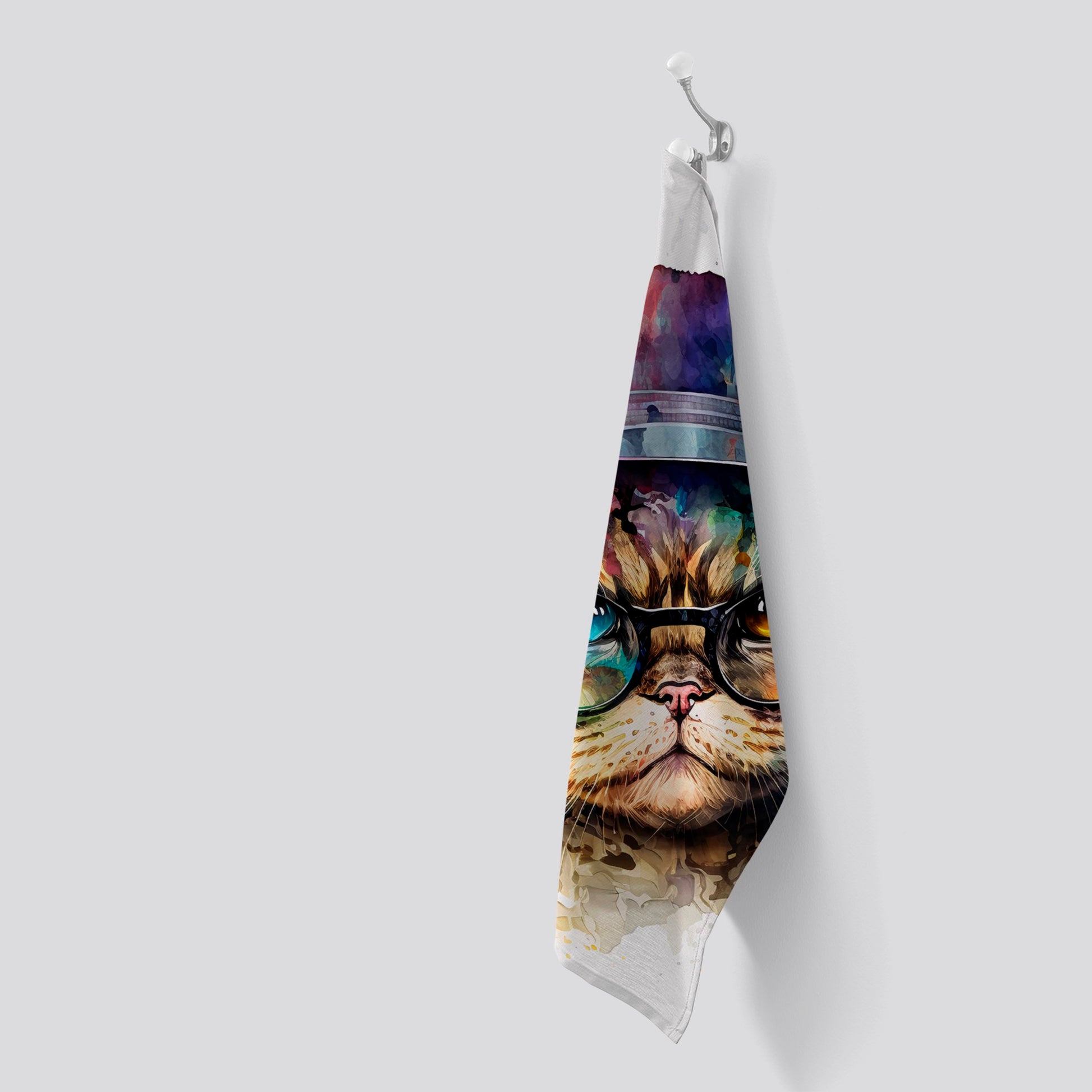 Shorthair Cat With Glasses Splashart Tea Towel