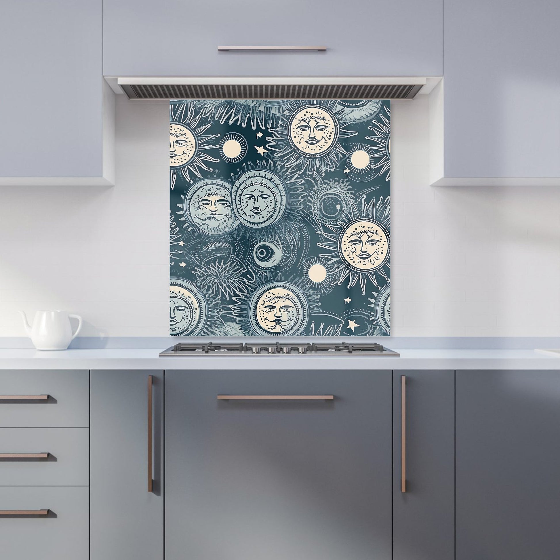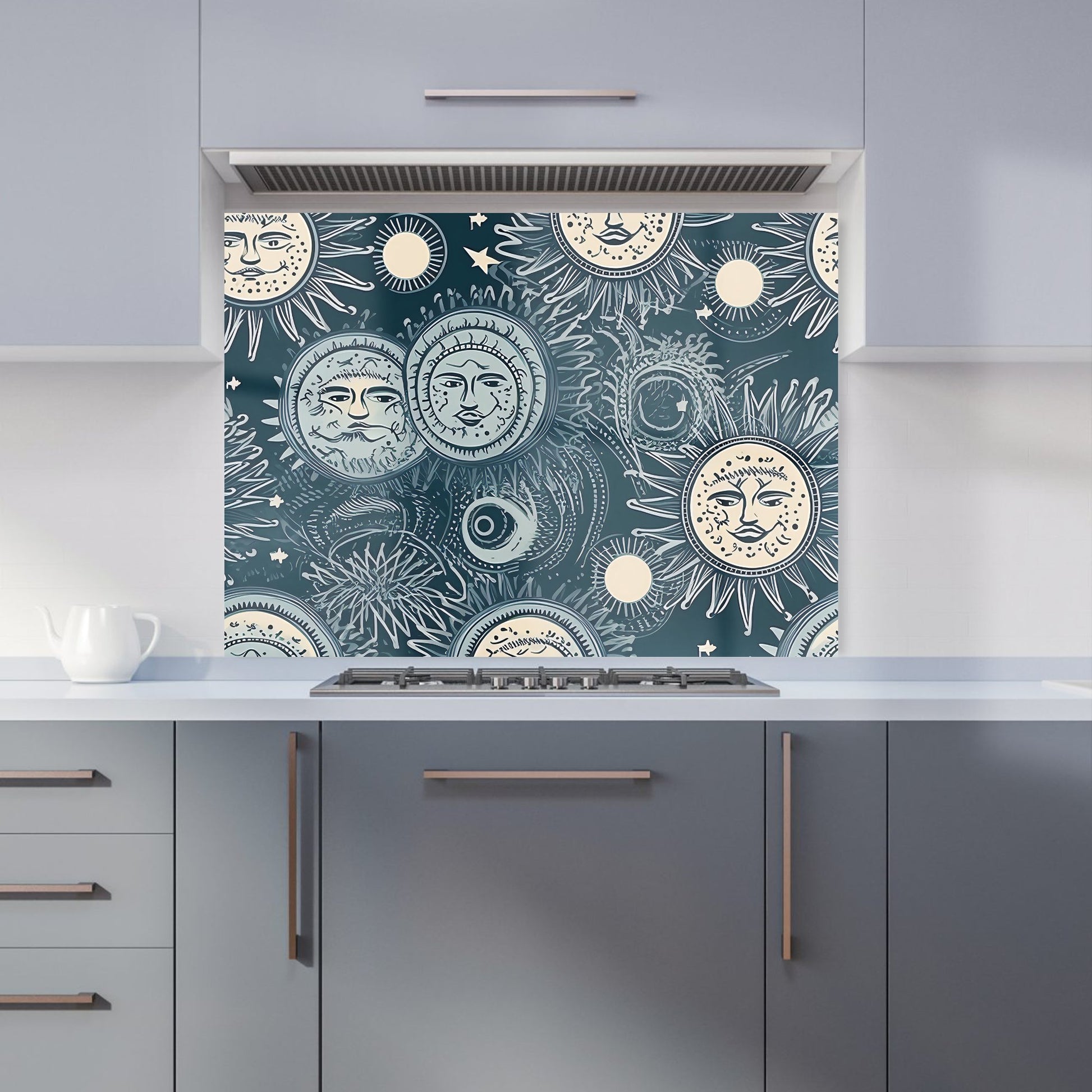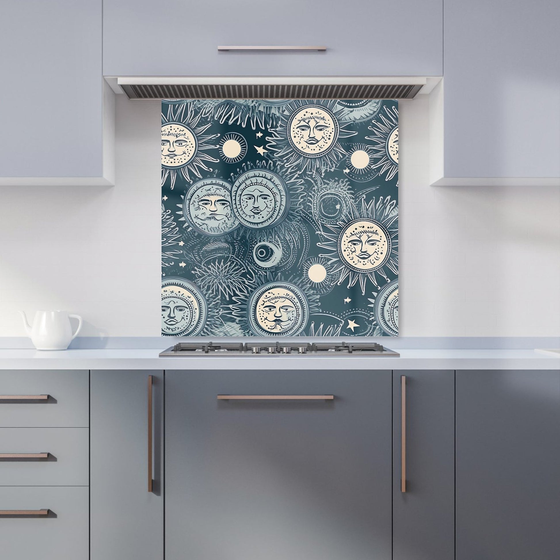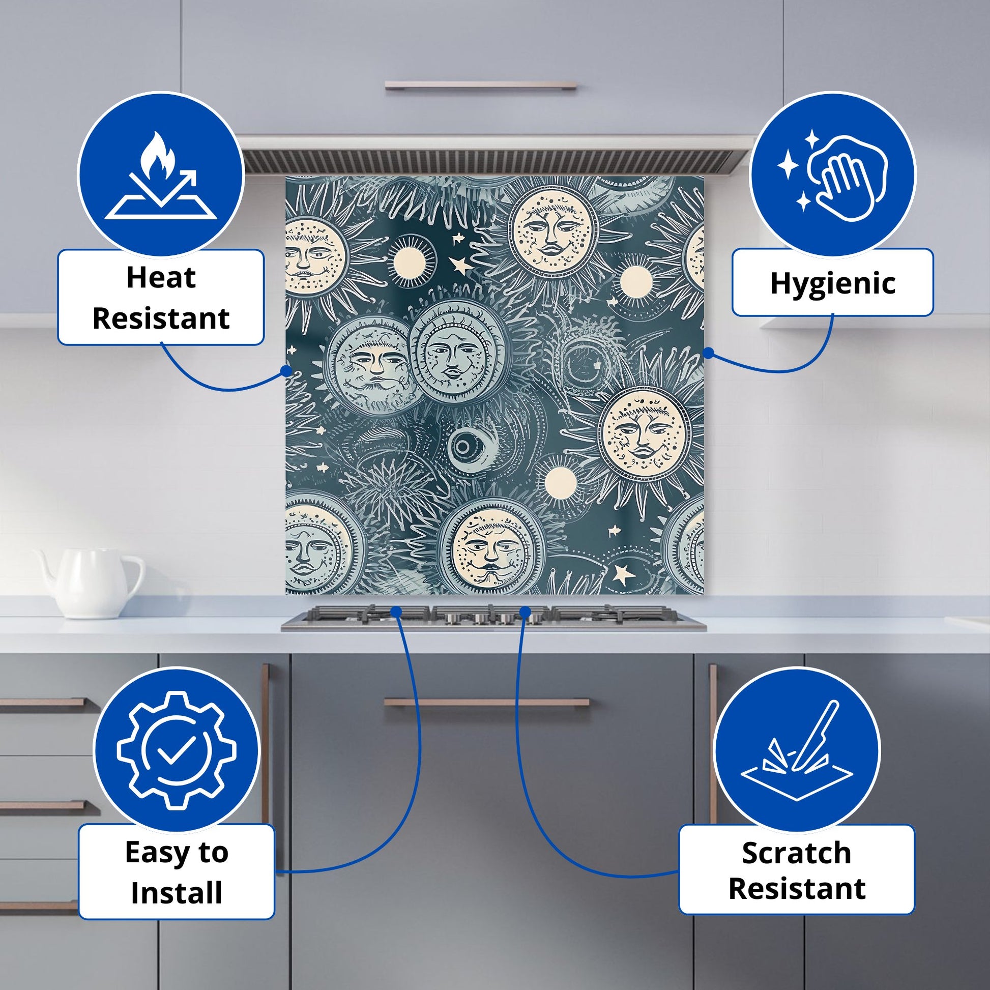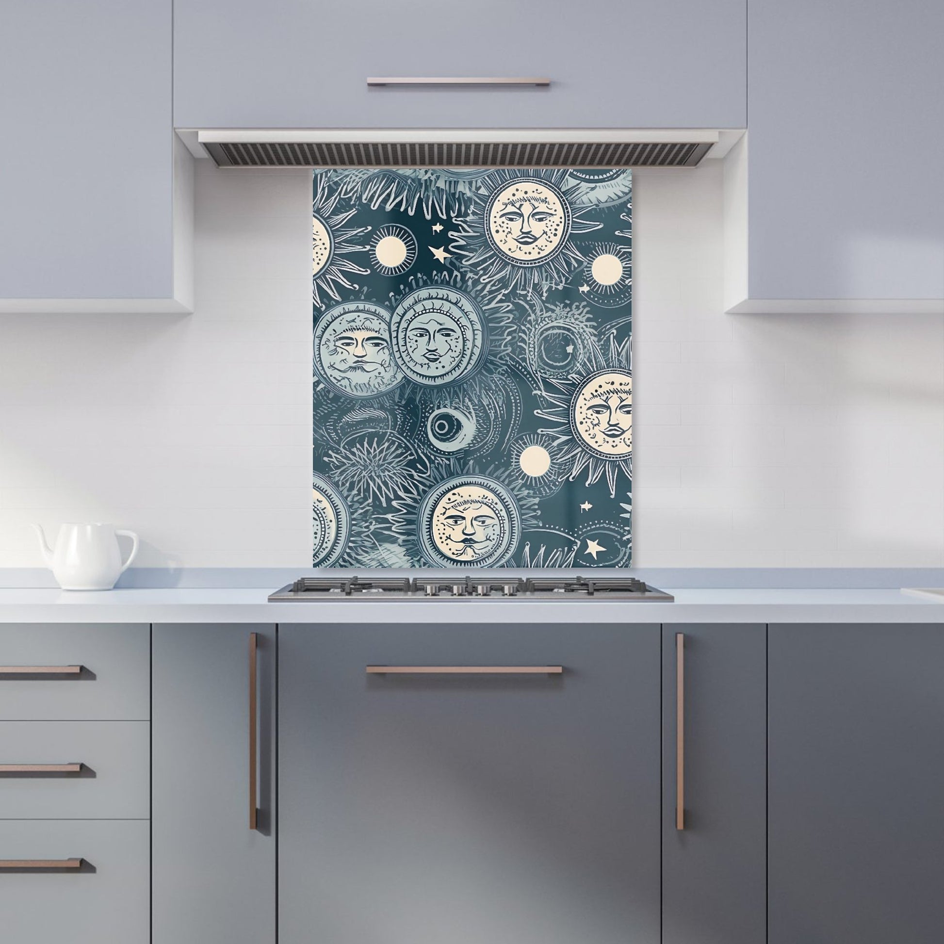 Silver Blue Moon and Stars Kitchen Splashback