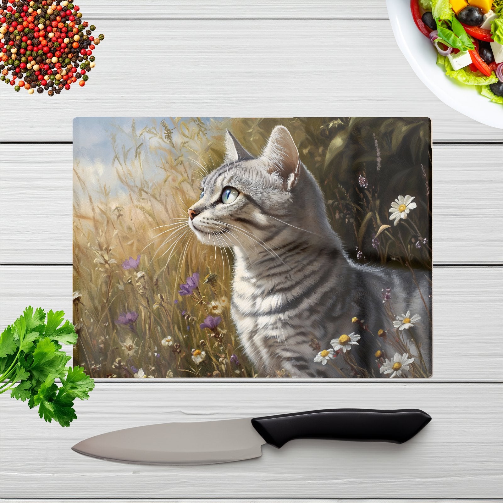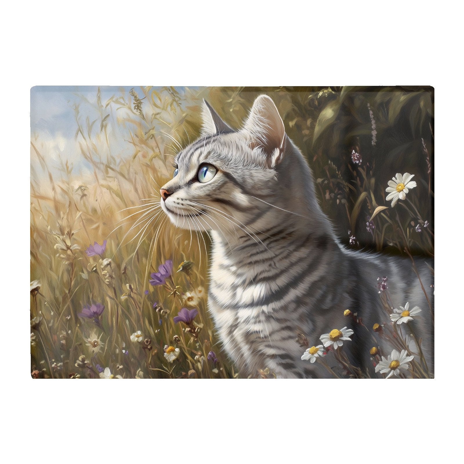 Silver Tabby Cat In A Spring Meadow Chopping Board
