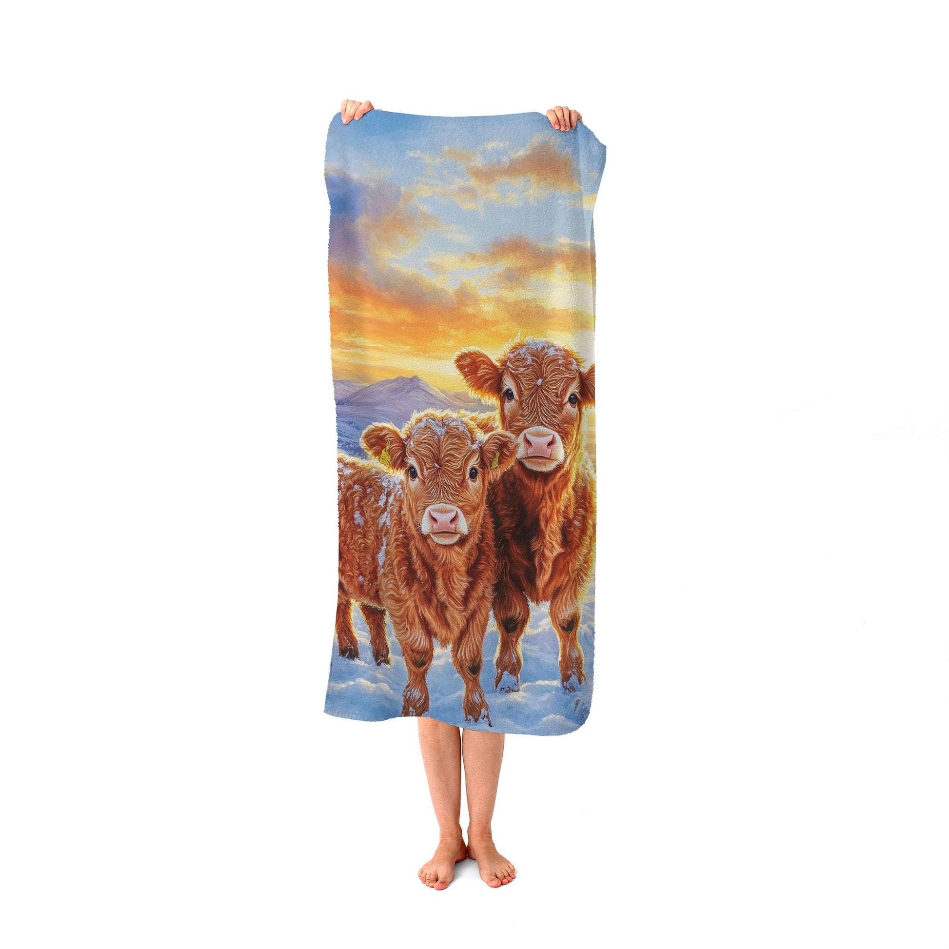 Snowy Baby Highland Cows Beach Towel