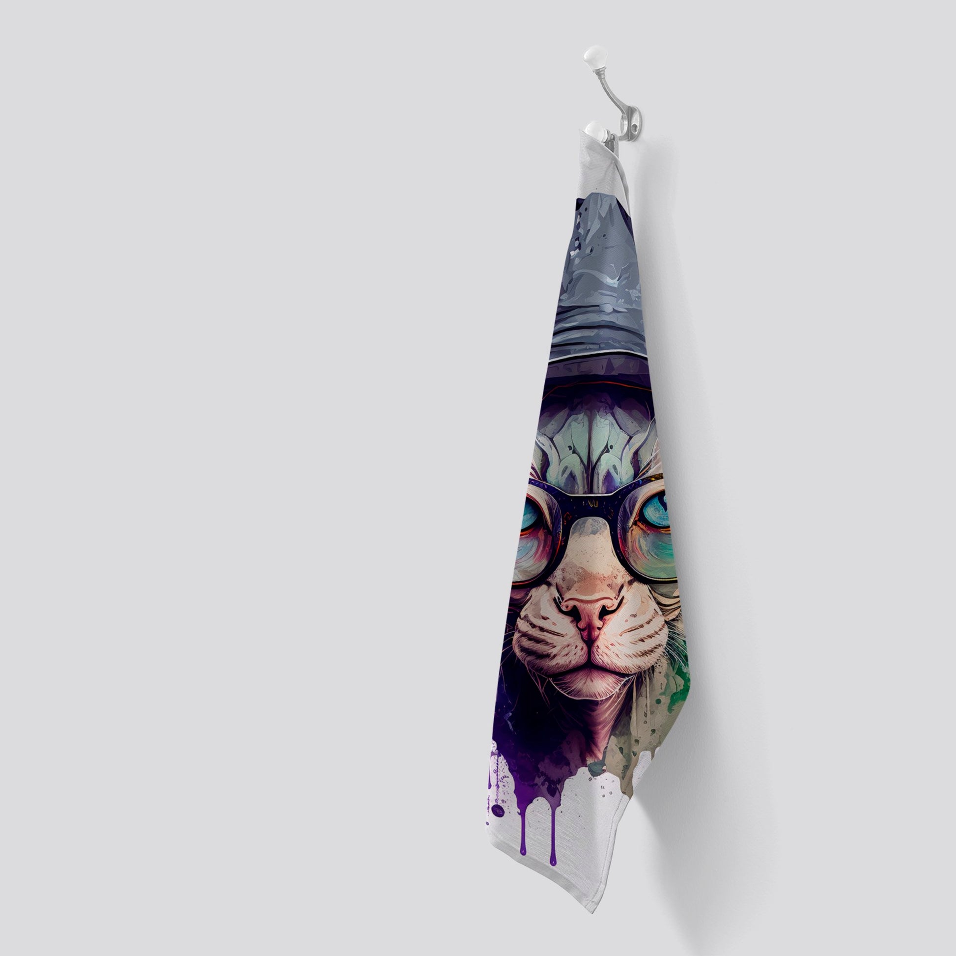 Sphynx Cat Face Glasses And Hat Splashart Tea Towel