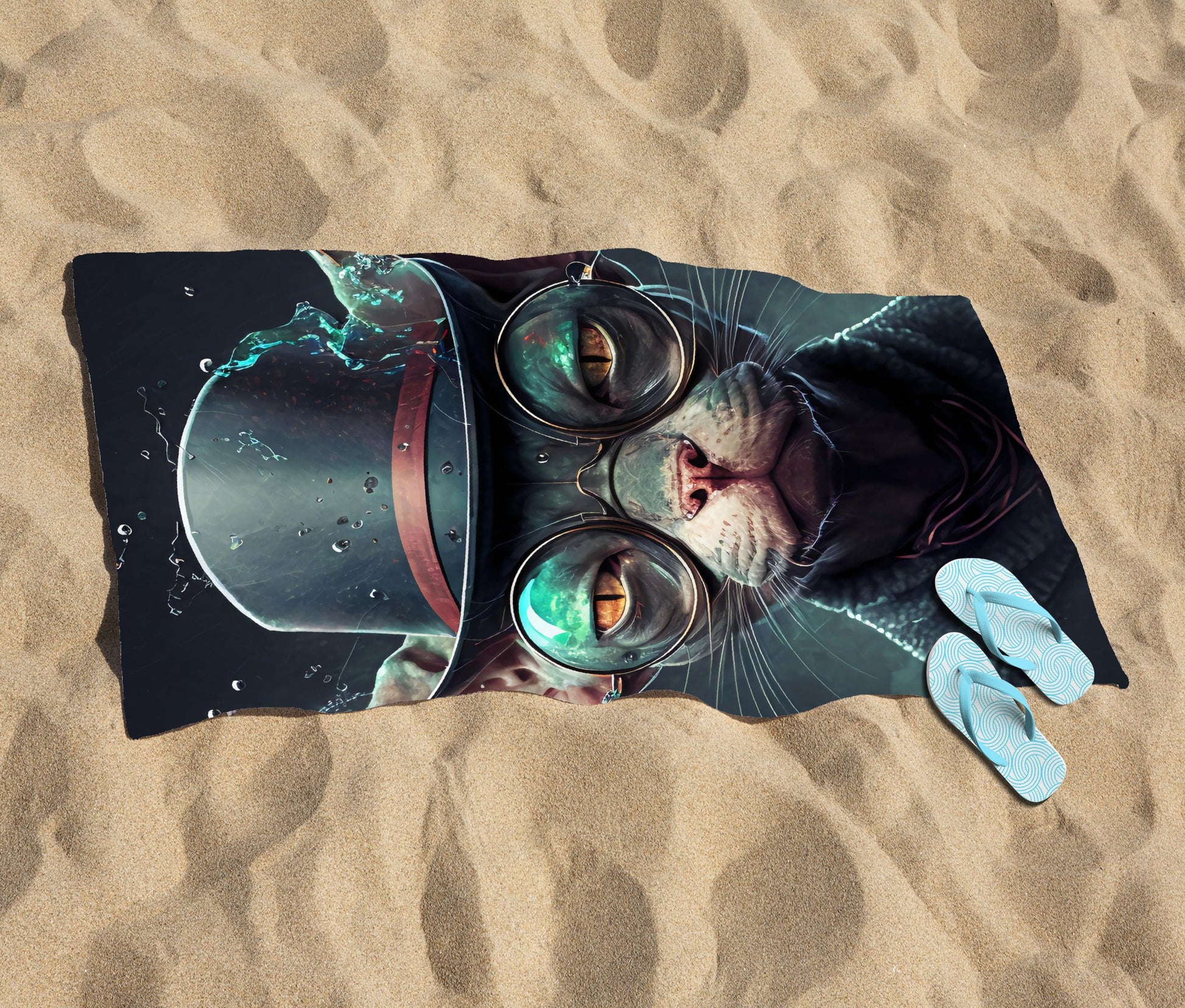 Sphynx Cat With Glases Splashart Beach Towel