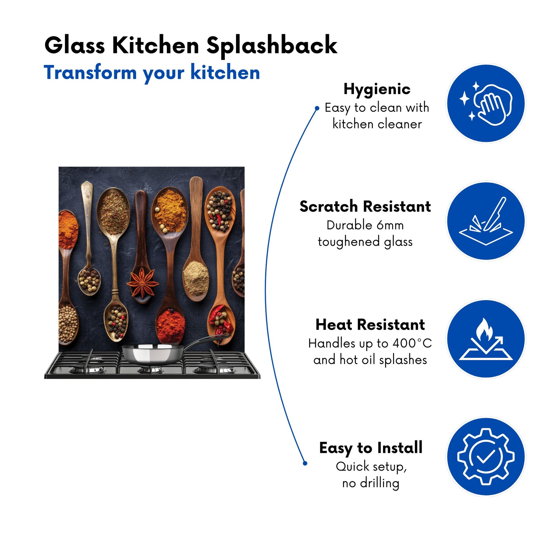 Enhance your kitchen with our stunning glass splashback. This high-quality addition boosts both functionality and style. The high-resolution print on toughened glass creates a striking focal point.