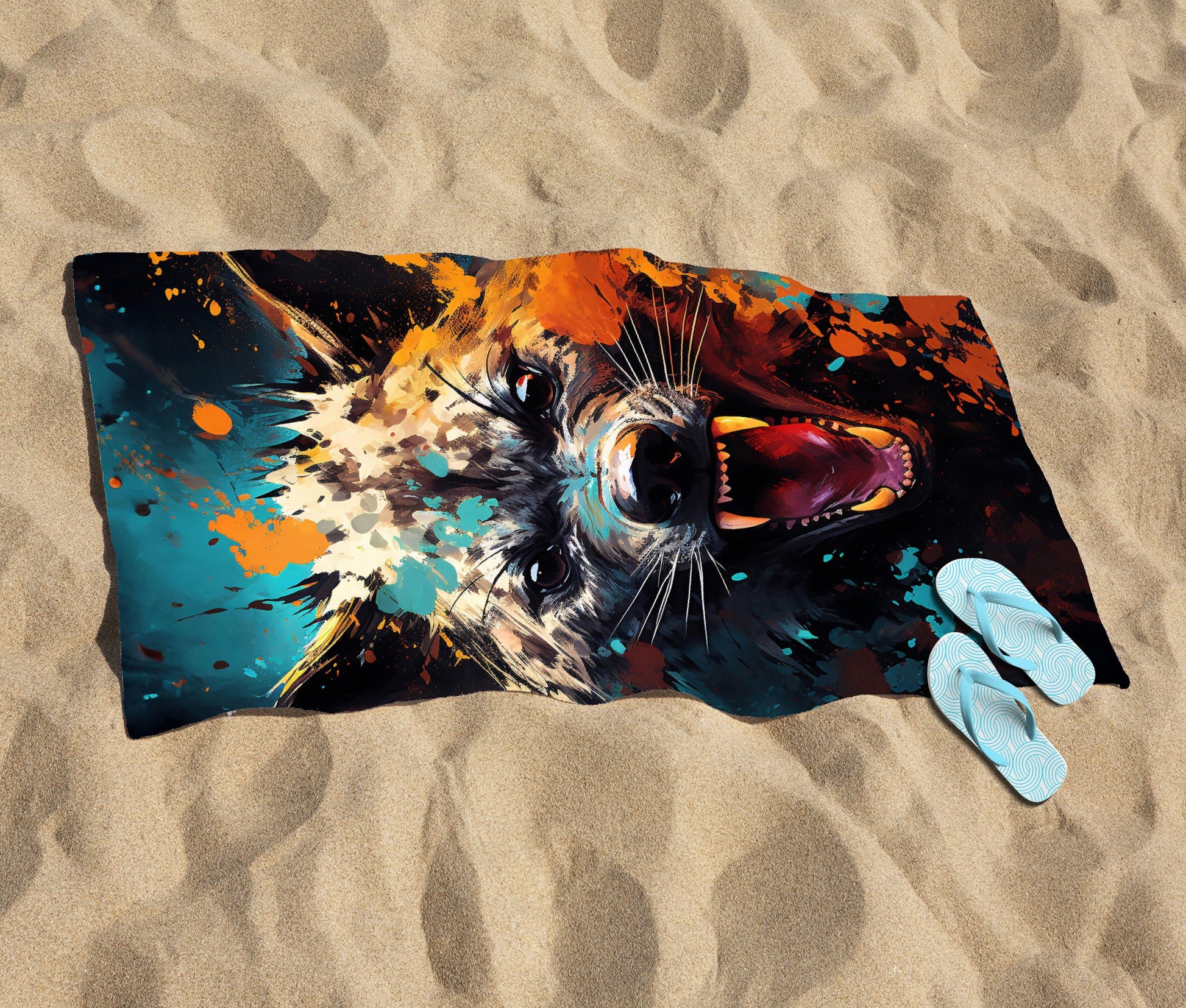 Splashart Angry Hyena Face Beach Towel