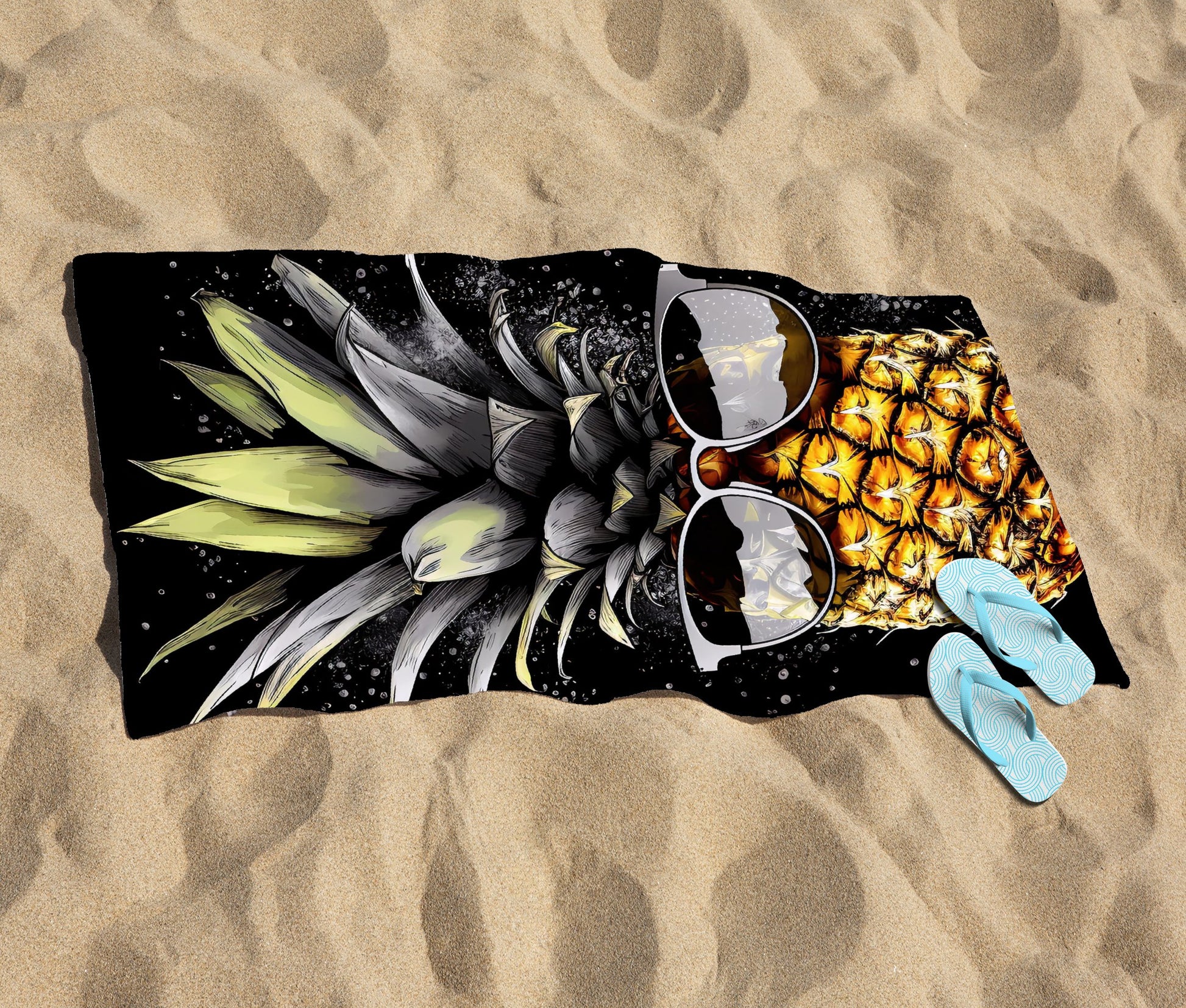Splashart Pineapple In Glasses Beach Towel
