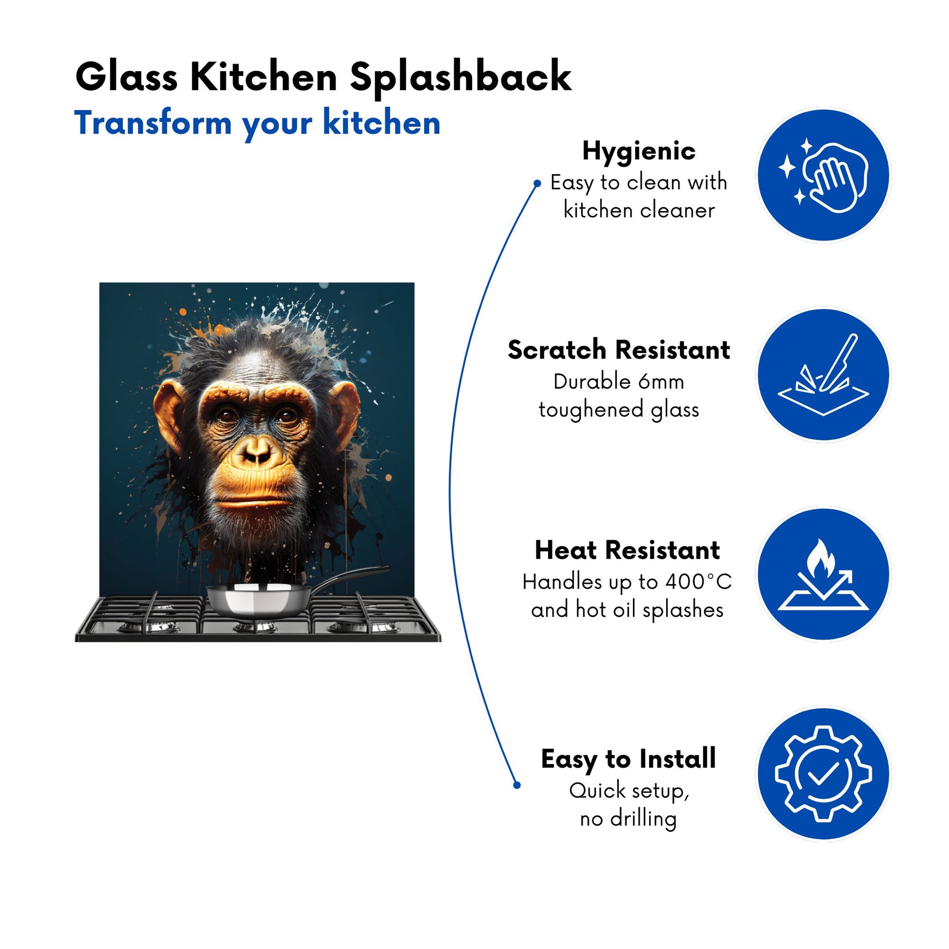 Splashart Realistic Monkey Face Kitchen Splashback