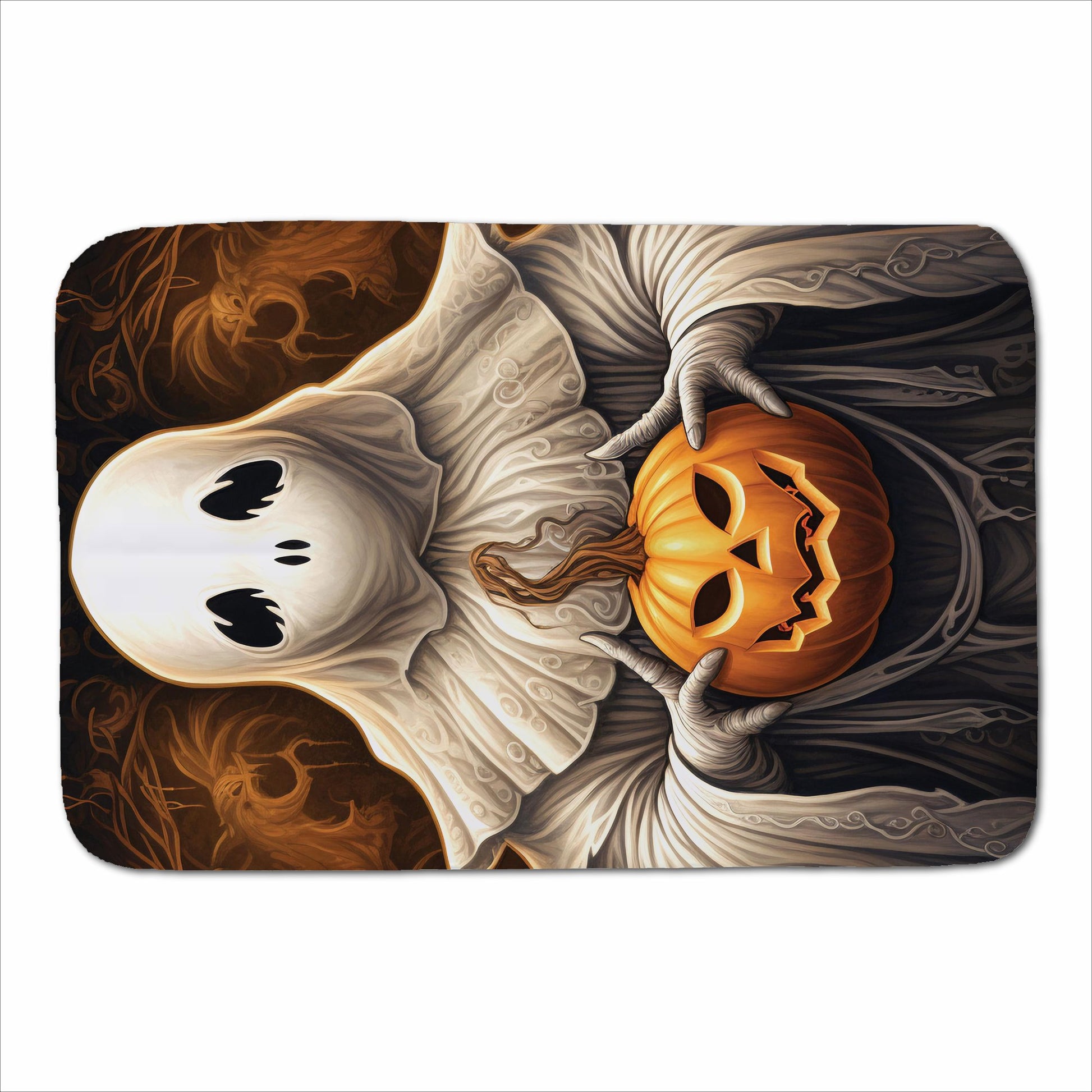 Spooky White Ghost Holding Pumpkin Sherpa Blanket