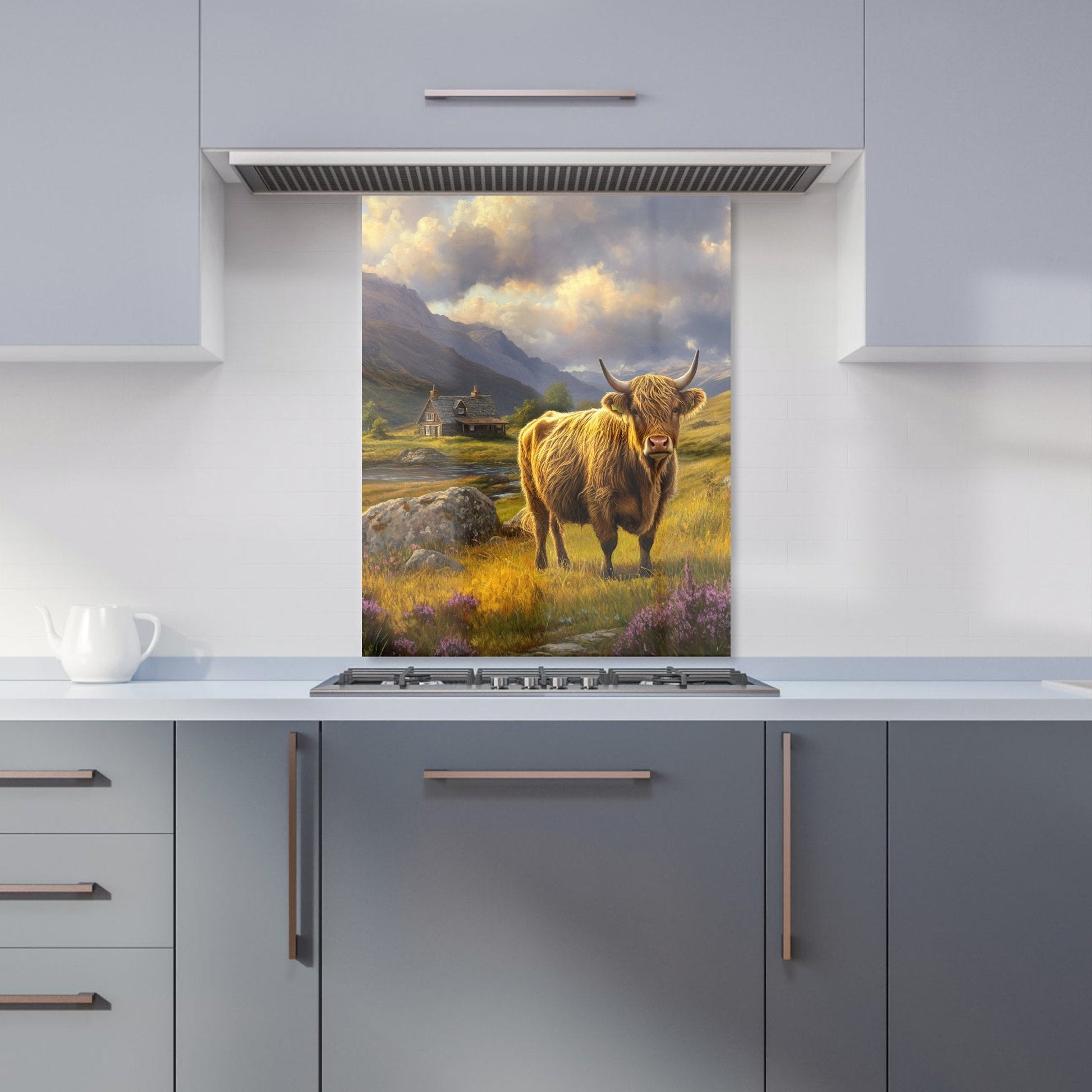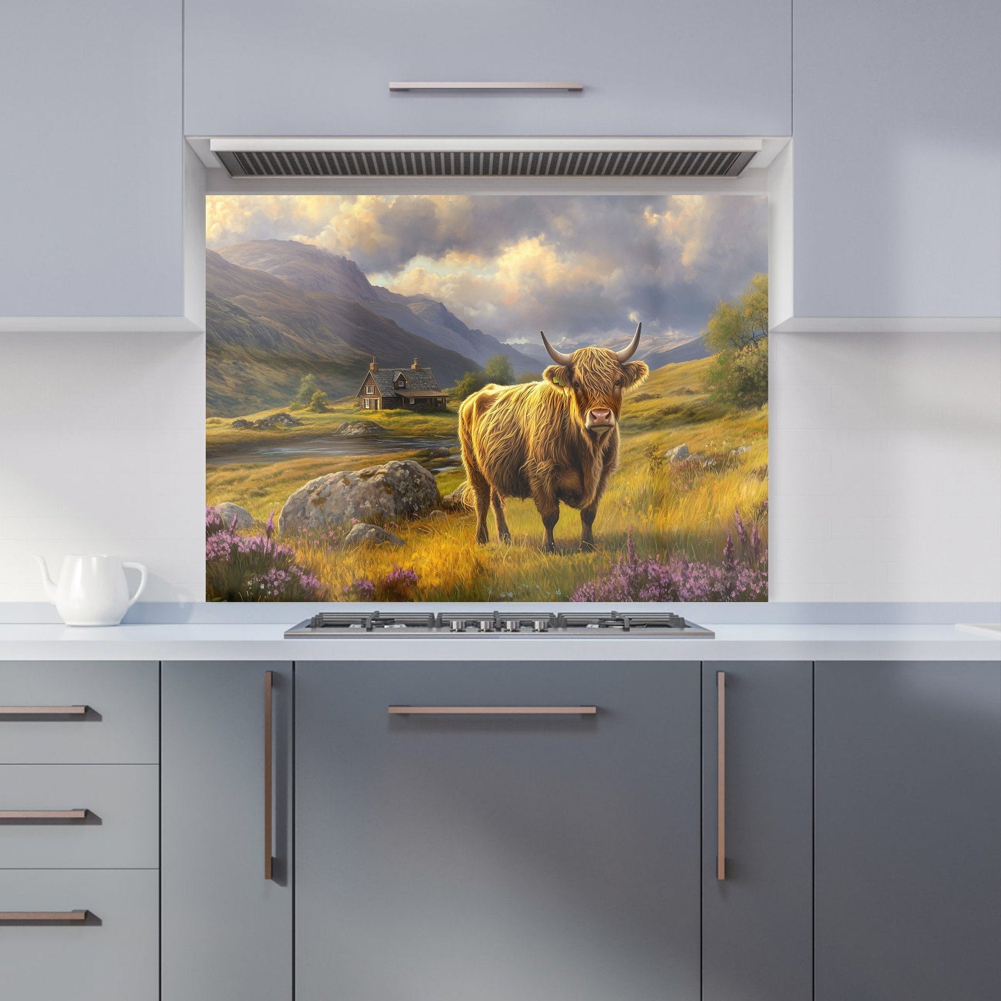 Springtime Highland Cow Kitchen Splashback