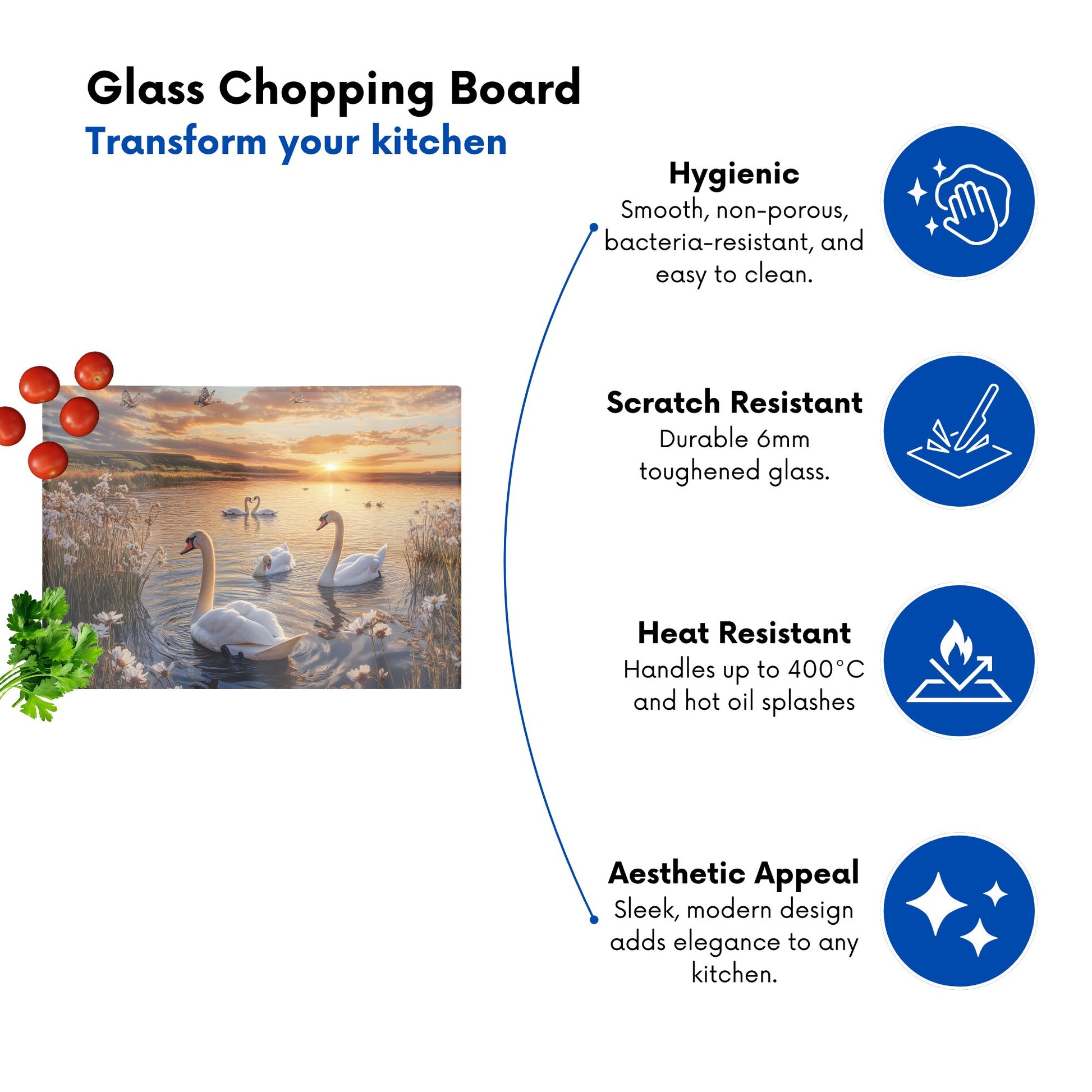 Swans At Sunset In A Beautiful Lake Chopping Board