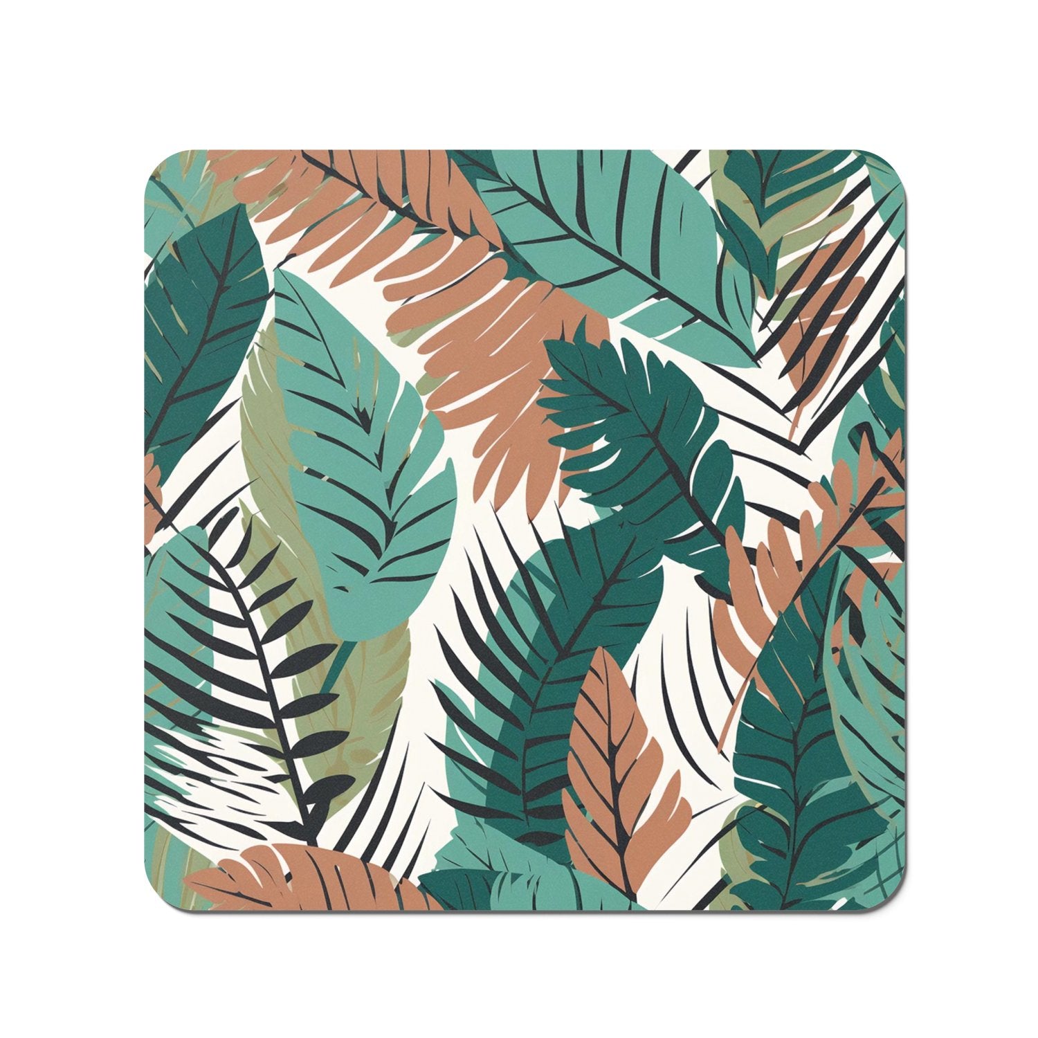 Tropical Floral Leaves Green Brown Coasters