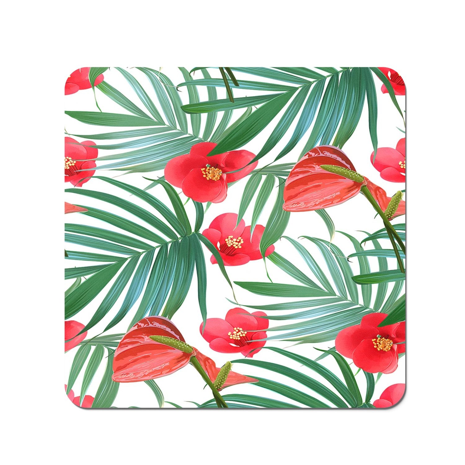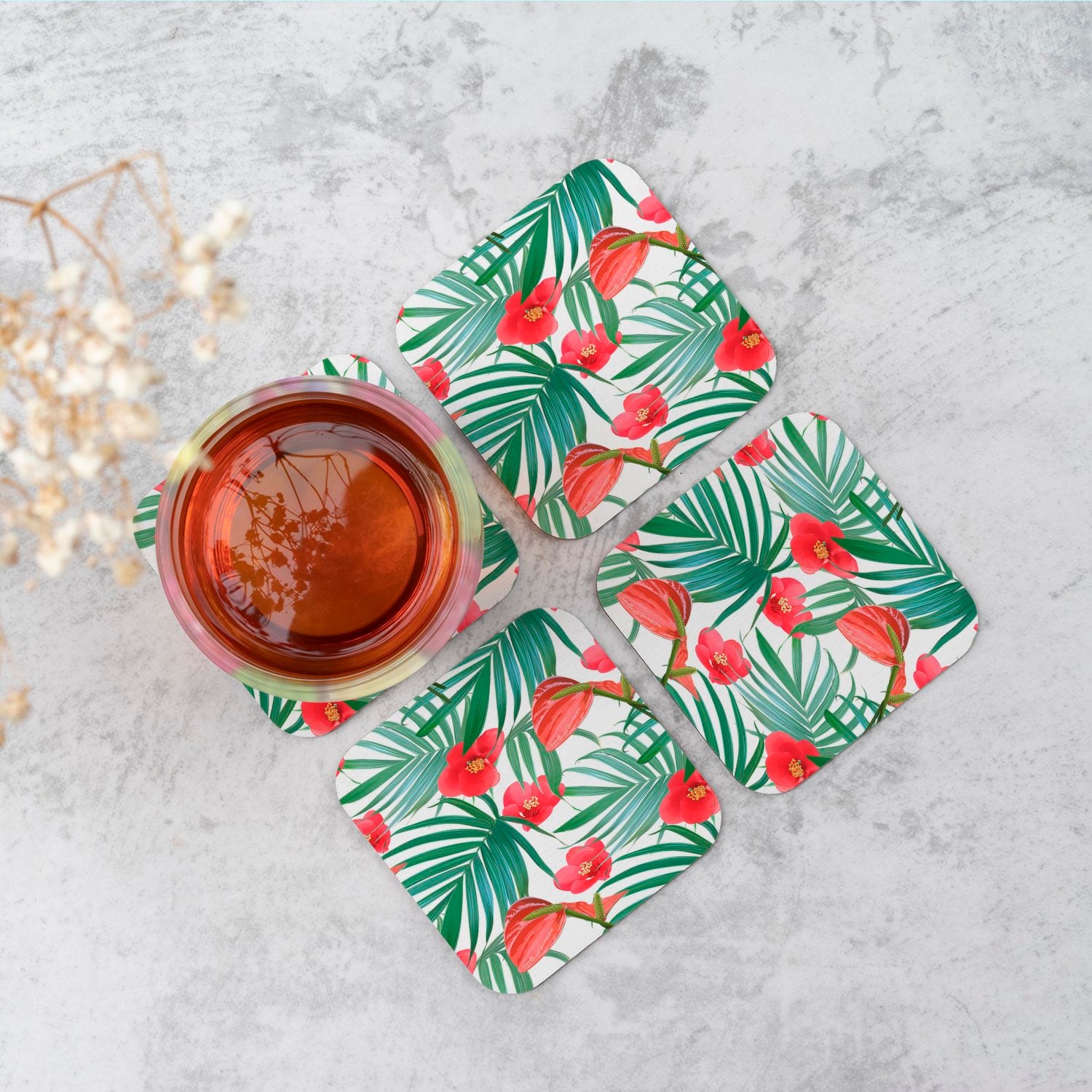 Tropical Flowers And Palm Leaves Hawaiian Coasters