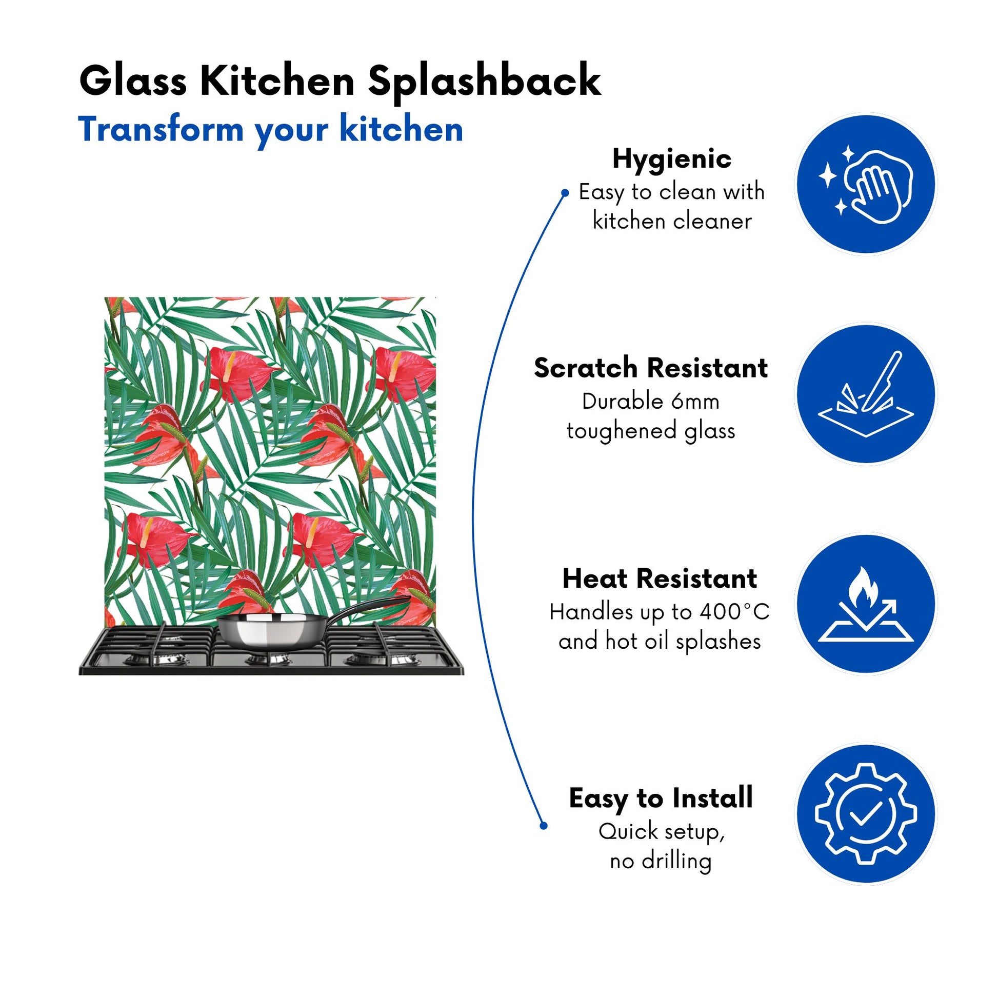 Durable and easy to clean, it's perfect for the kitchen. Whether renovating or updating your home’s look, our Premium 6mm Glass Kitchen Splashback is a stylish choice that makes a lasting impression. Upgrade your kitchen décor today for the perfect mix of beauty and practicality.