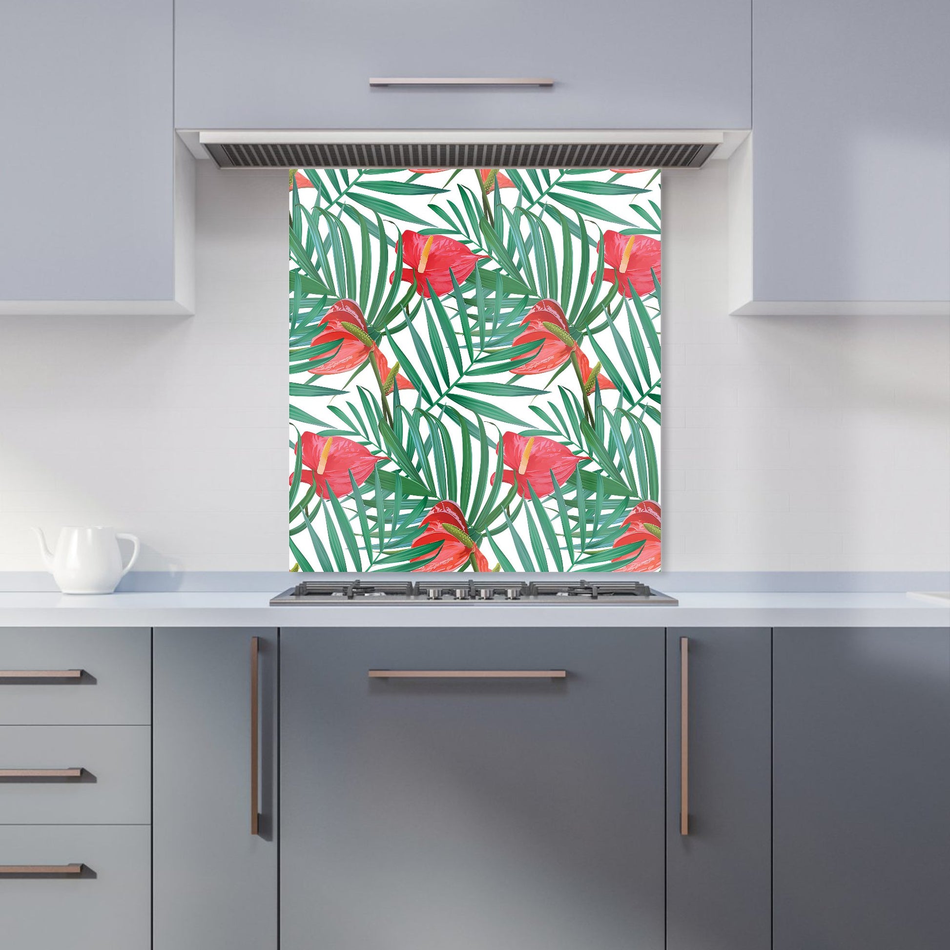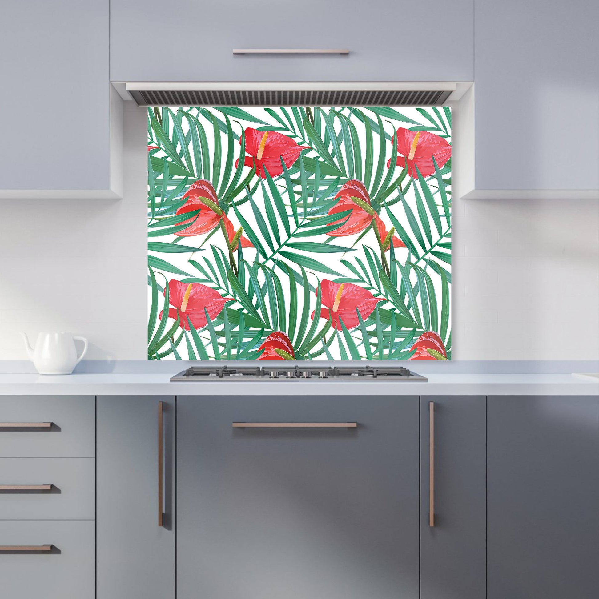 Tropical Flowers And Palm Leaves Kitchen Splashback