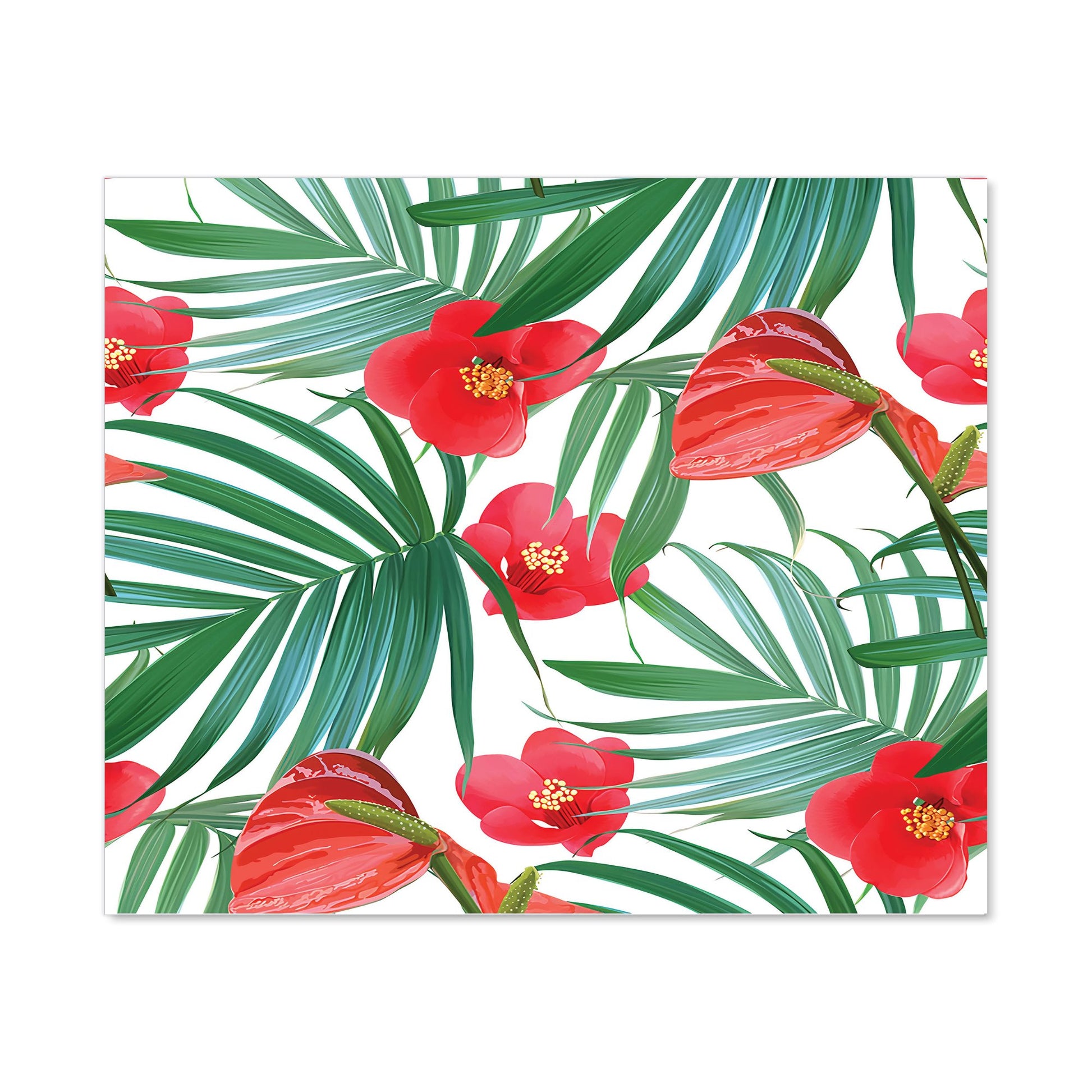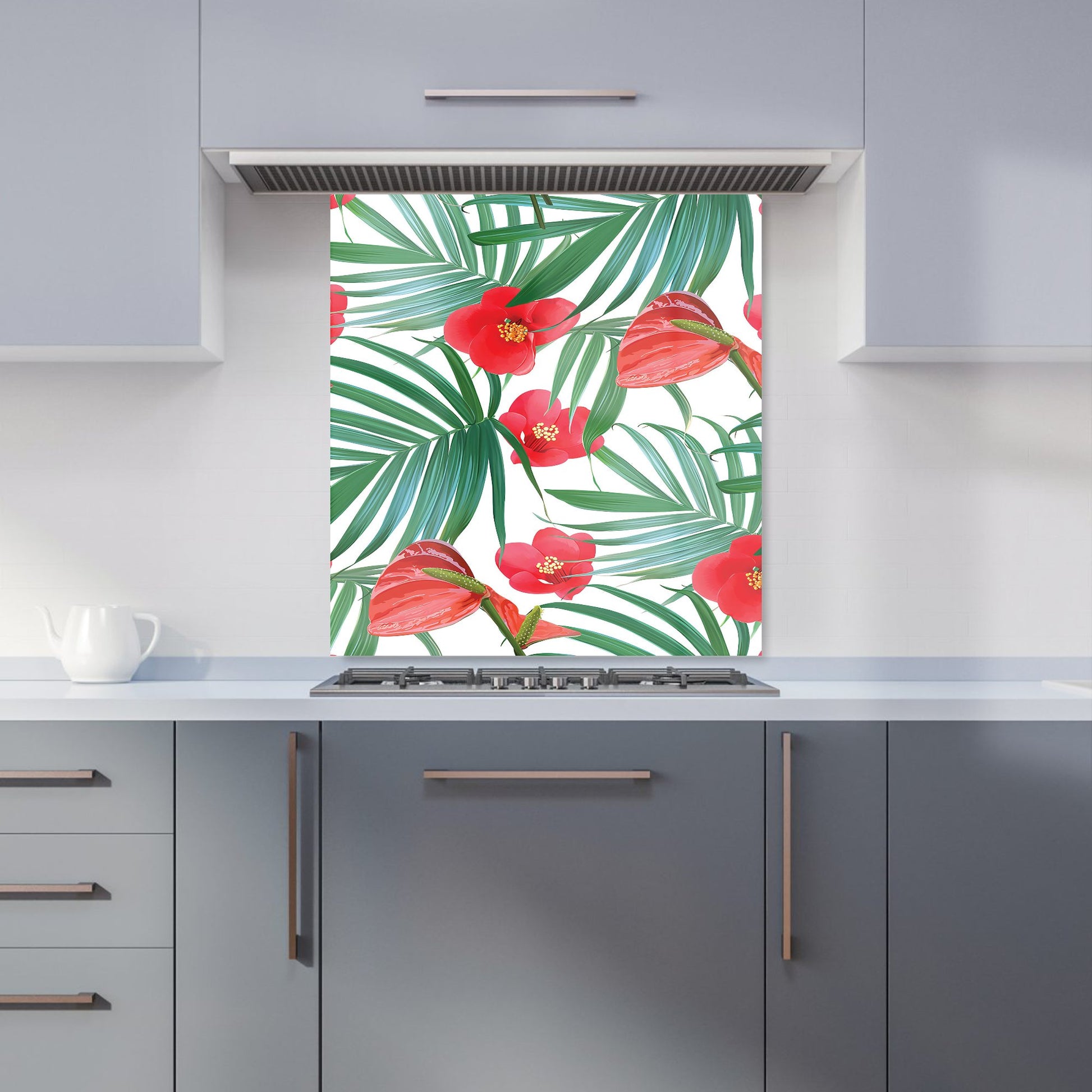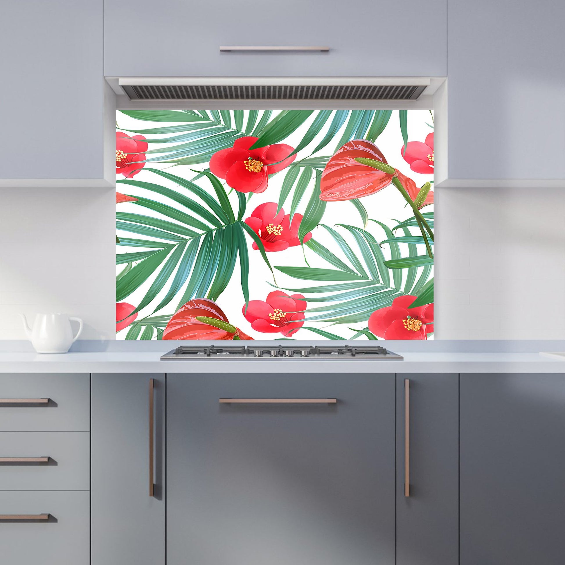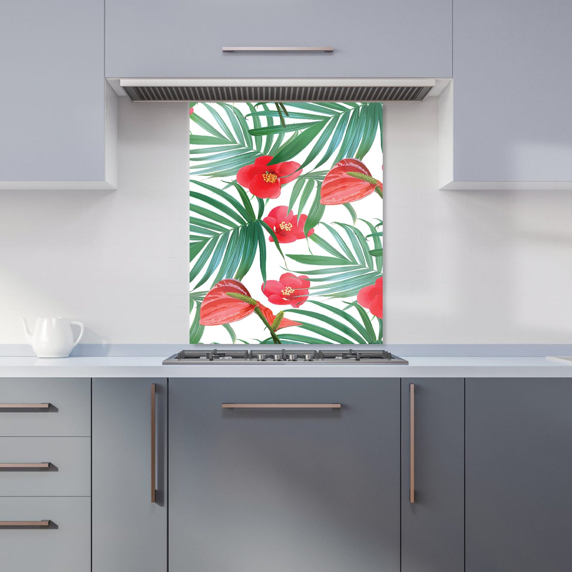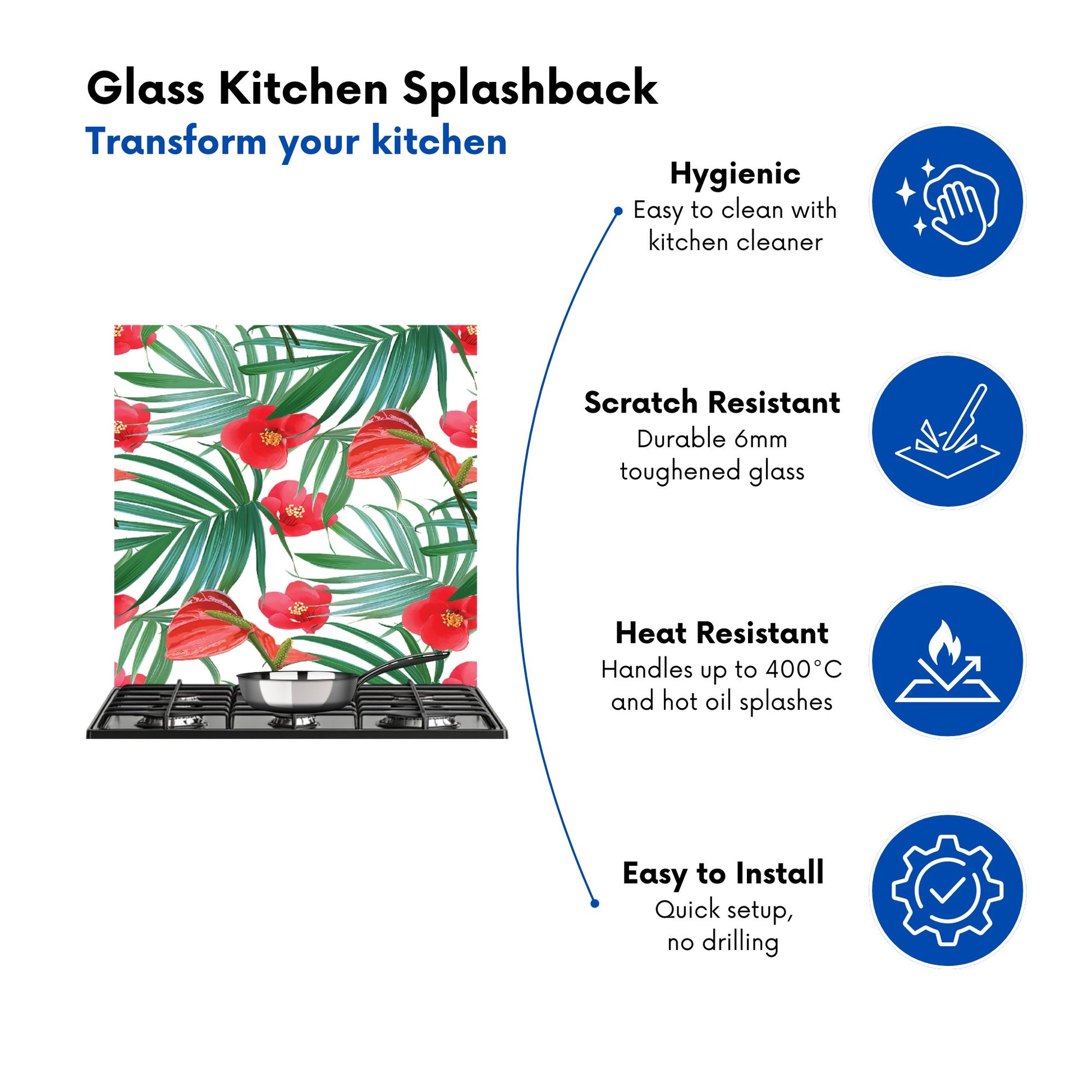 Tropical Flowers, Palm Leaves Hawaiian Kitchen Splashback